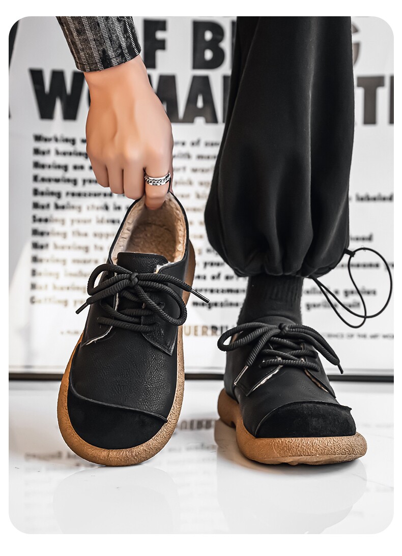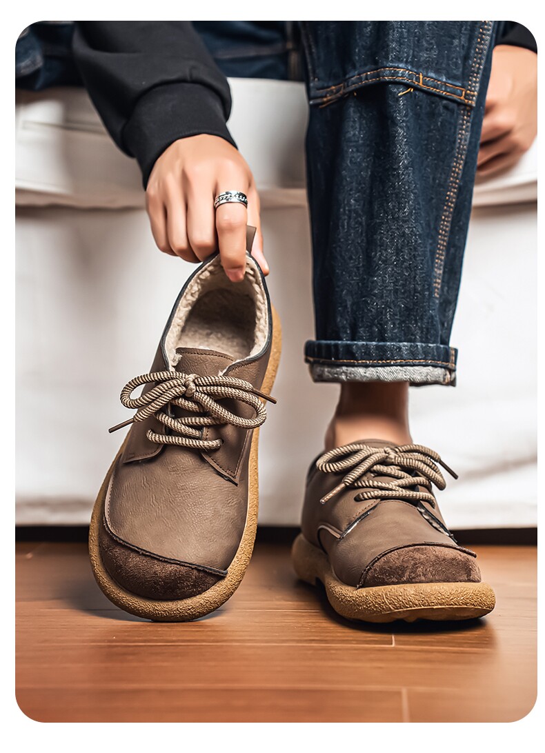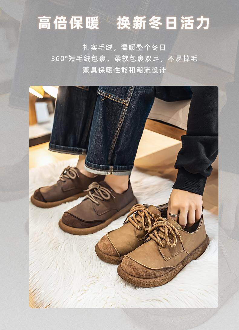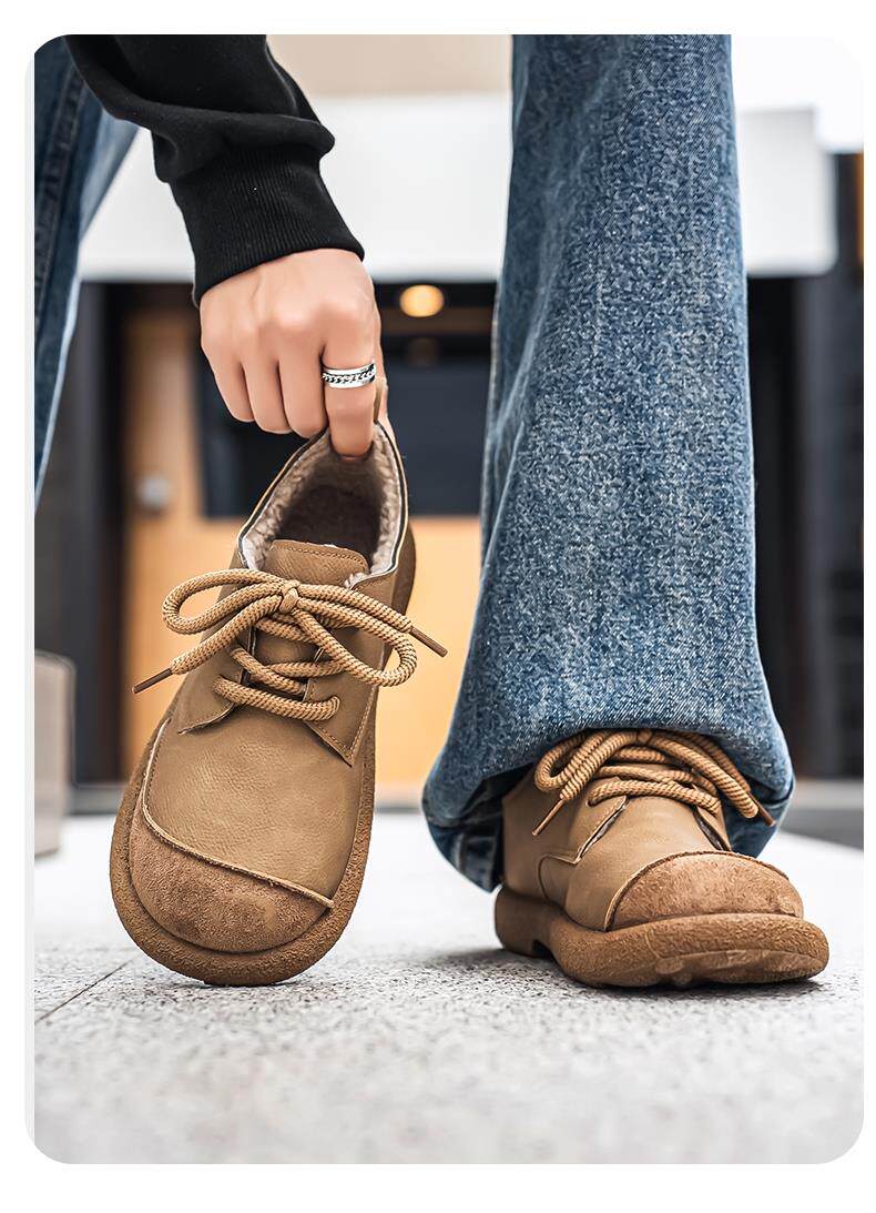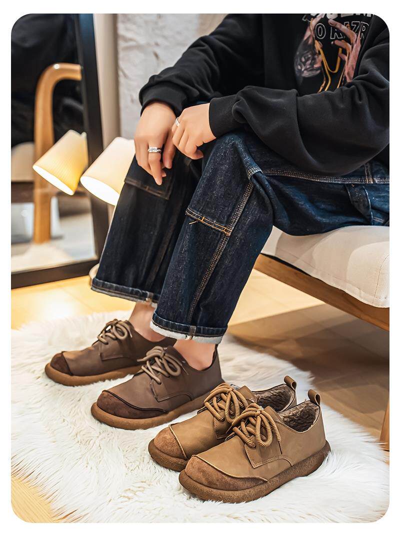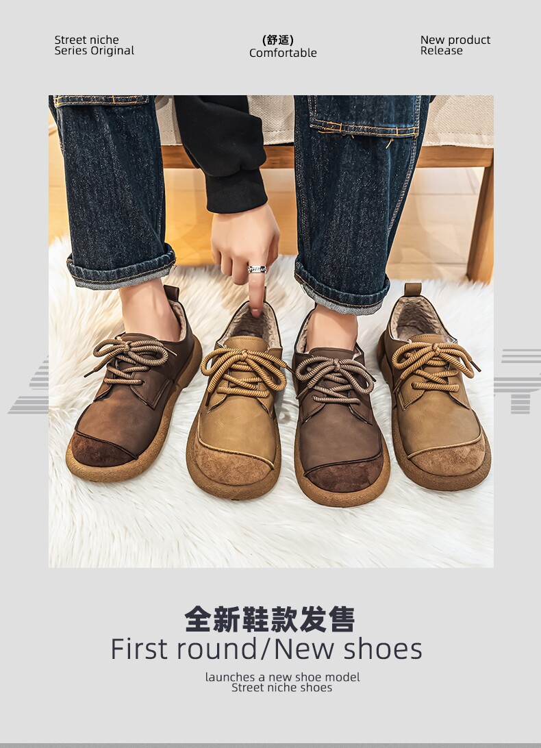 Li Yuxin men's shoes winter plus velvet warm cotton shoes retro large head and feet wide soft sole kangaroo shoes men's British leather shoes