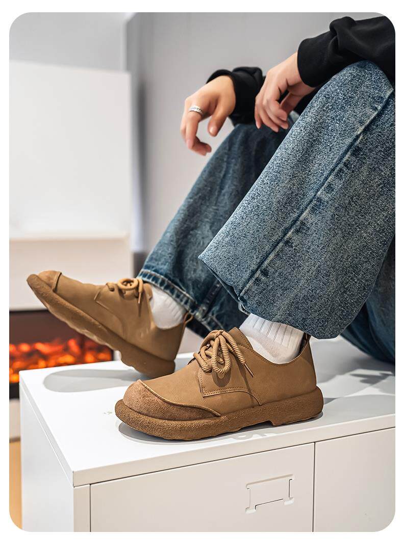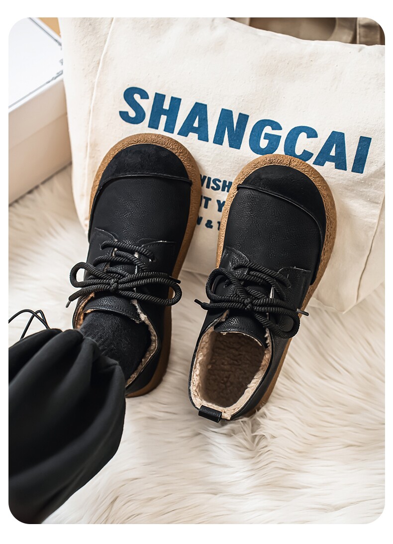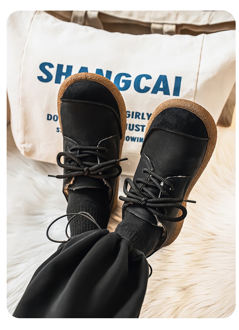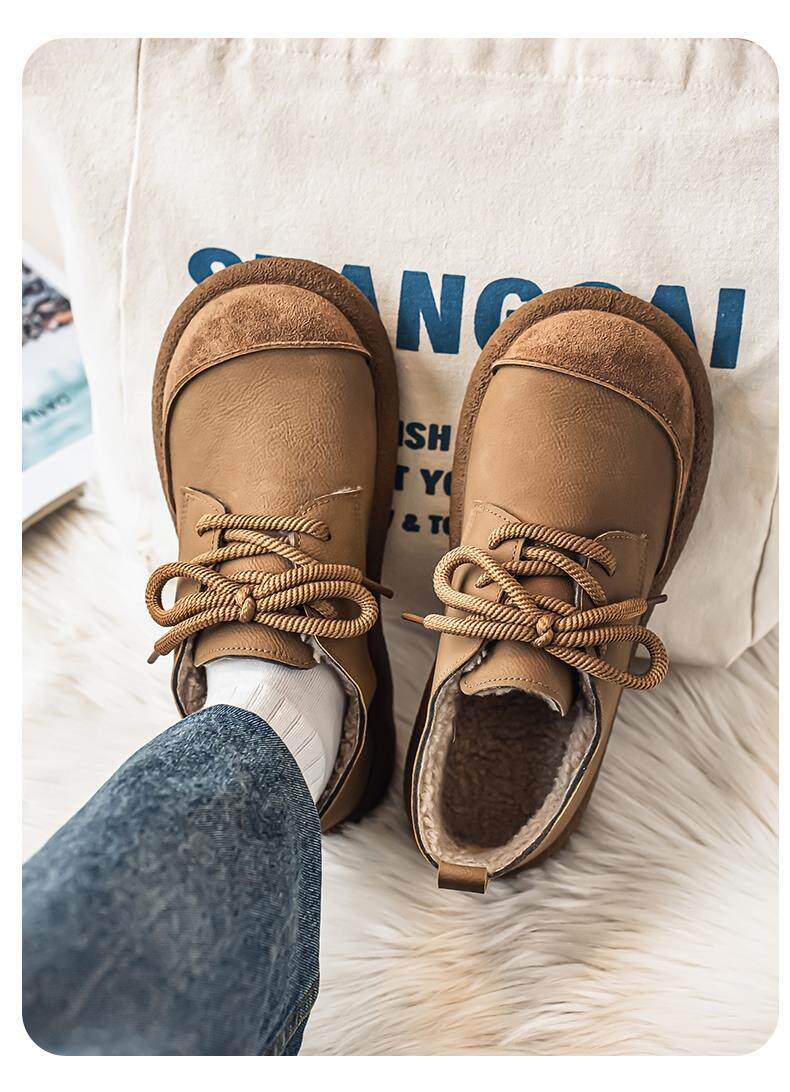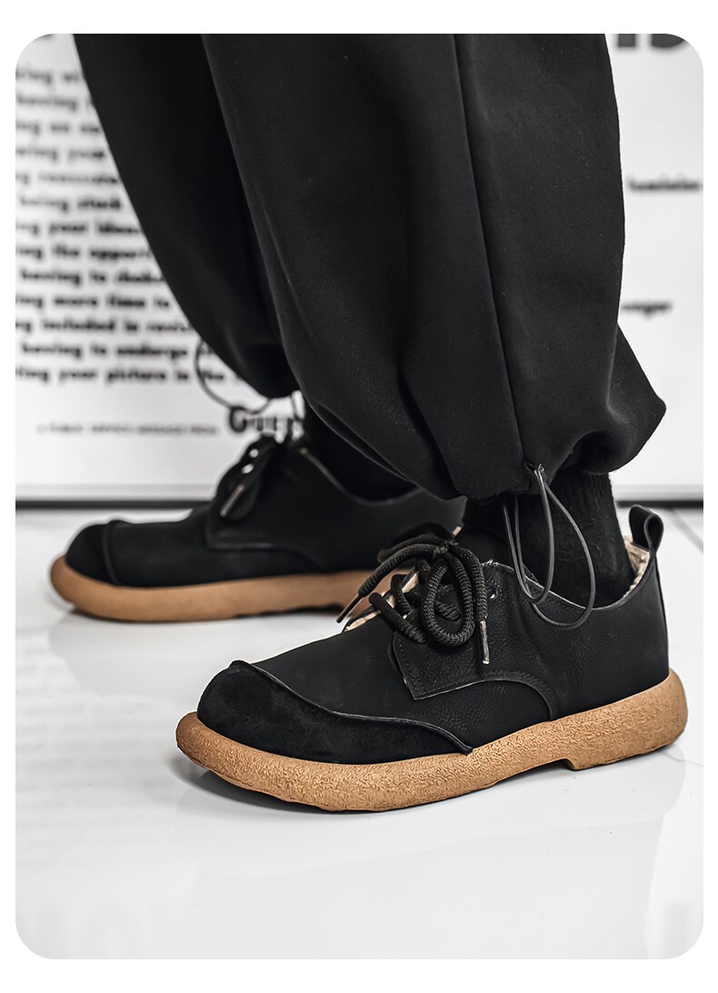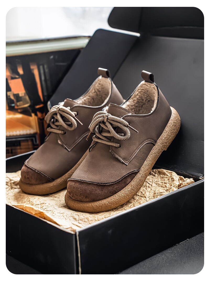 Li Yuxin men's shoes winter plus velvet warm cotton shoes retro large head and feet wide soft sole kangaroo shoes men's British leather shoes