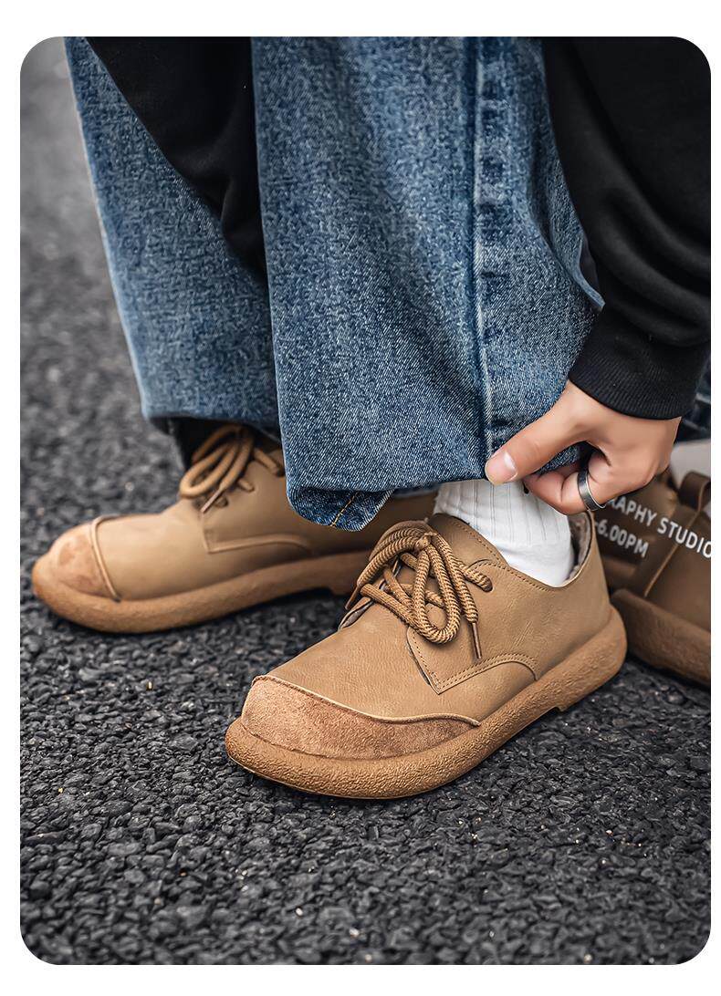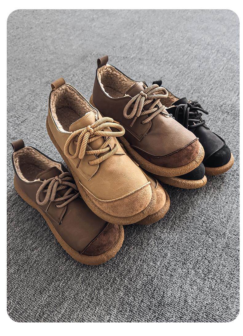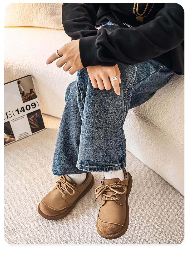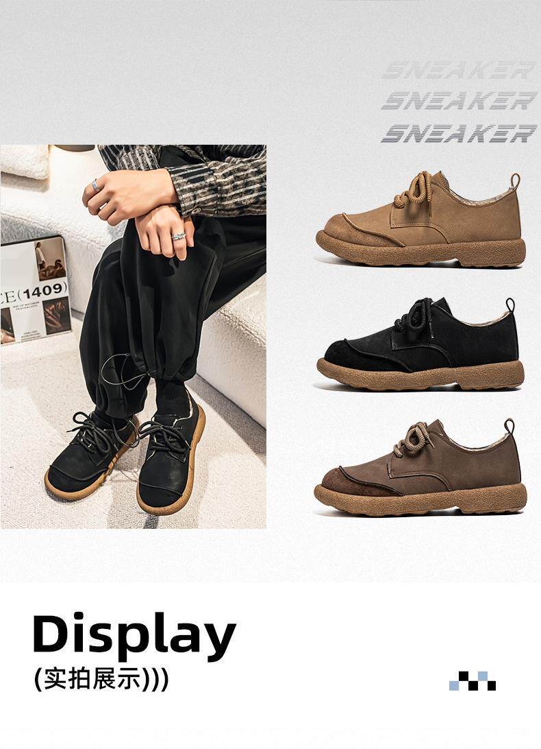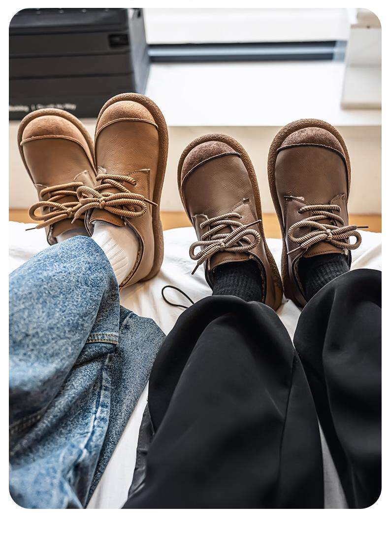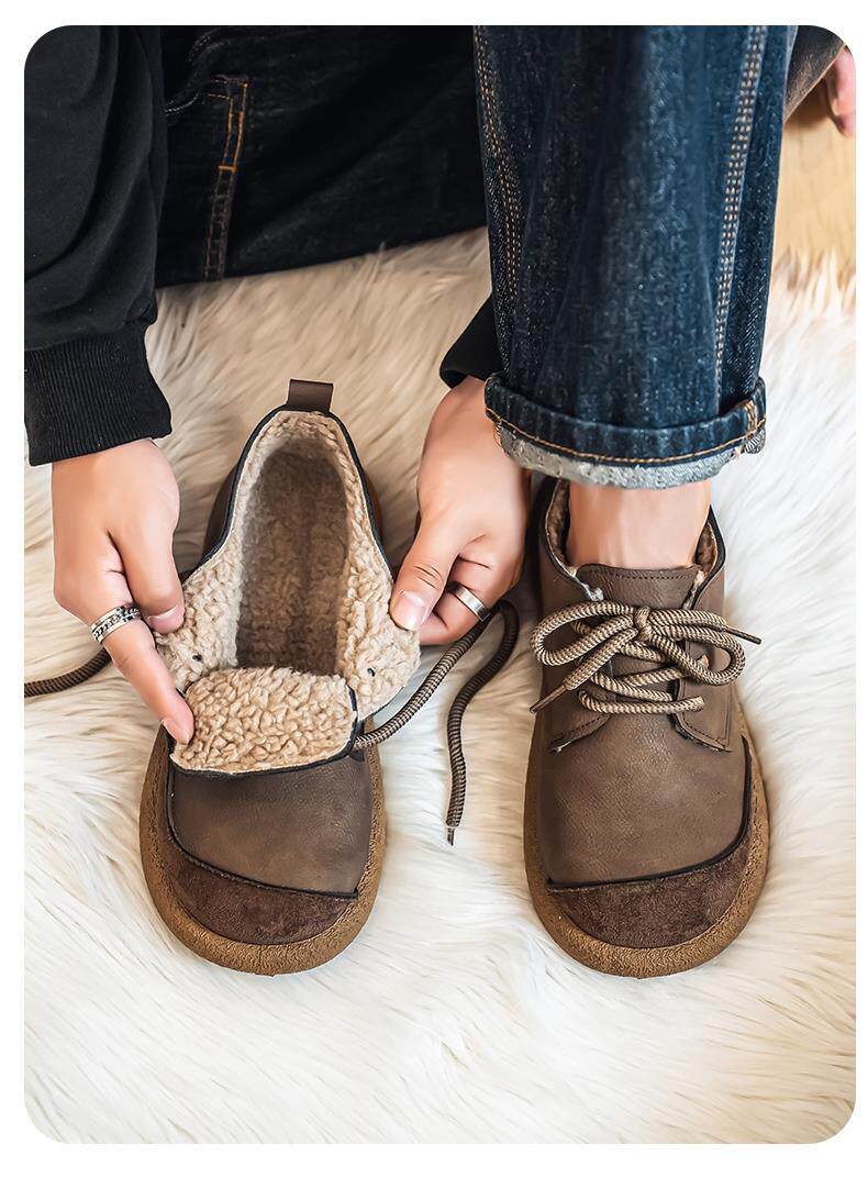 Li Yuxin men's shoes winter plus velvet warm cotton shoes retro large head and feet wide soft sole kangaroo shoes men's British leather shoes