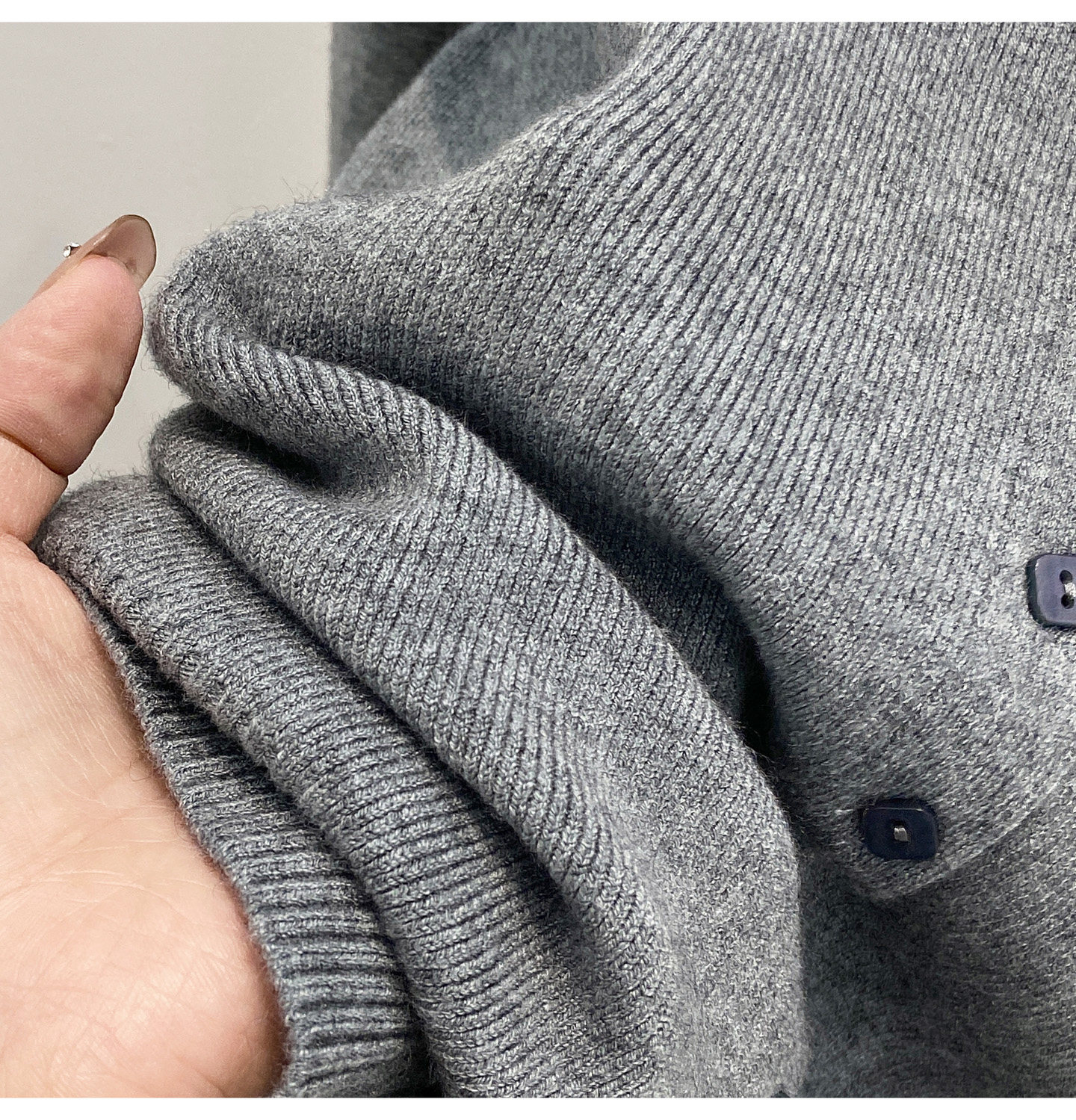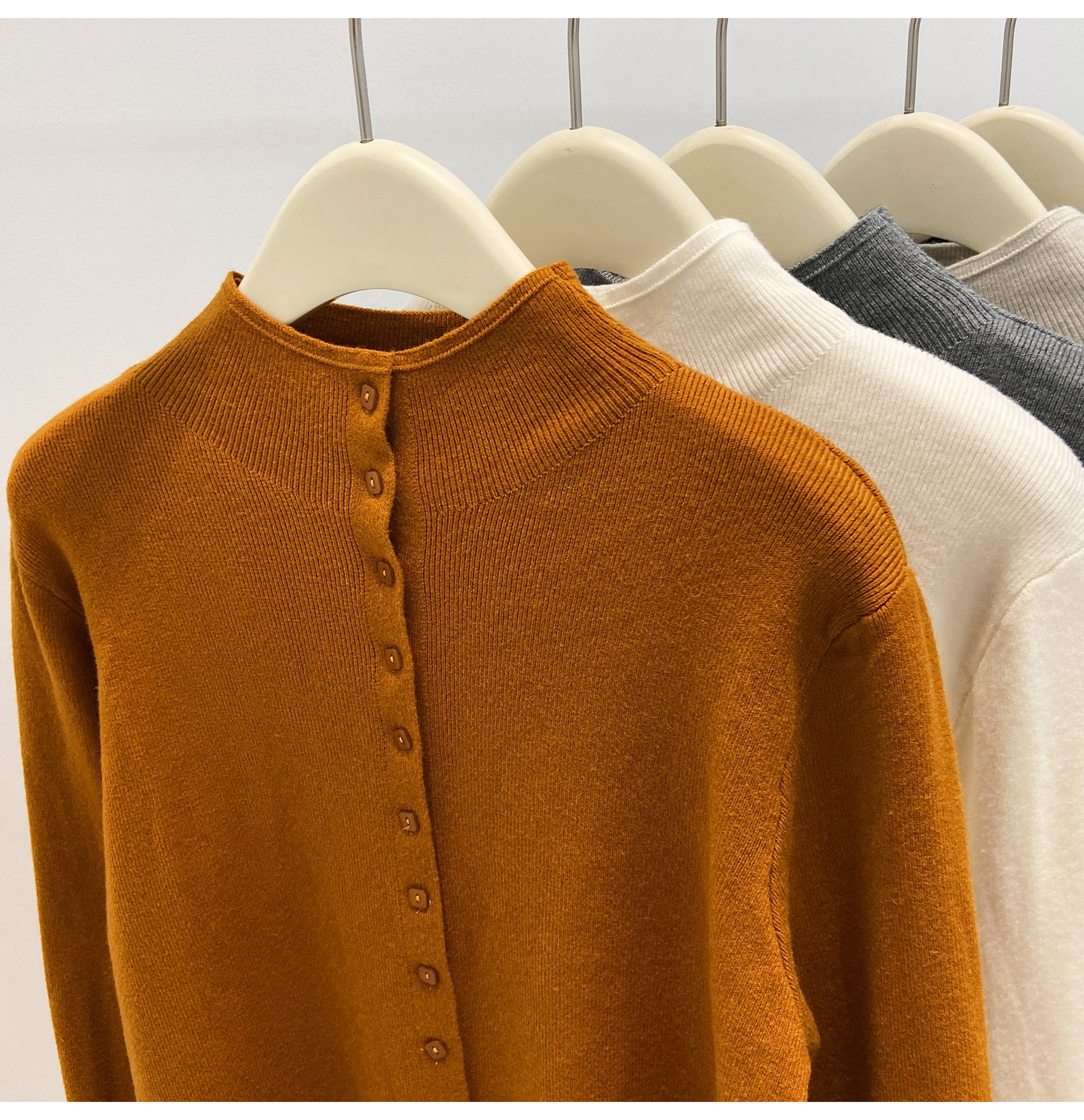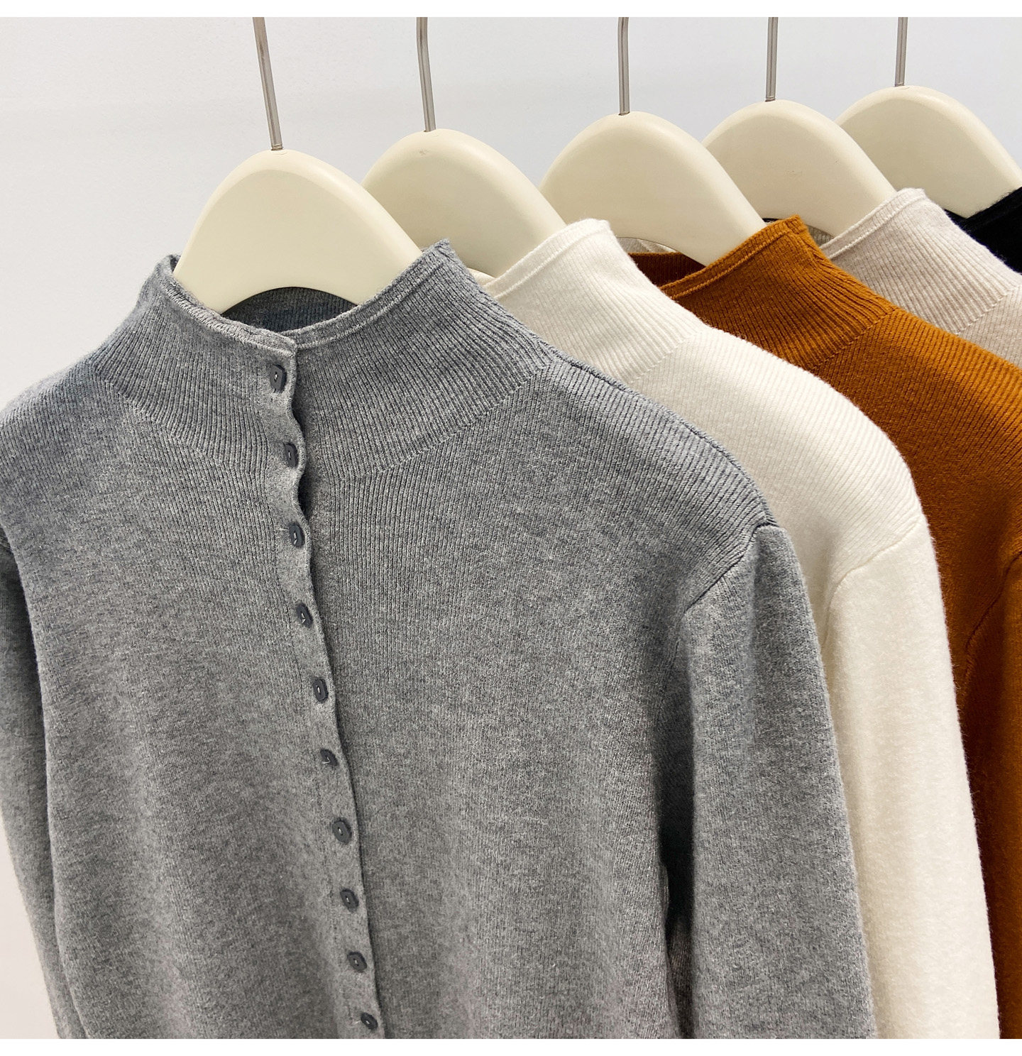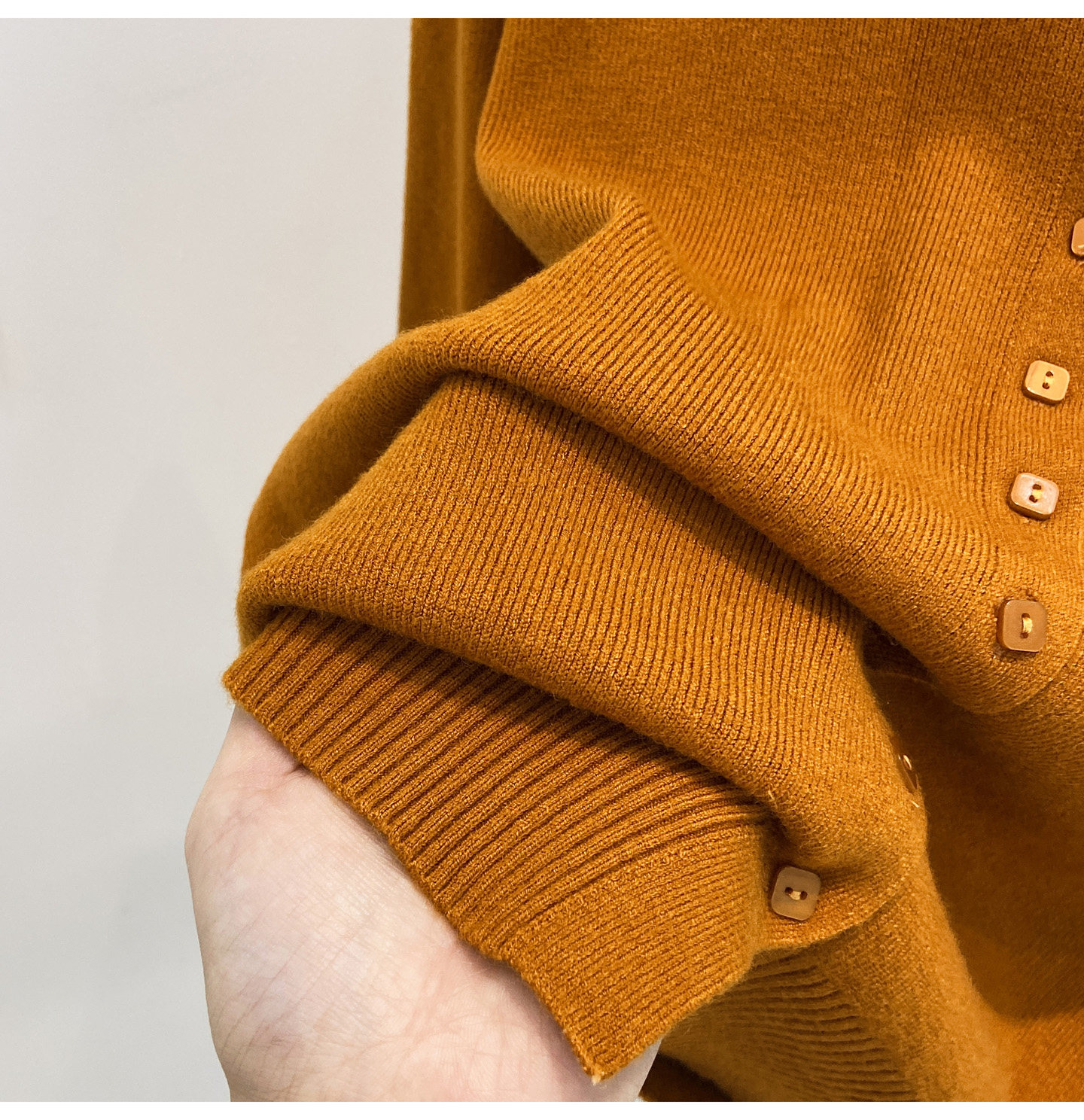 Single-breasted stacked stand-up collar knitted cardigan women's thickened coat autumn and winter soft waxy chic lazy knitted sweater top