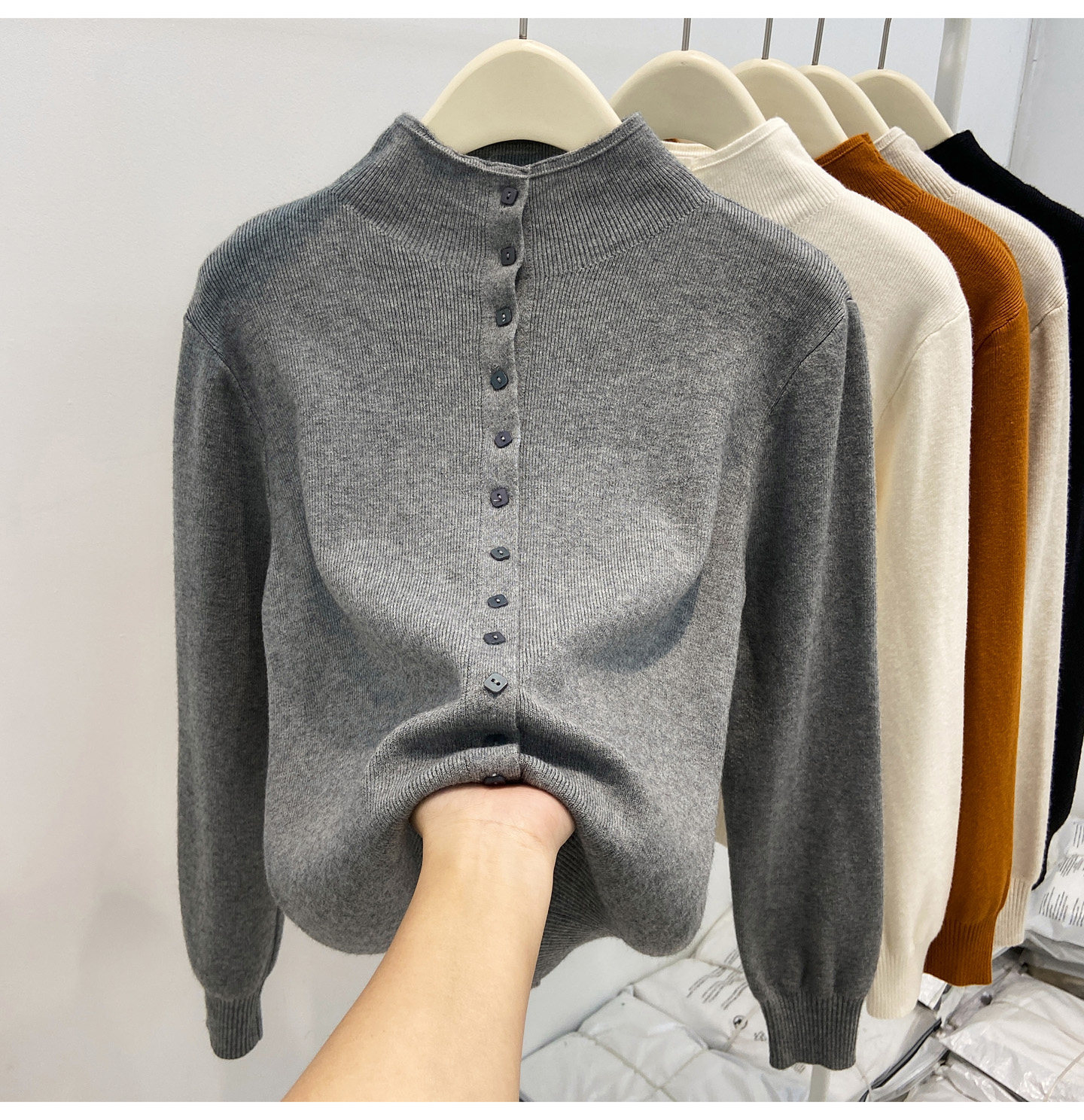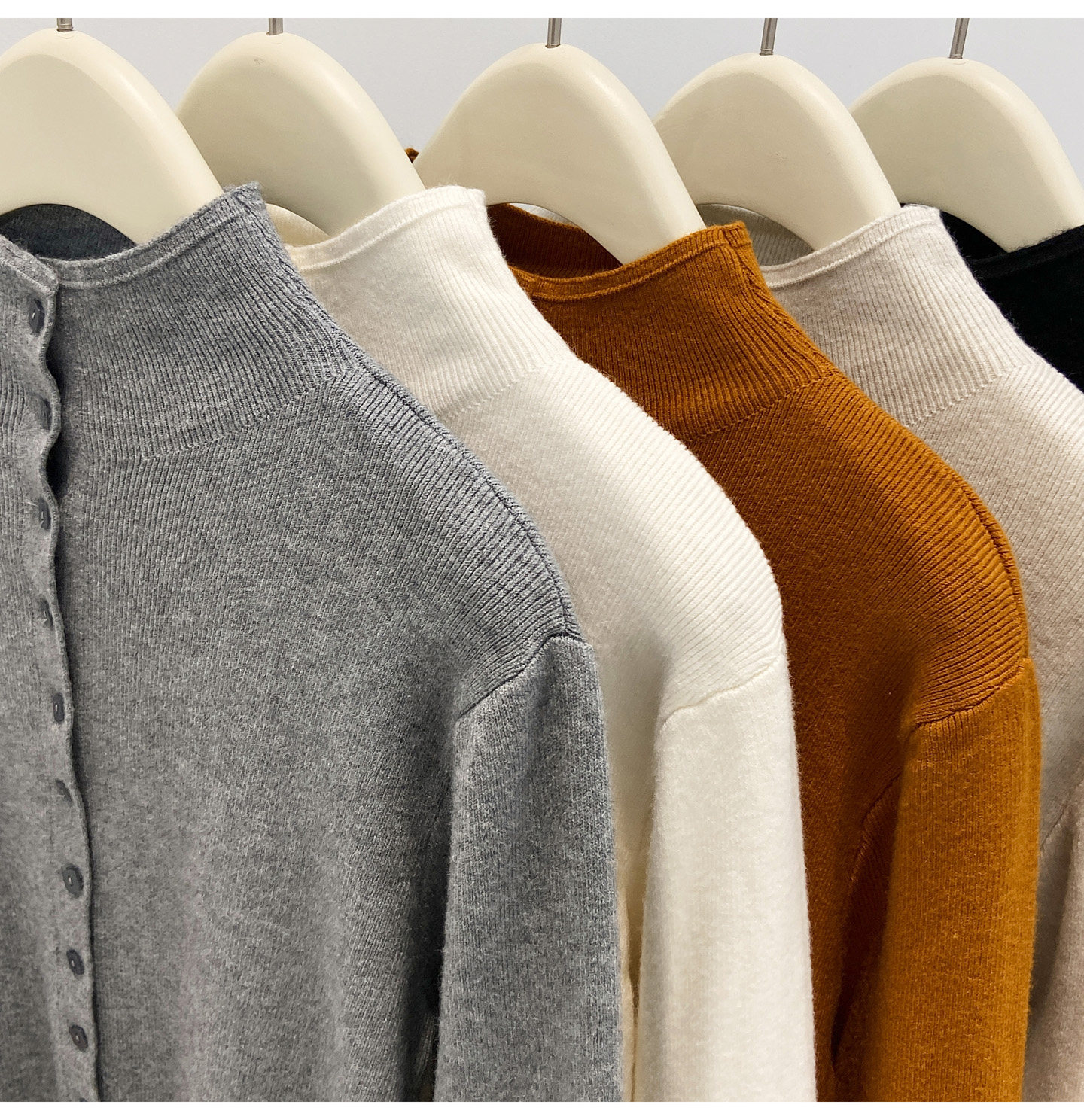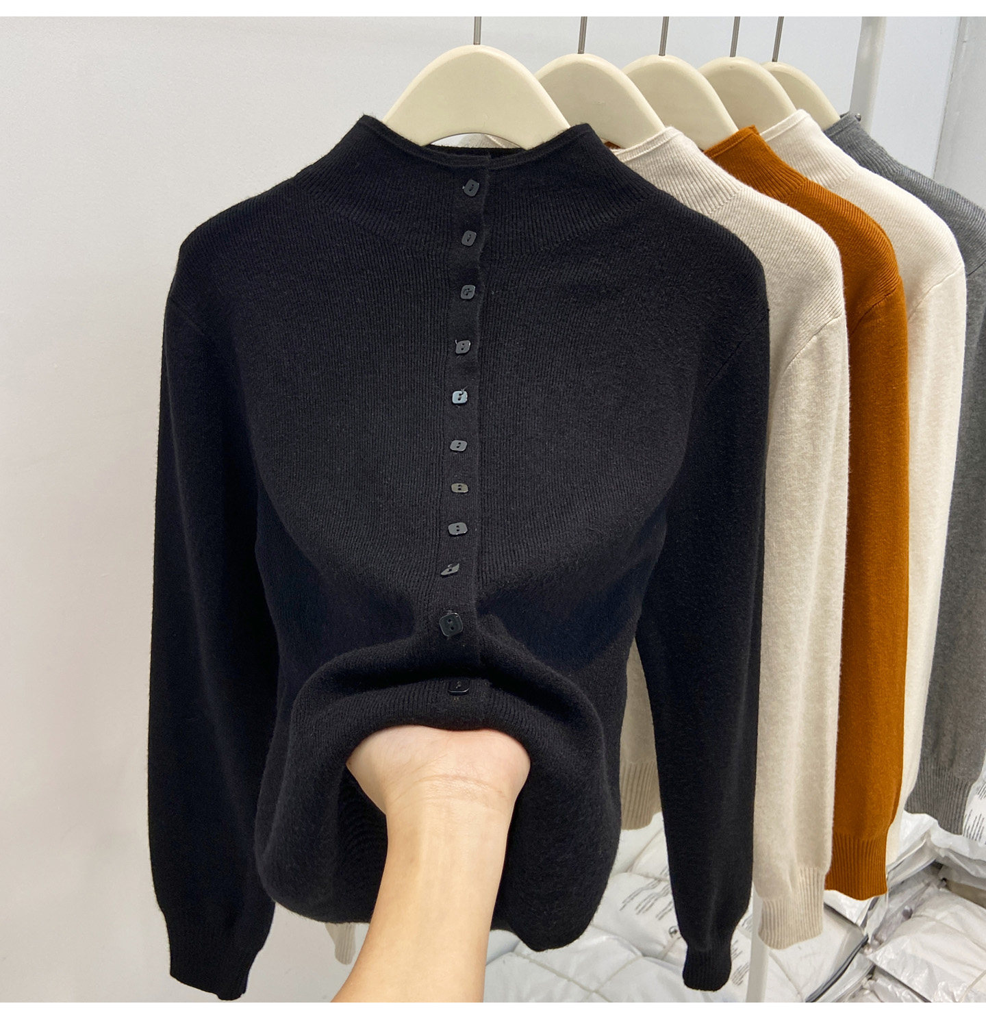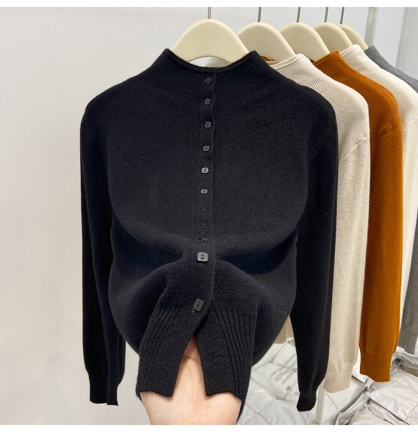 Single-breasted stacked stand-up collar knitted cardigan women's thickened coat autumn and winter soft waxy chic lazy knitted sweater top