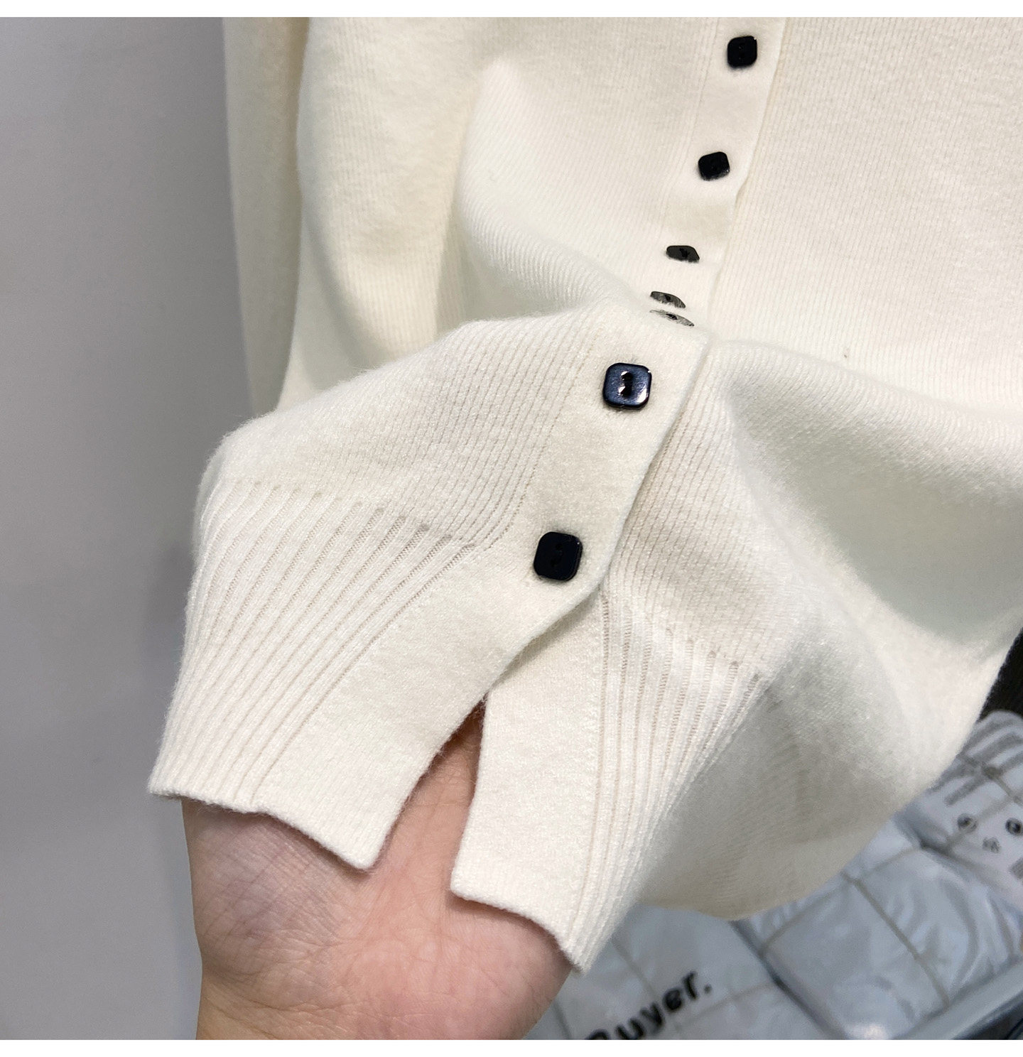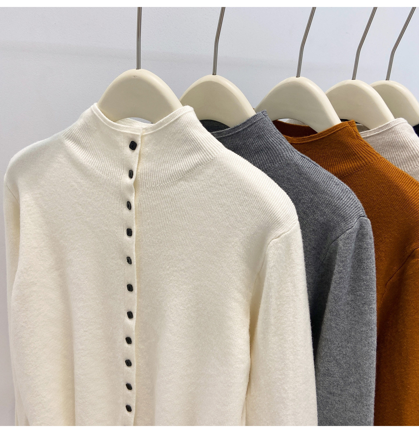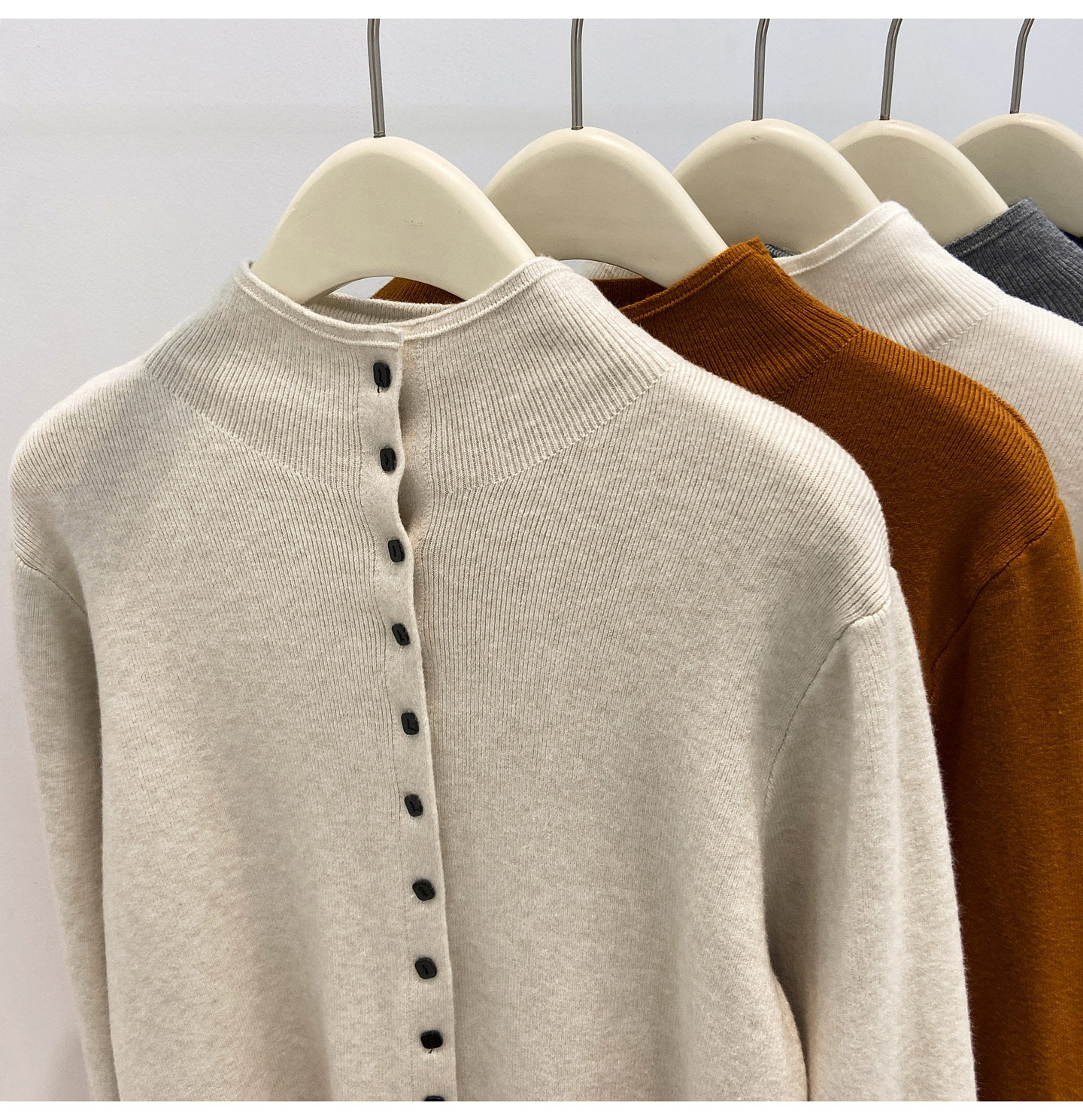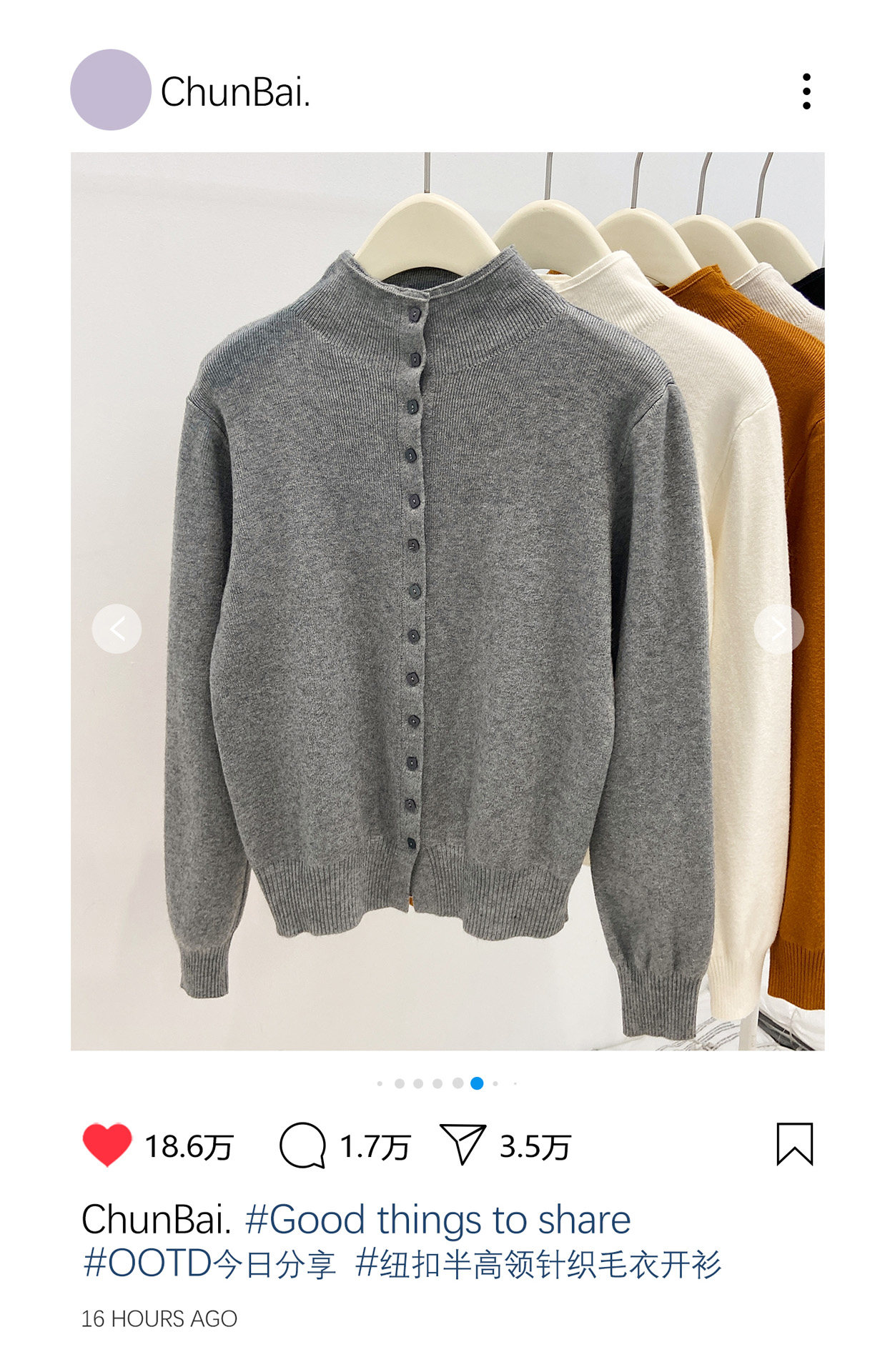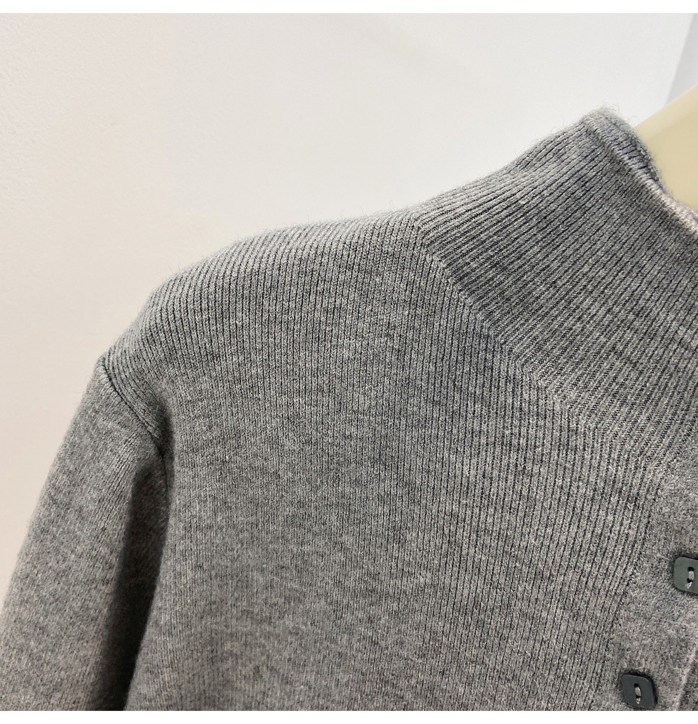 Single-breasted stacked stand-up collar knitted cardigan women's thickened coat autumn and winter soft waxy chic lazy knitted sweater top
