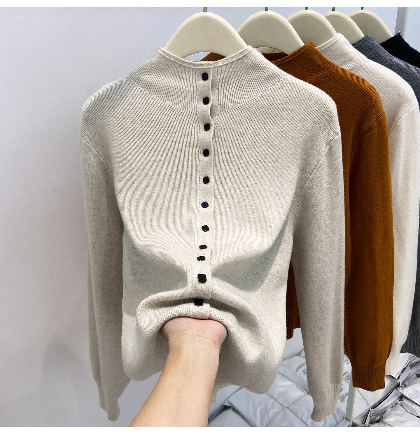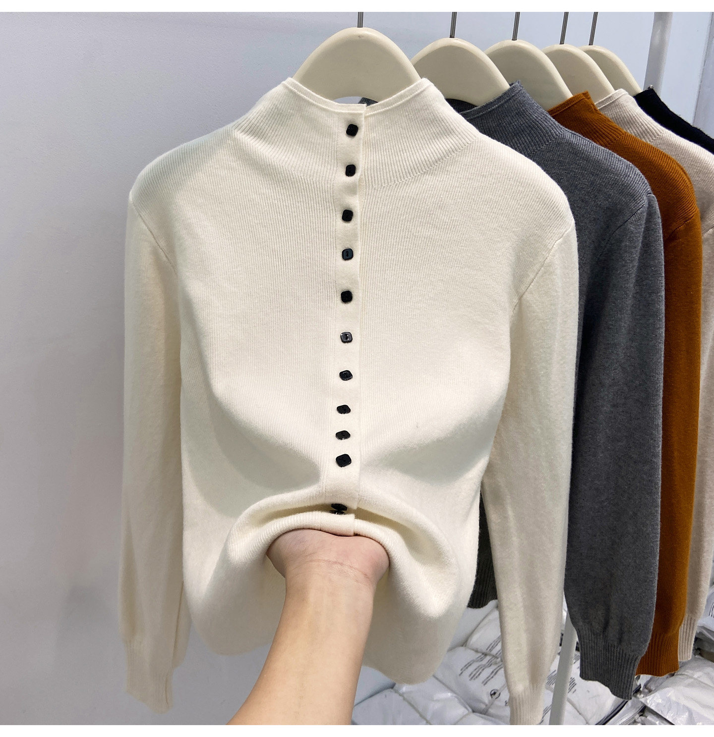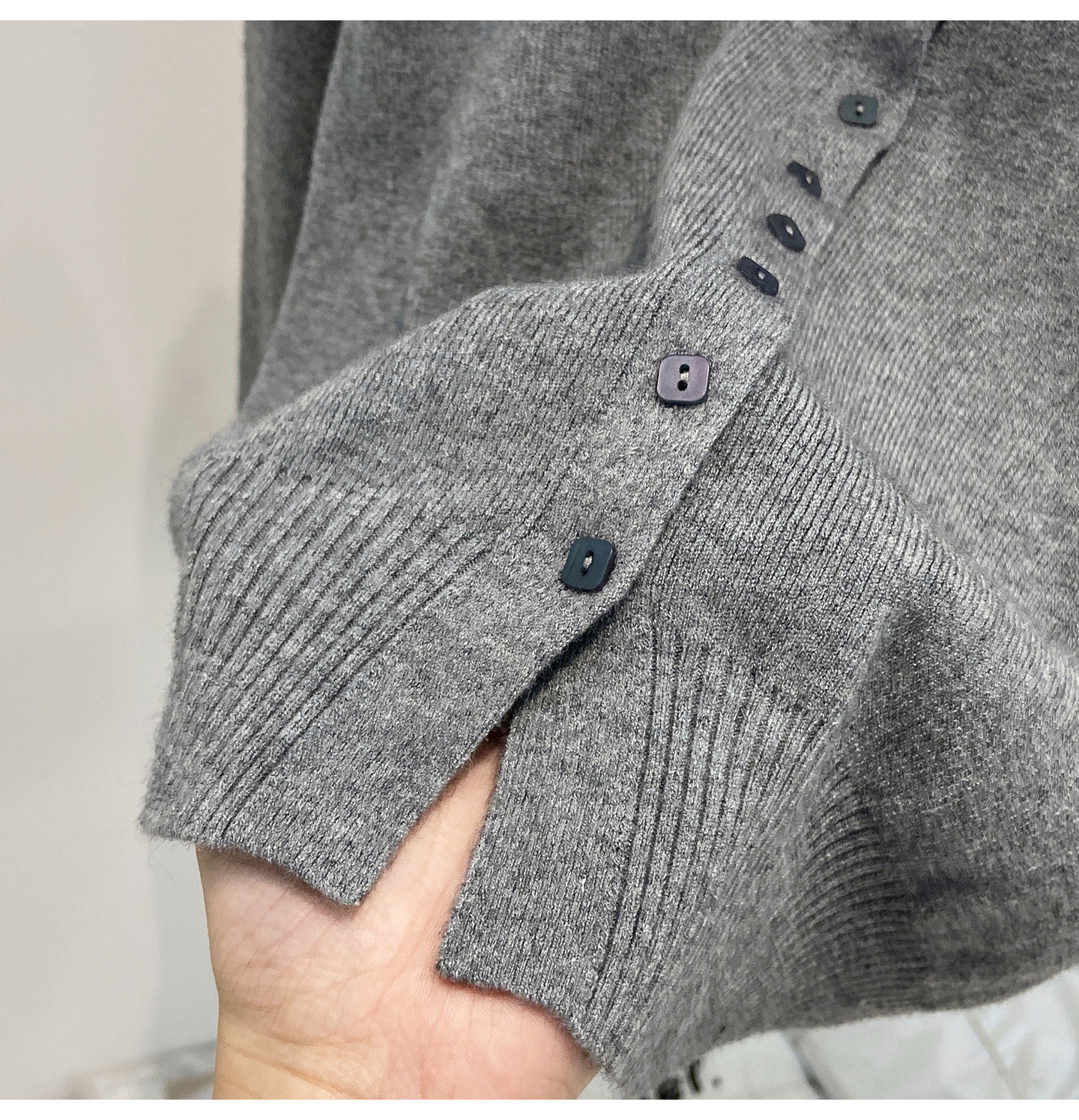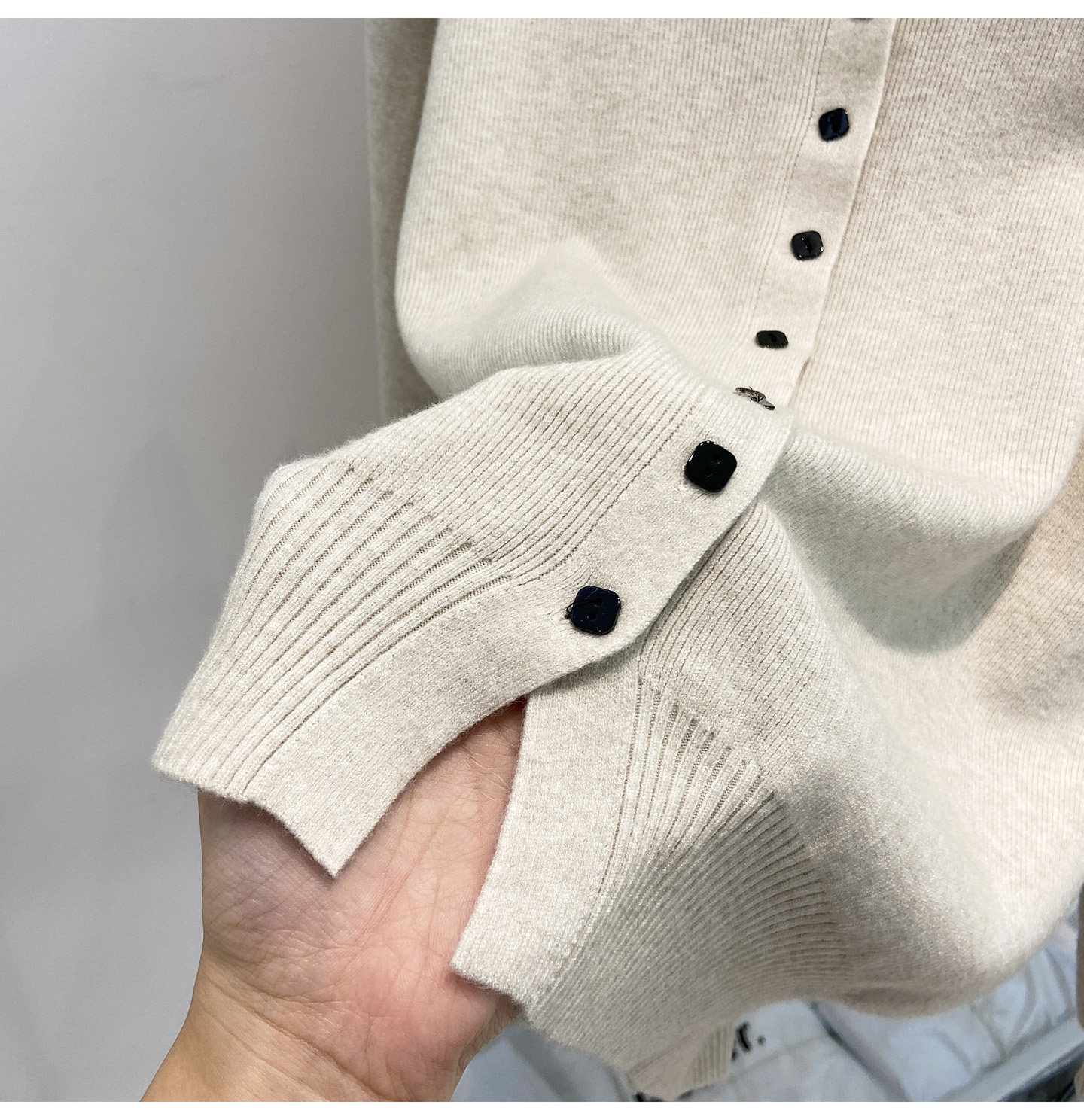 Single-breasted stacked stand-up collar knitted cardigan women's thickened coat autumn and winter soft waxy chic lazy knitted sweater top