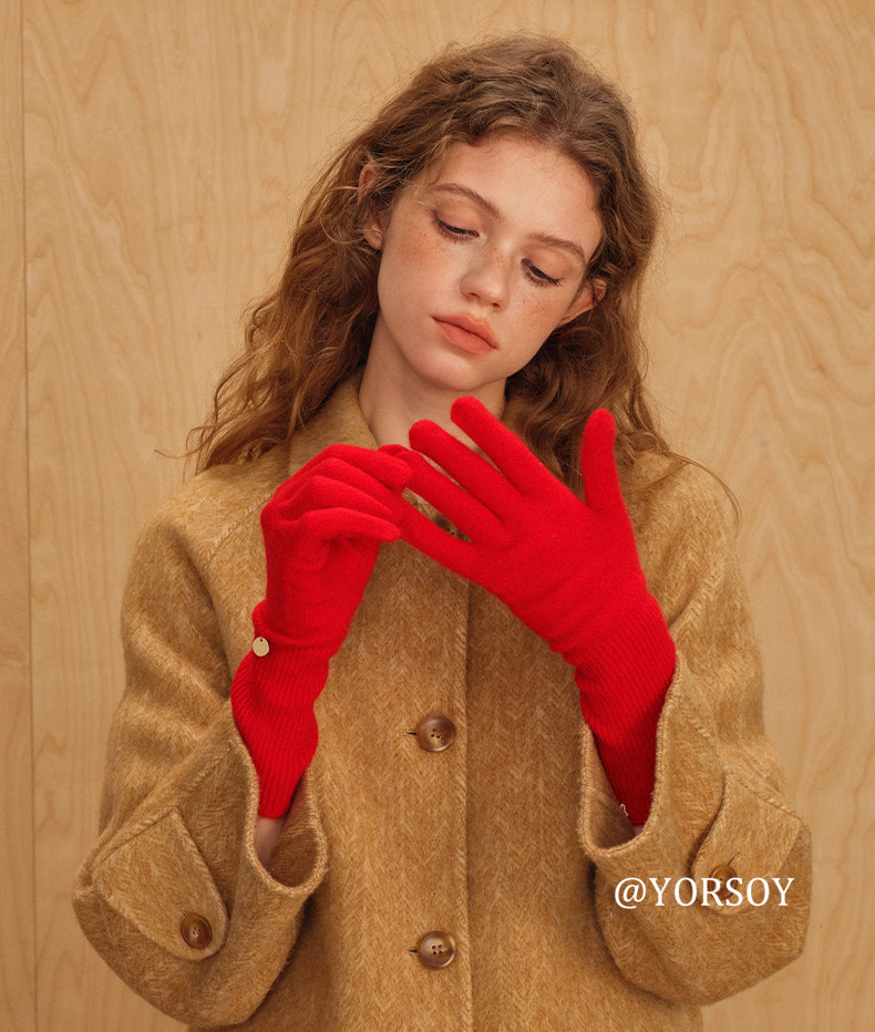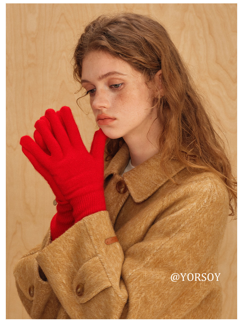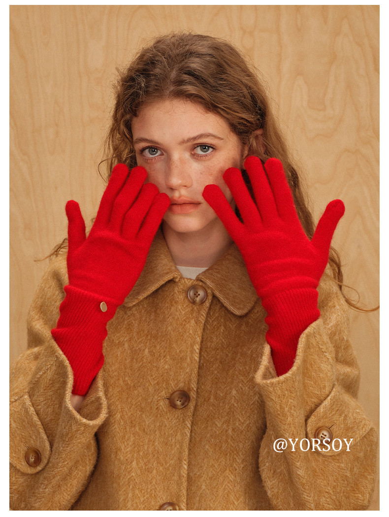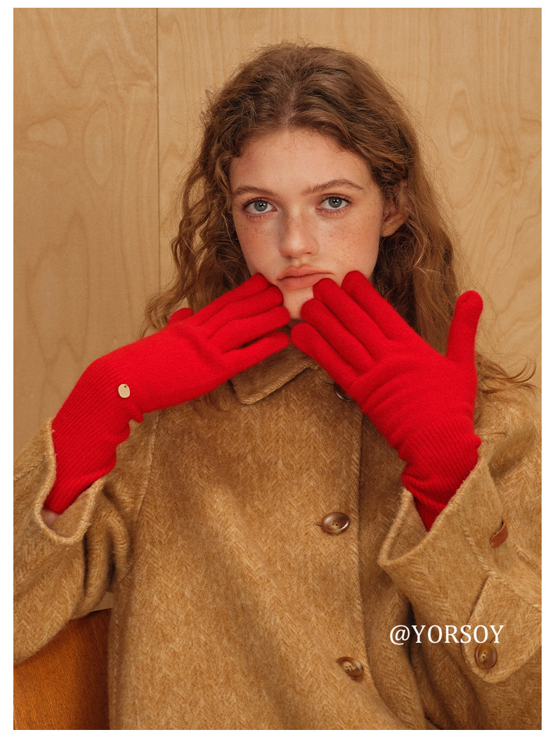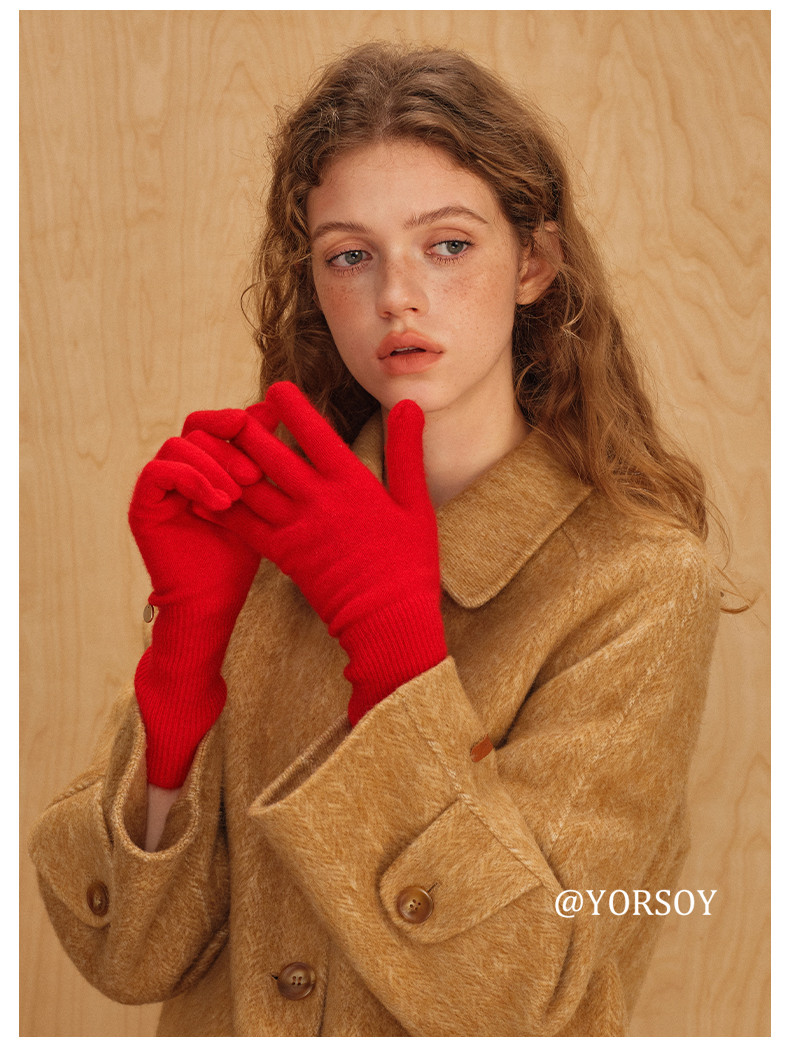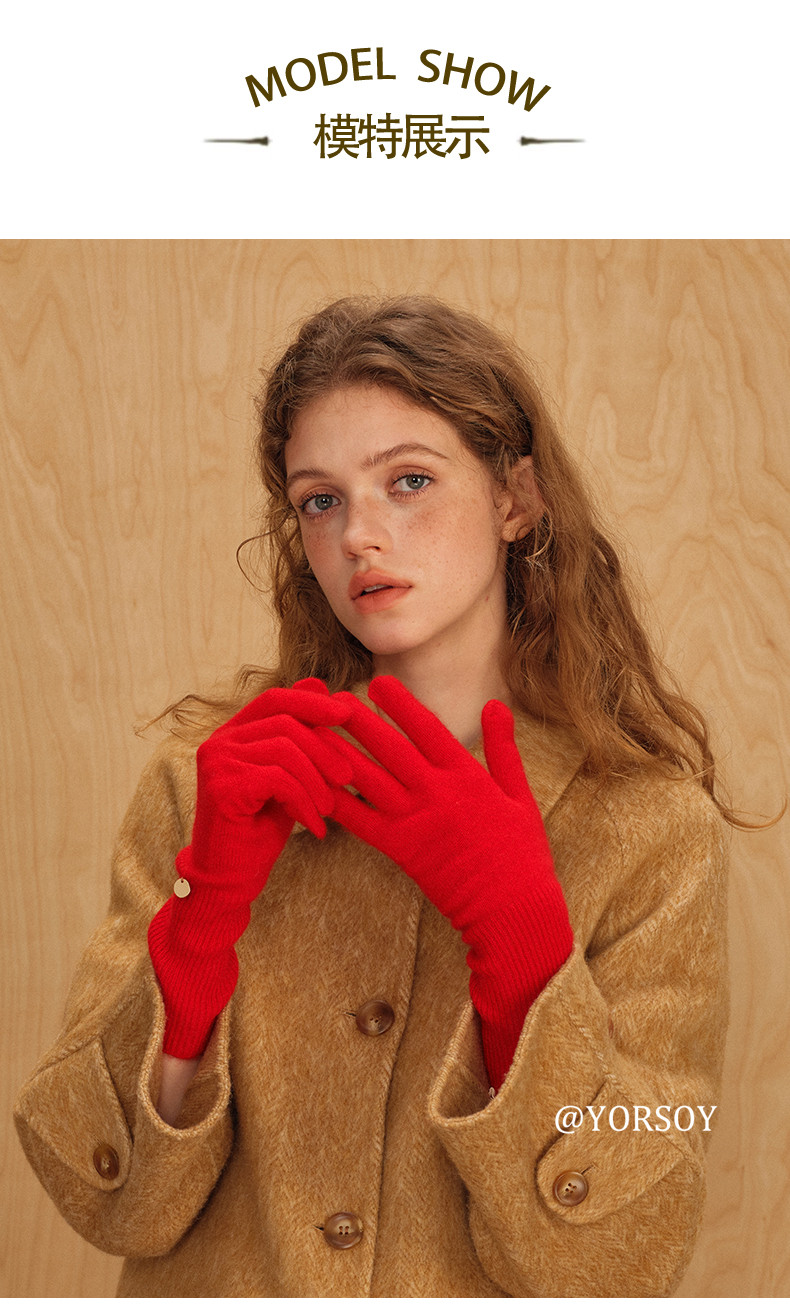 100% Pure Cashmere Red Five-Finger Gloves for Women, Soft and Warm in Winter, High-End New Year and Christmas Atmosphere Gift