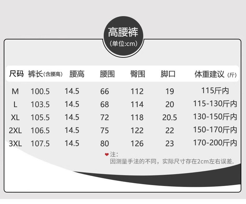 Outseam (cm) 99 cm 101.5 cm 104 cm 106.5 cm 109 cm
