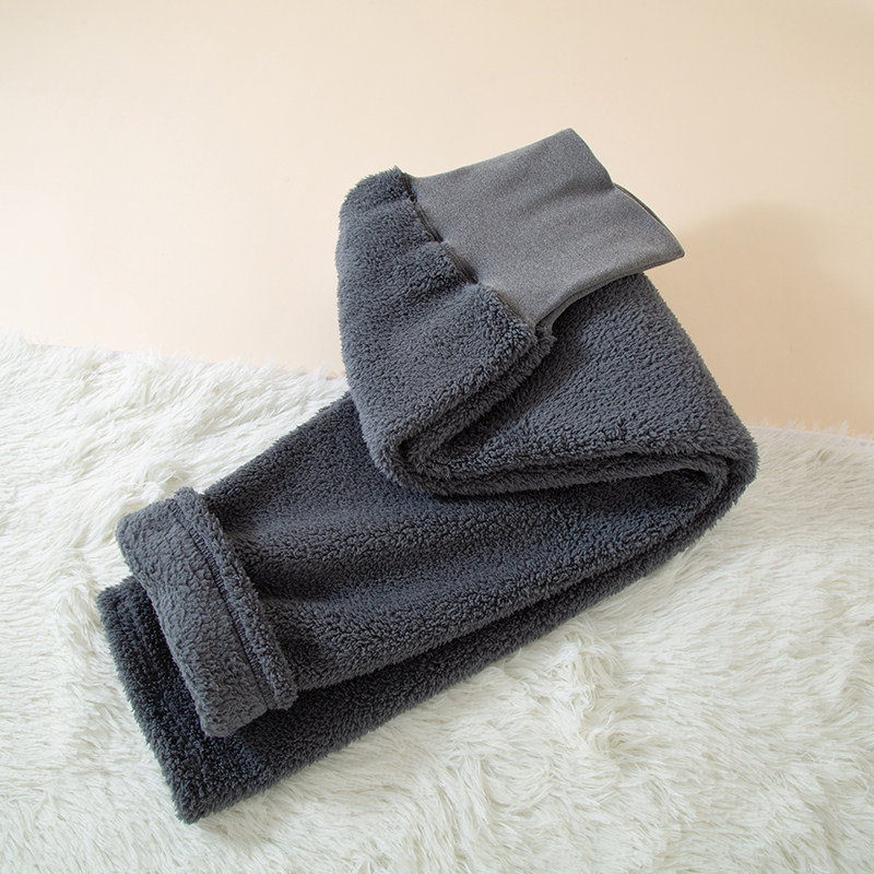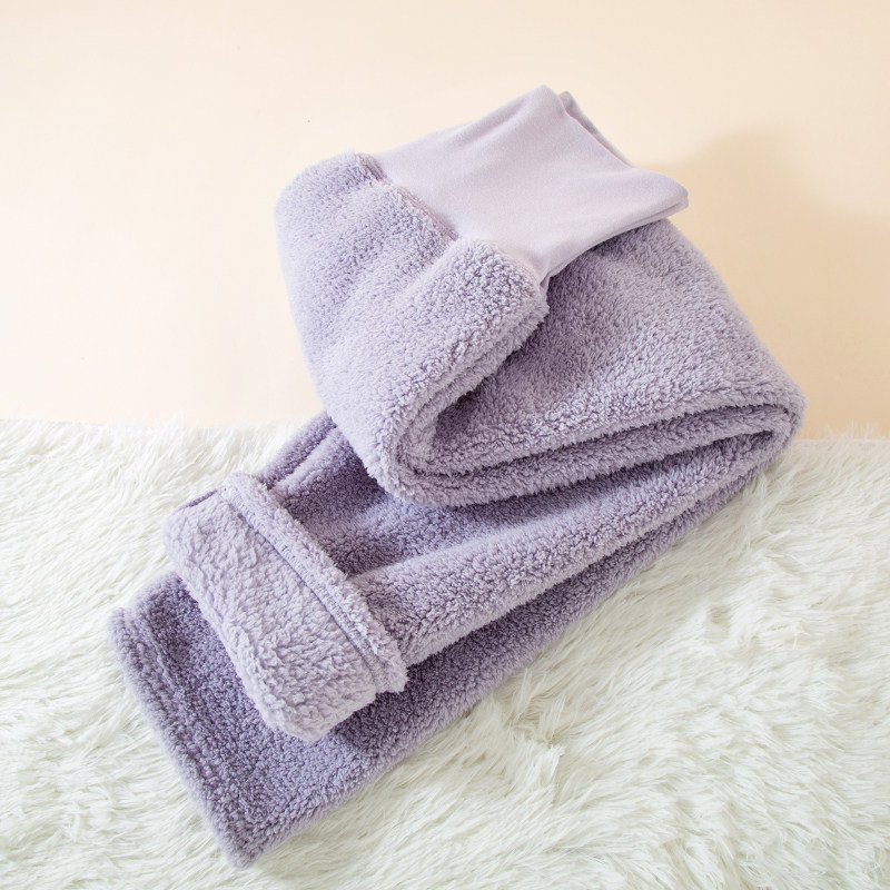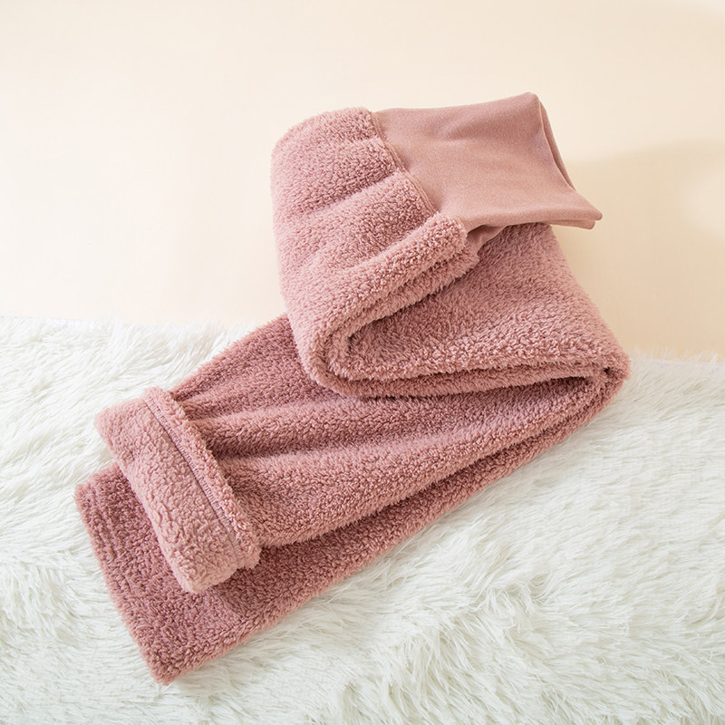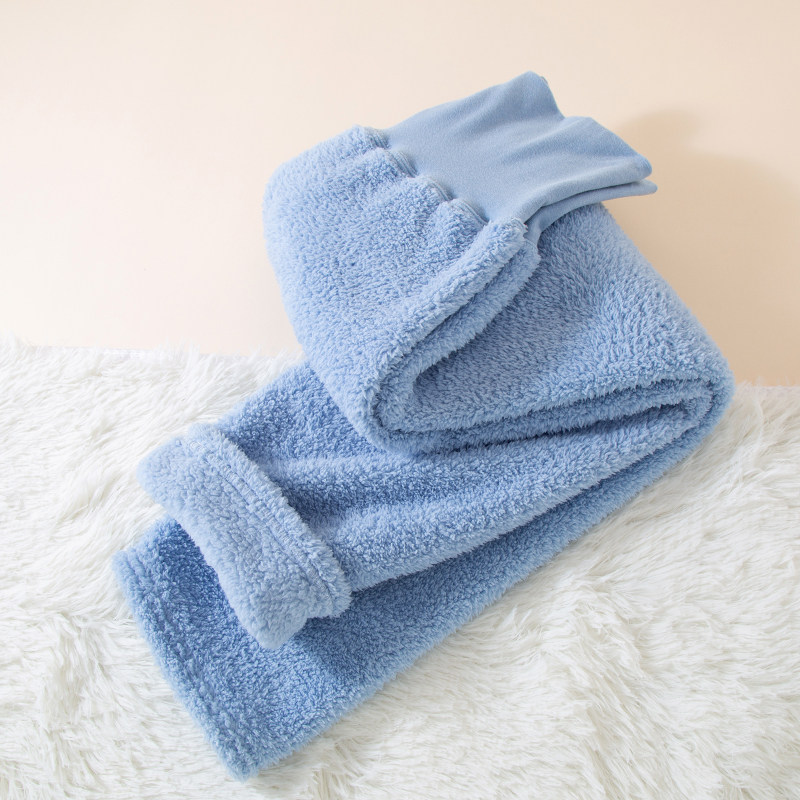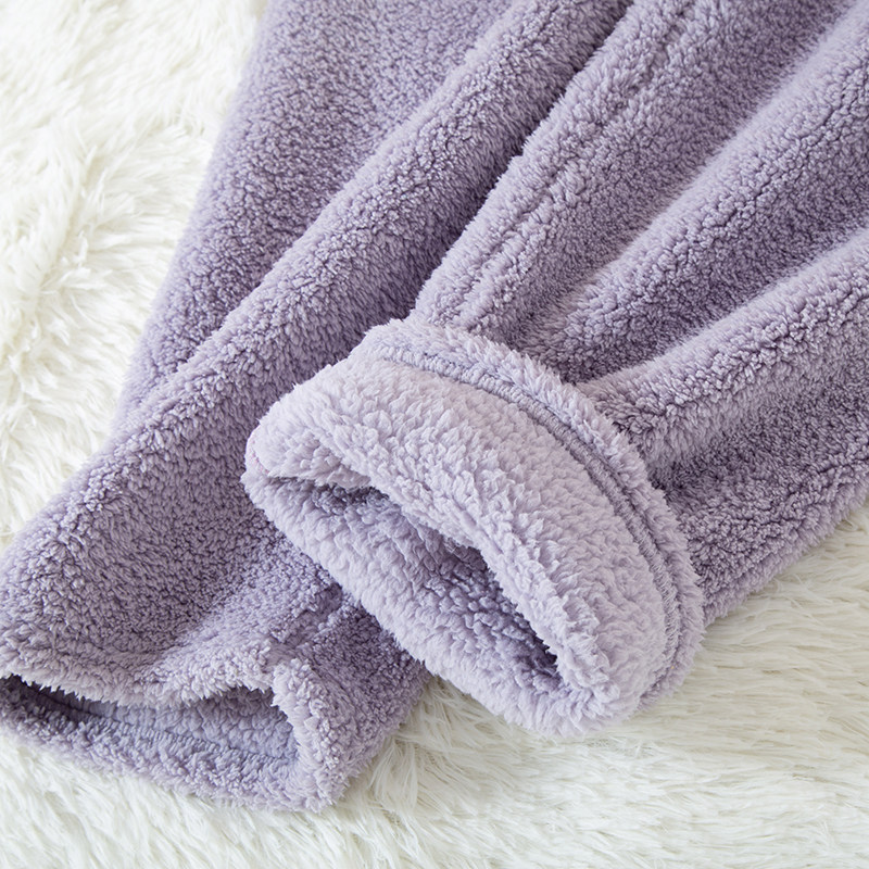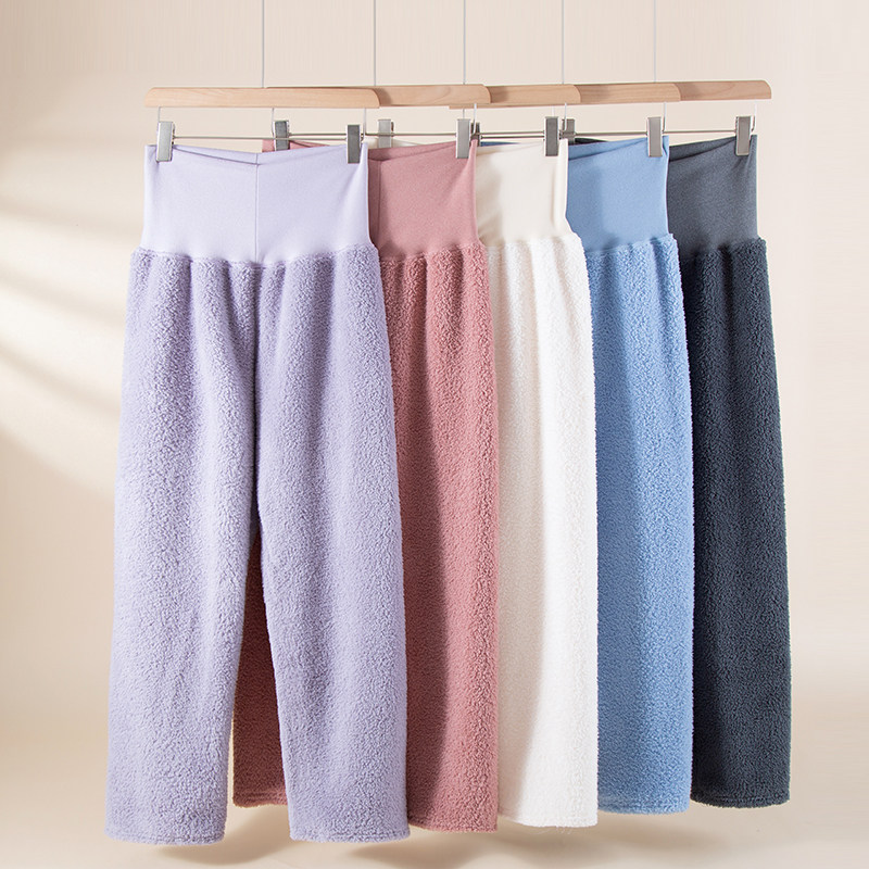 Fleece-Lined Women's Sleep Pants for Autumn and Winter, Coral Fleece High-Waisted Home Pants, Thickened Warm Flannel Large Size Loungewear Pants