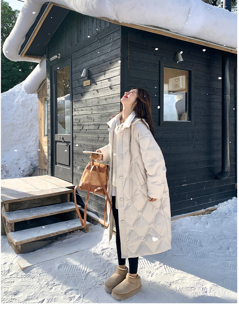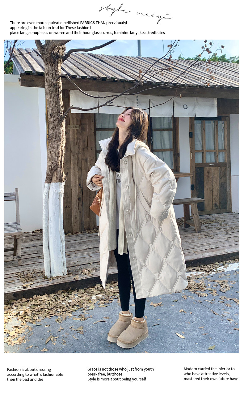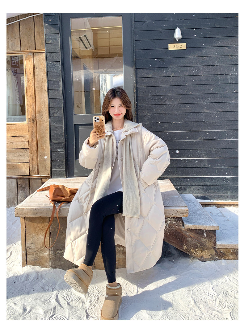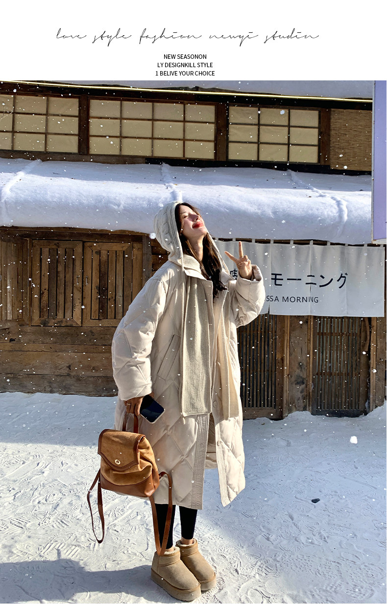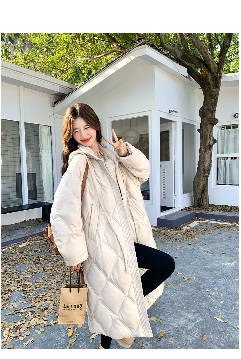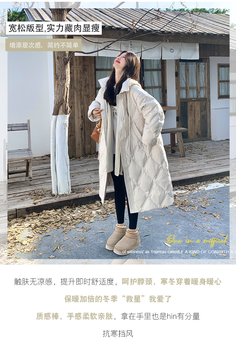 Off-white rhombus long knee-length down jacket for women winter 2025 new style fashionable warm white duck down jacket