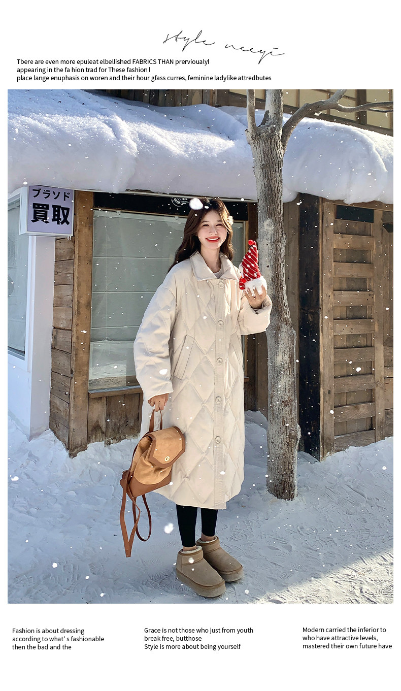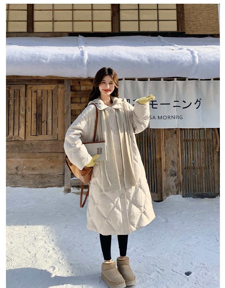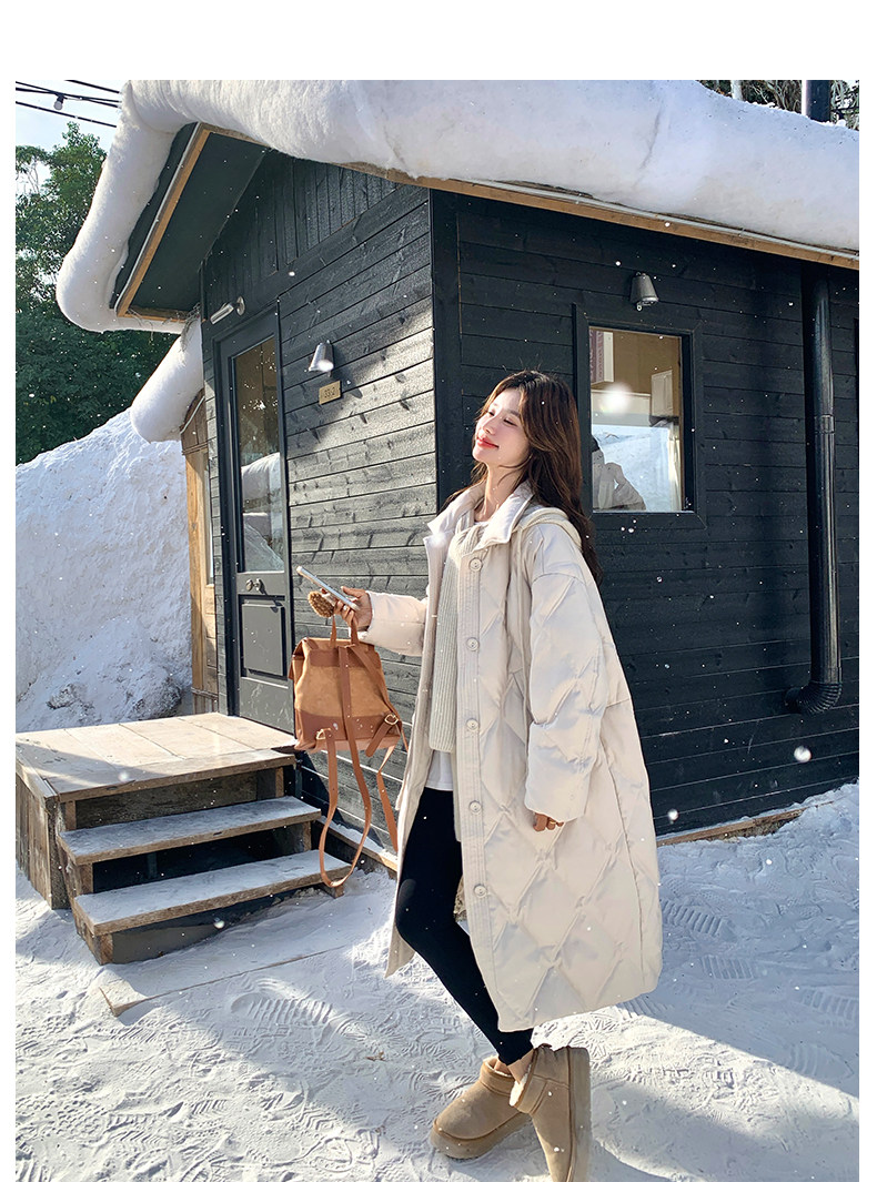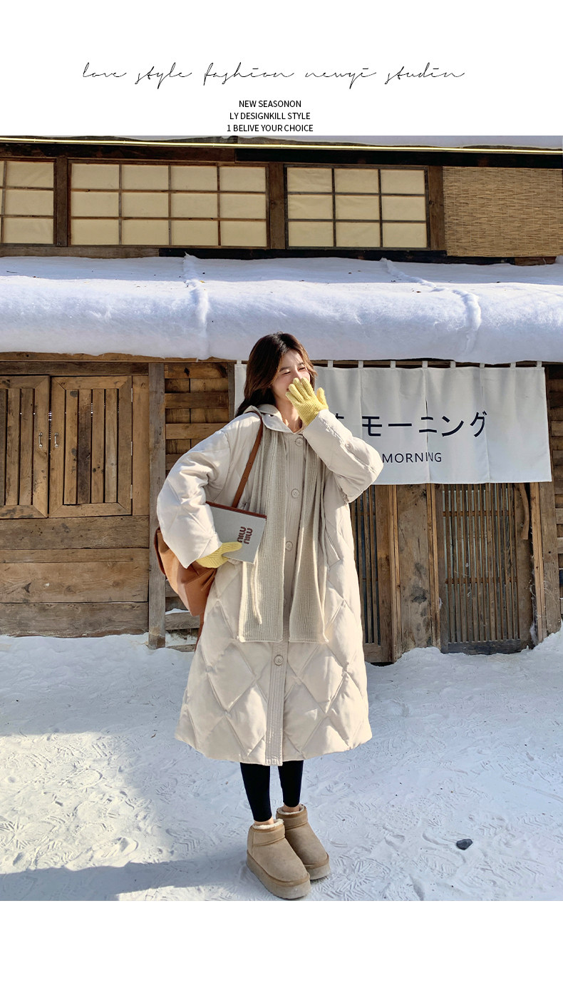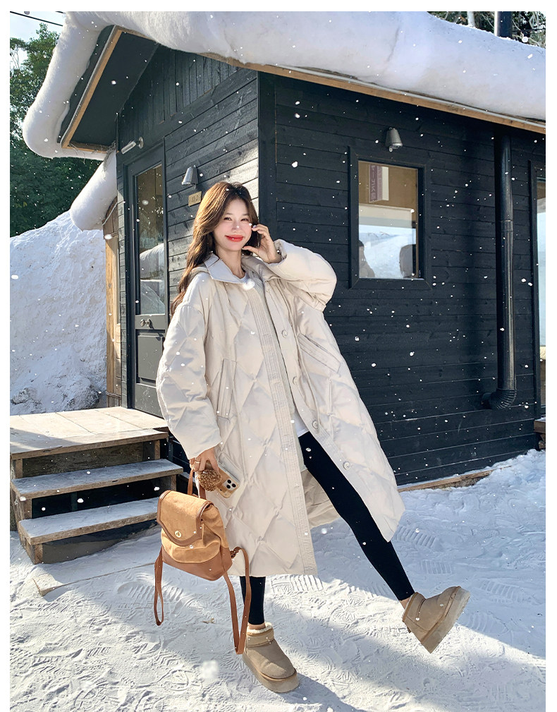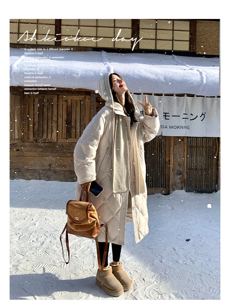 Off-white rhombus long knee-length down jacket for women winter 2025 new style fashionable warm white duck down jacket