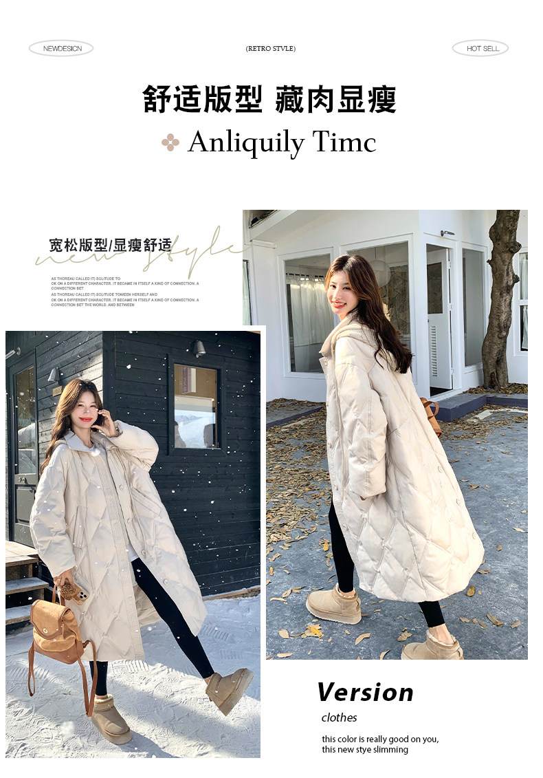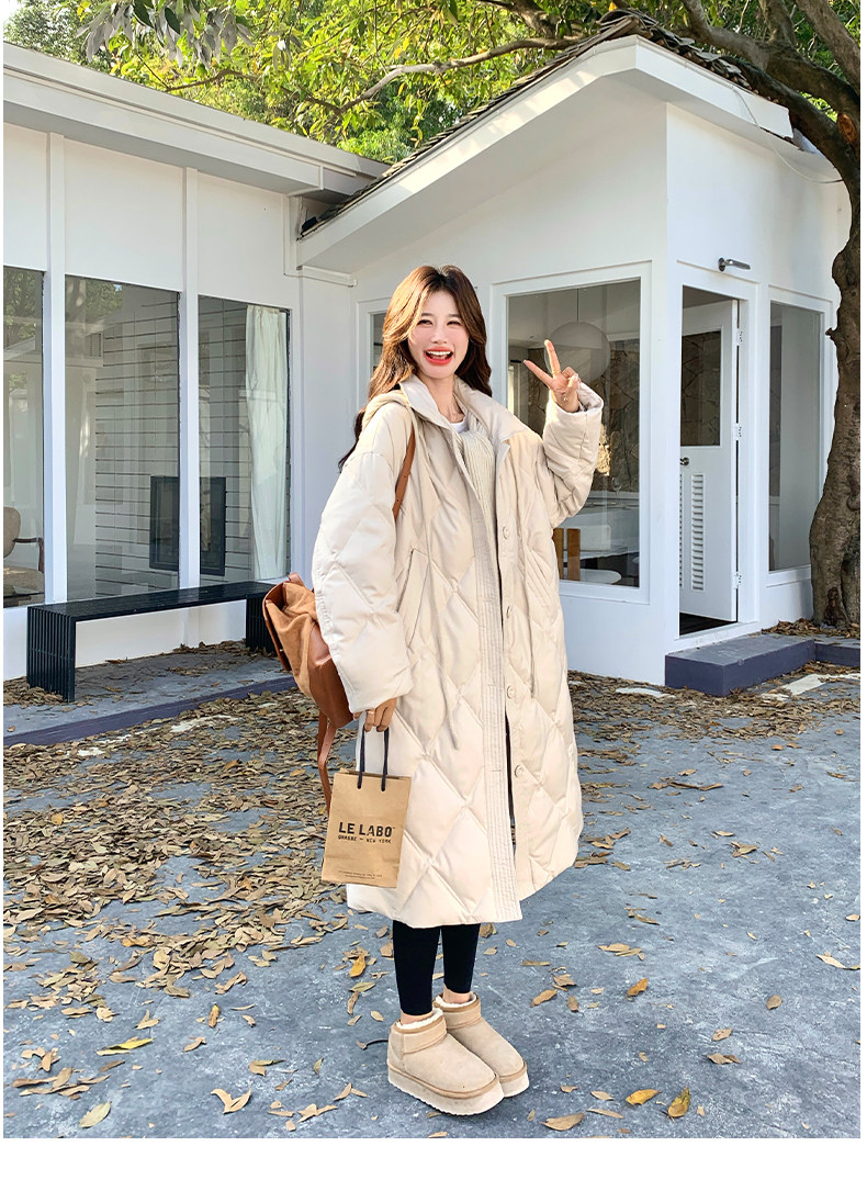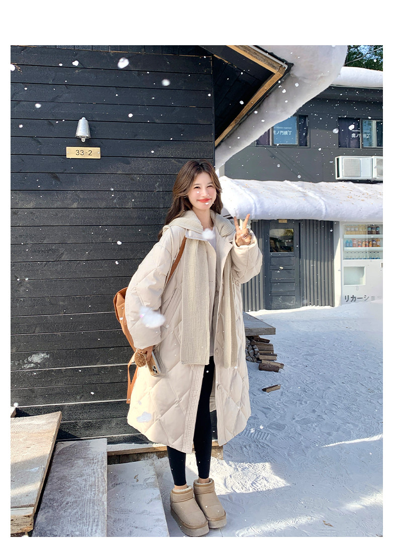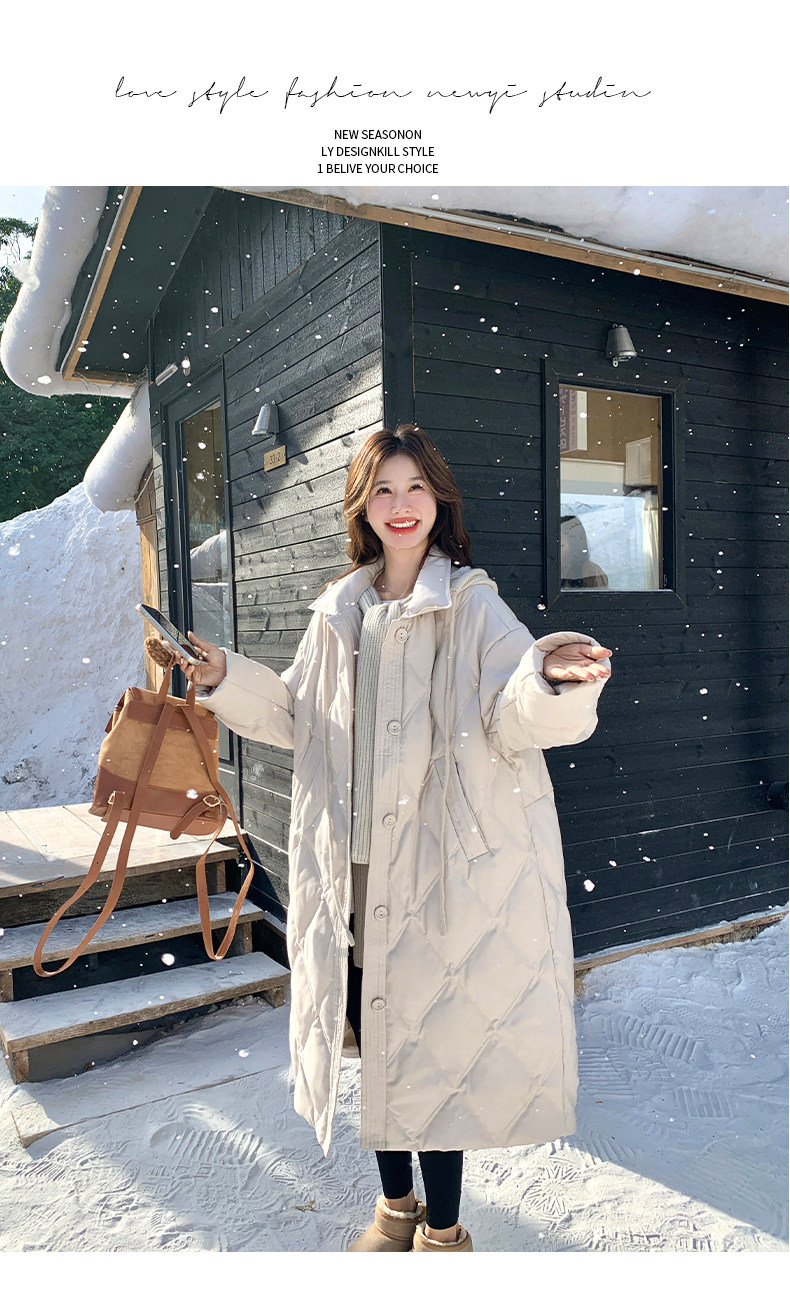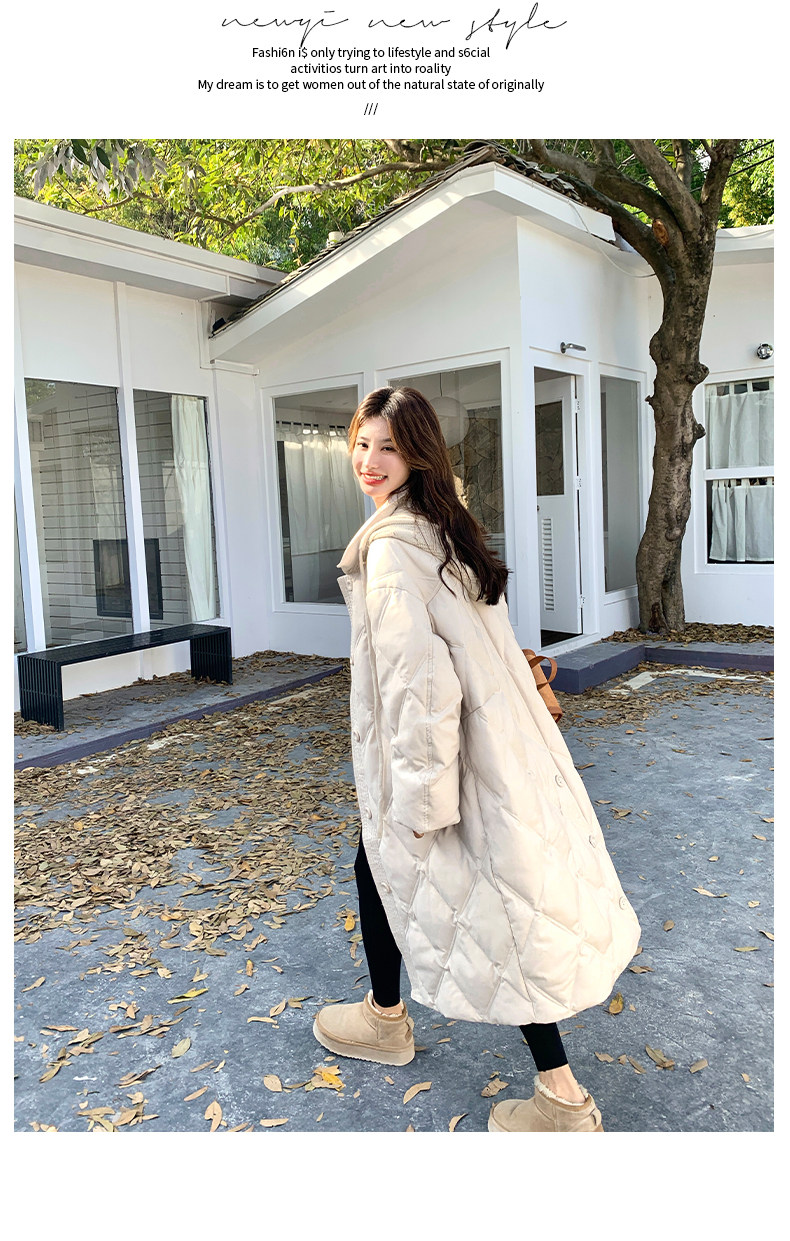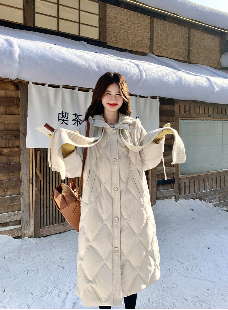 Off-white rhombus long knee-length down jacket for women winter 2025 new style fashionable warm white duck down jacket