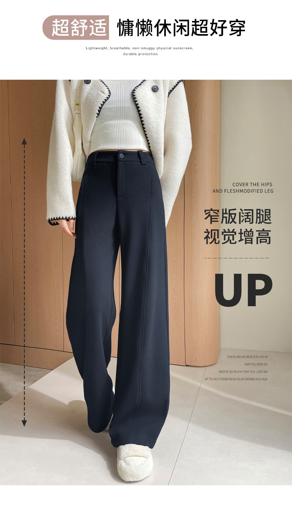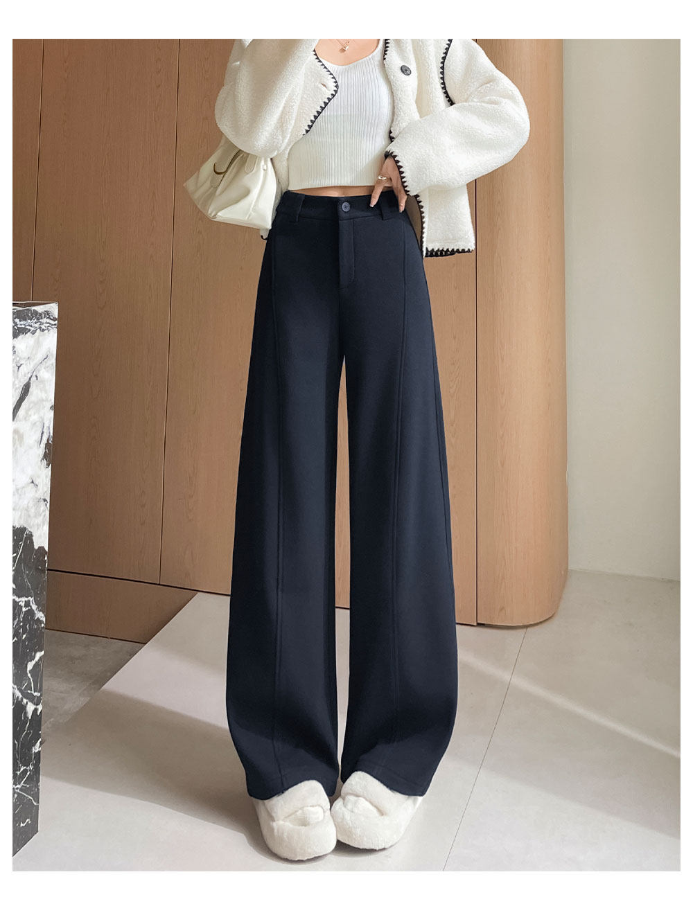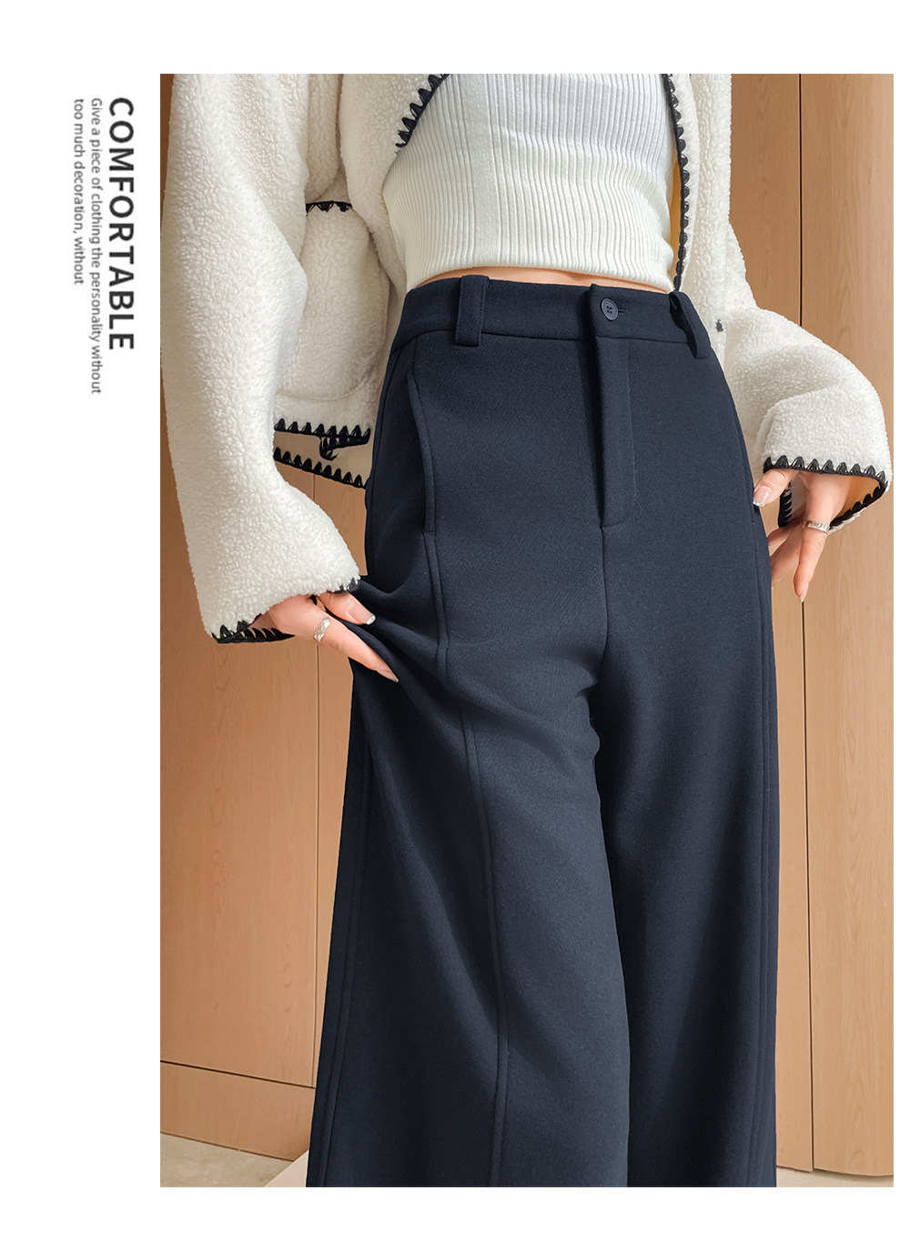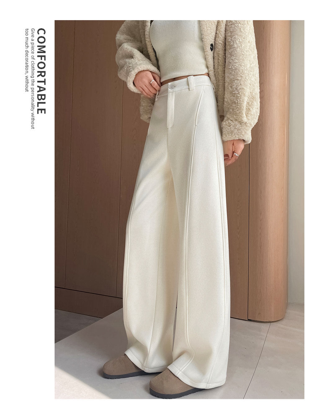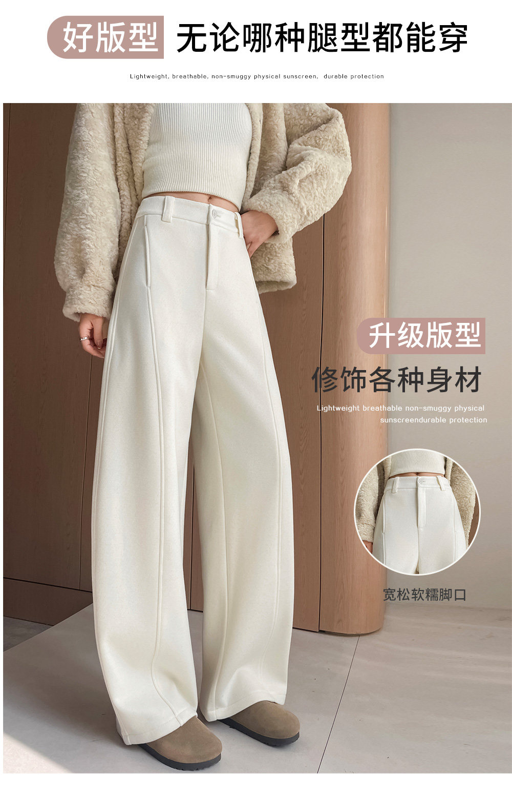 Gray Wool Suit Wide-Leg Pants for Women, Autumn and Winter, Fleece-Lined, Thickened, Slim-Fit, Twill Straight-Leg, Soft Woolen Knife-Cut Pants