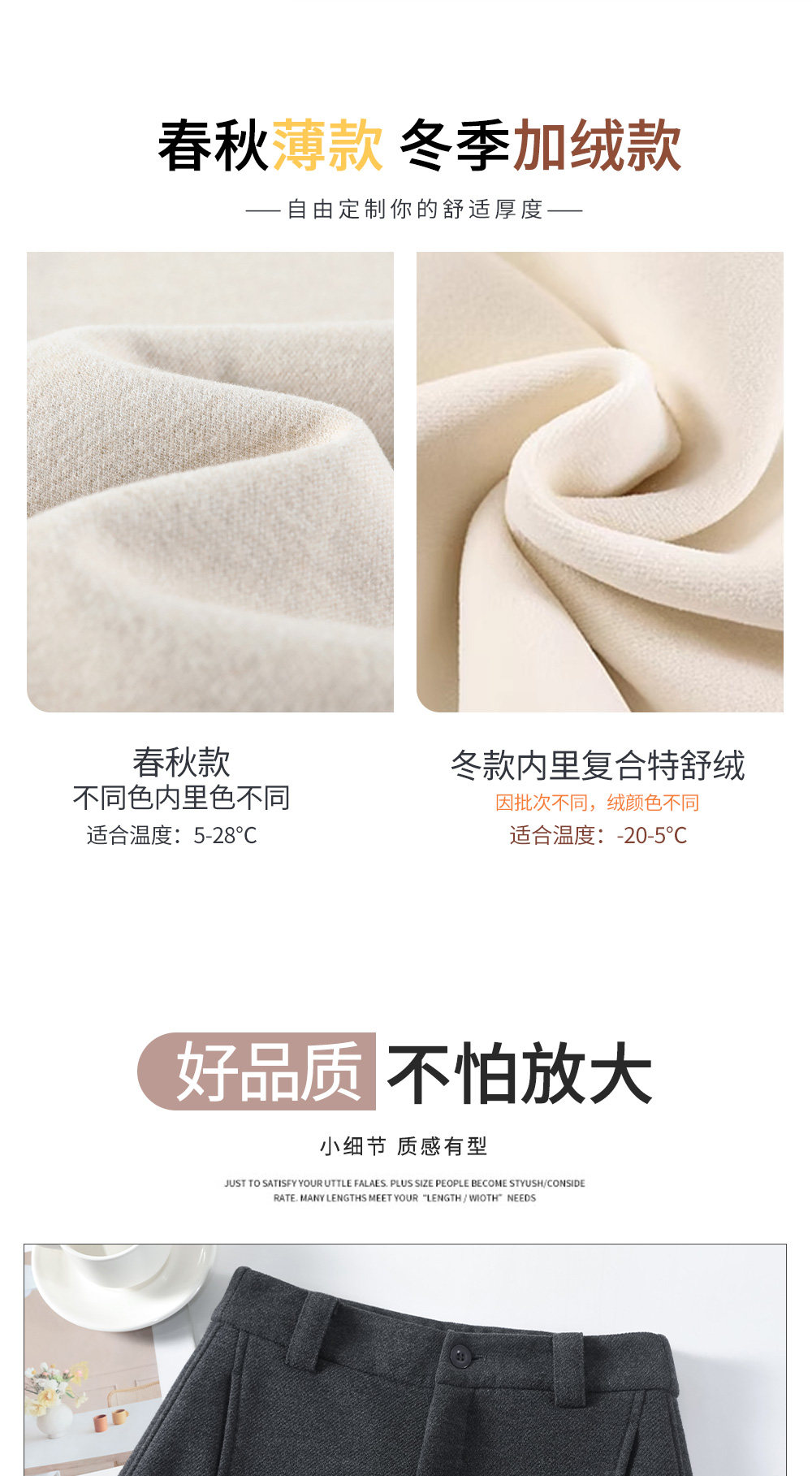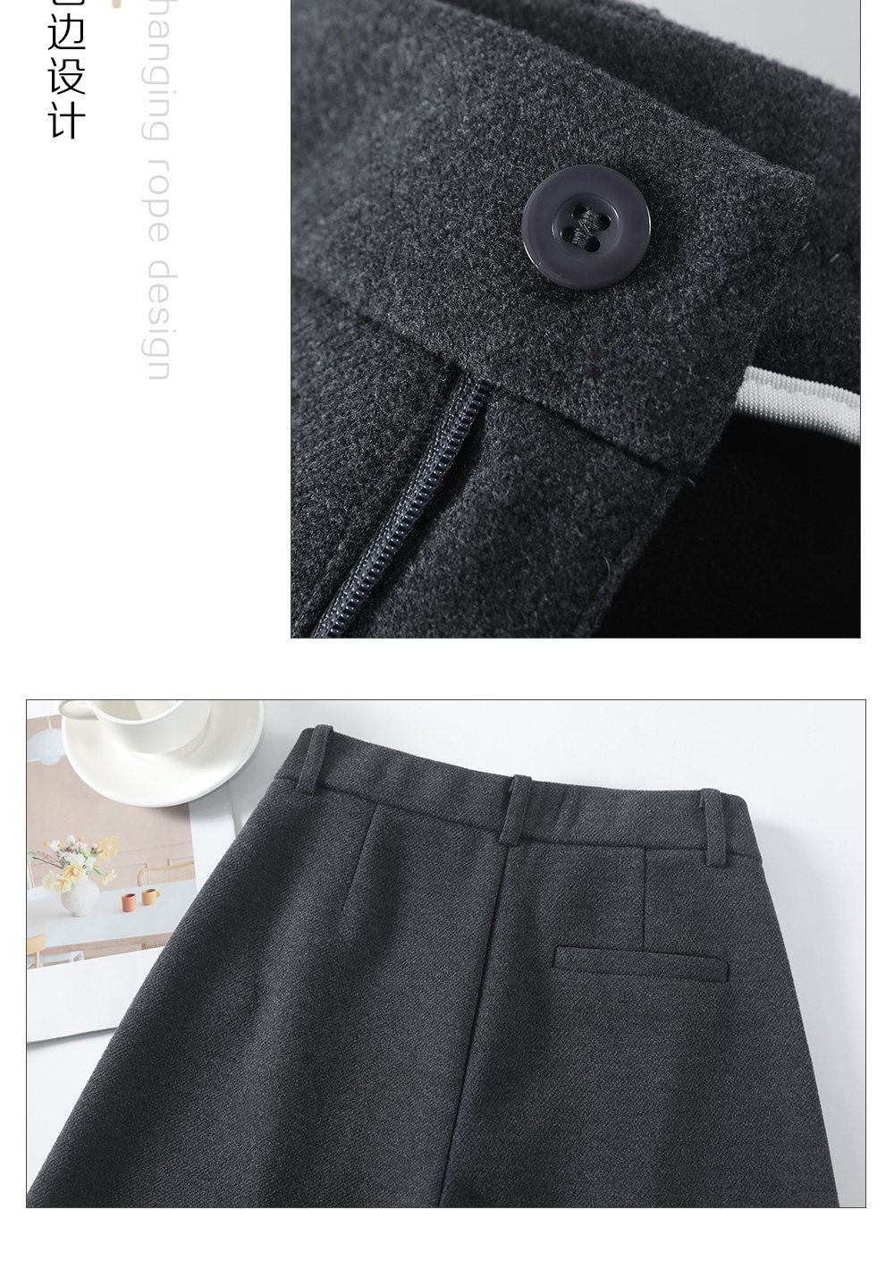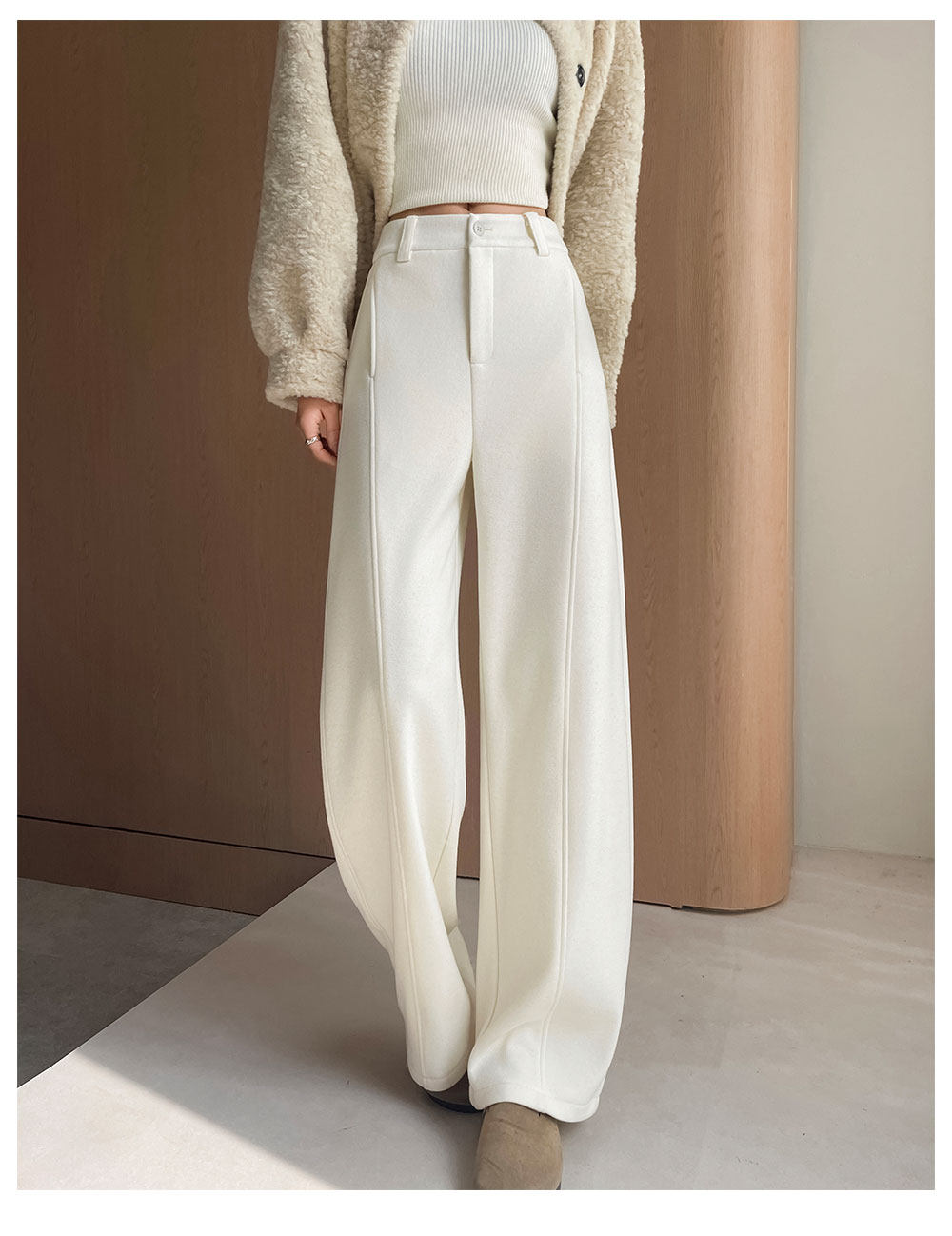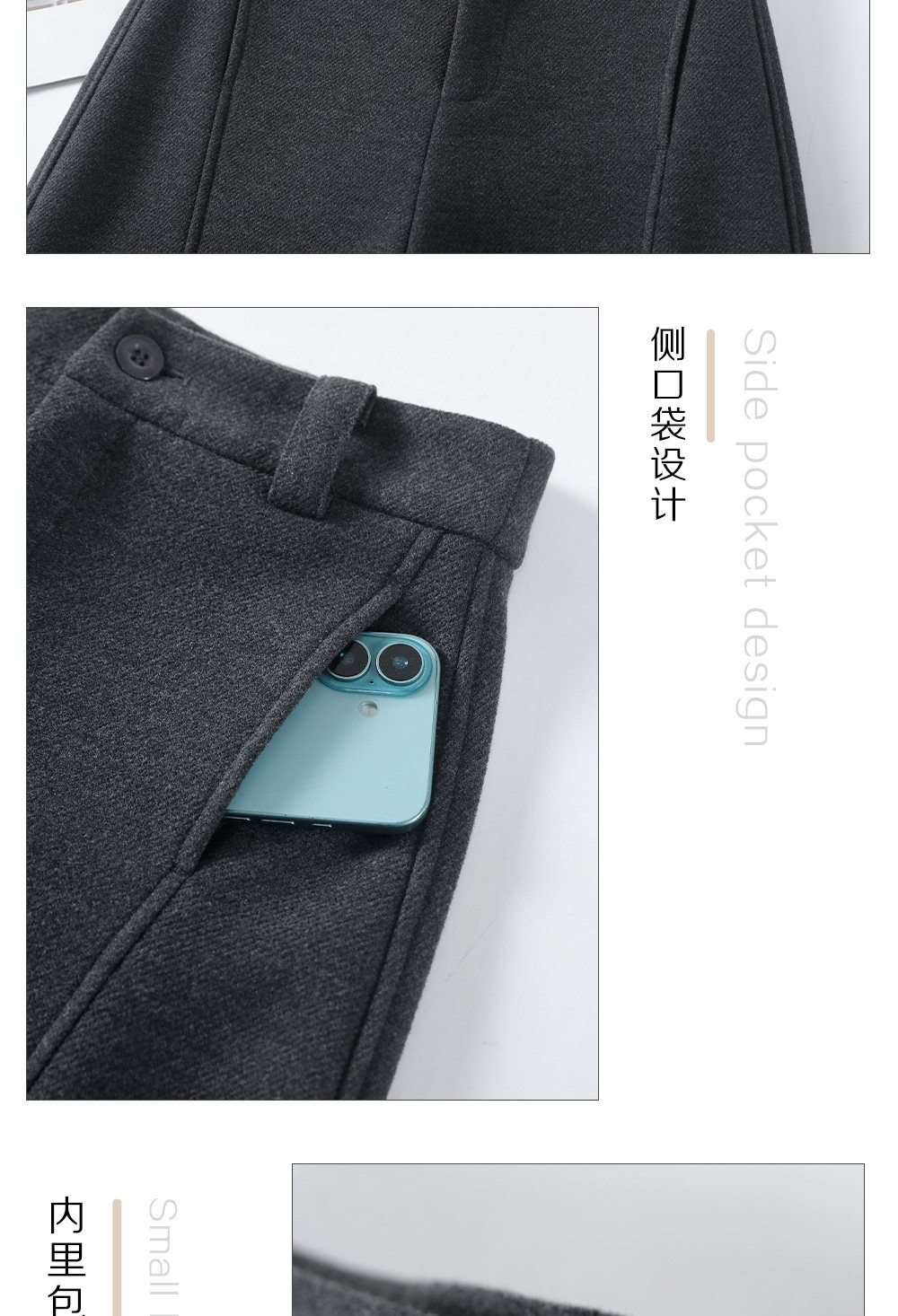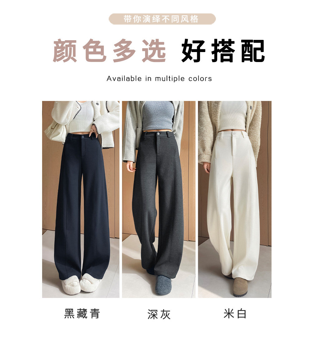 Gray Wool Suit Wide-Leg Pants for Women, Autumn and Winter, Fleece-Lined, Thickened, Slim-Fit, Twill Straight-Leg, Soft Woolen Knife-Cut Pants