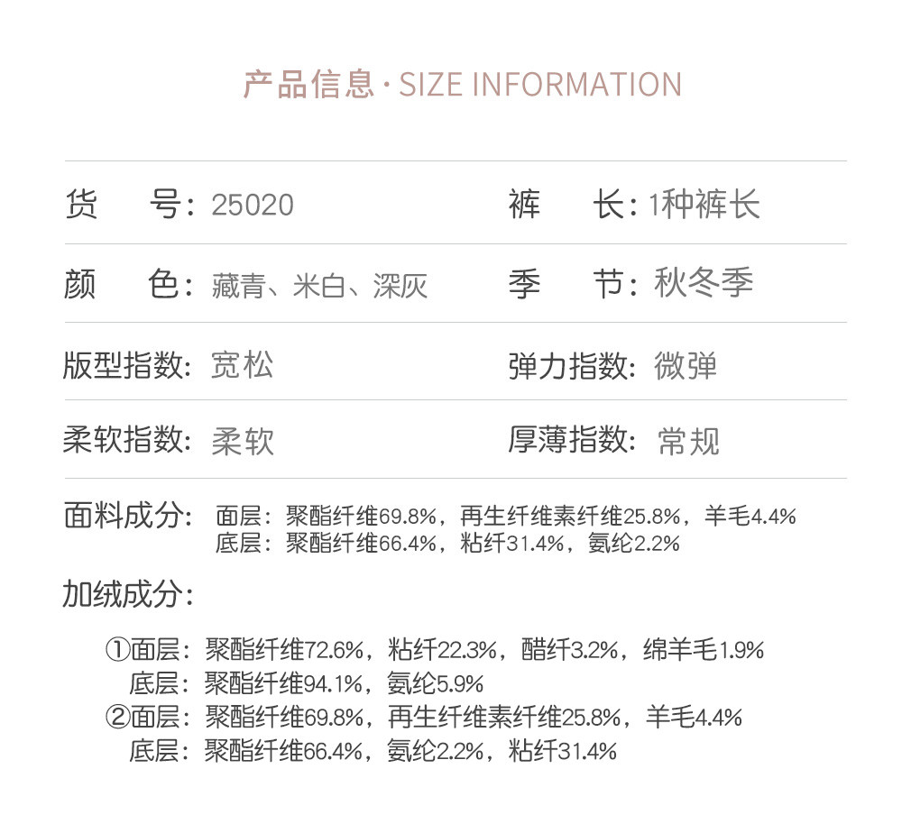 Material Composition Polyester Fiber 69.8% Regenerated Cellulose Fiber 25.8% Wool 4.4%