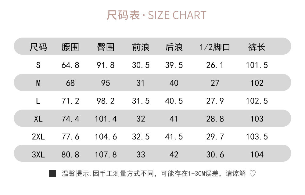 Outseam (cm) 99 cm 101.5 cm 104 cm 106.5 cm 109 cm