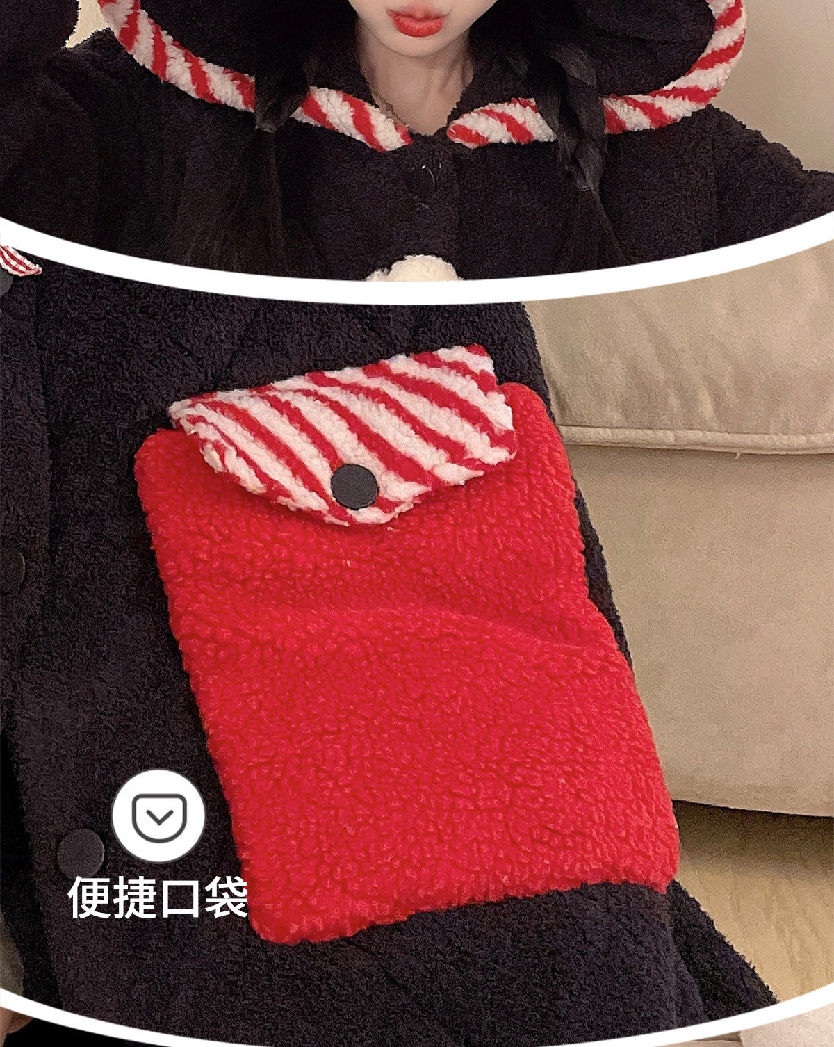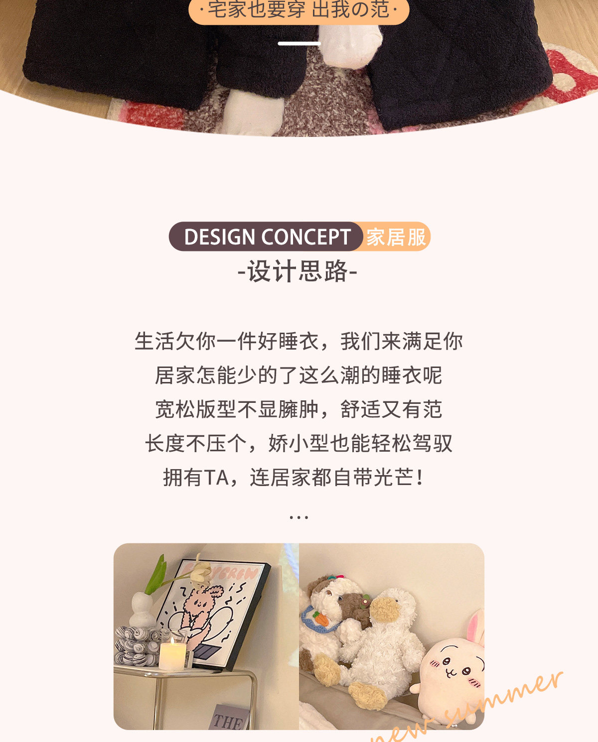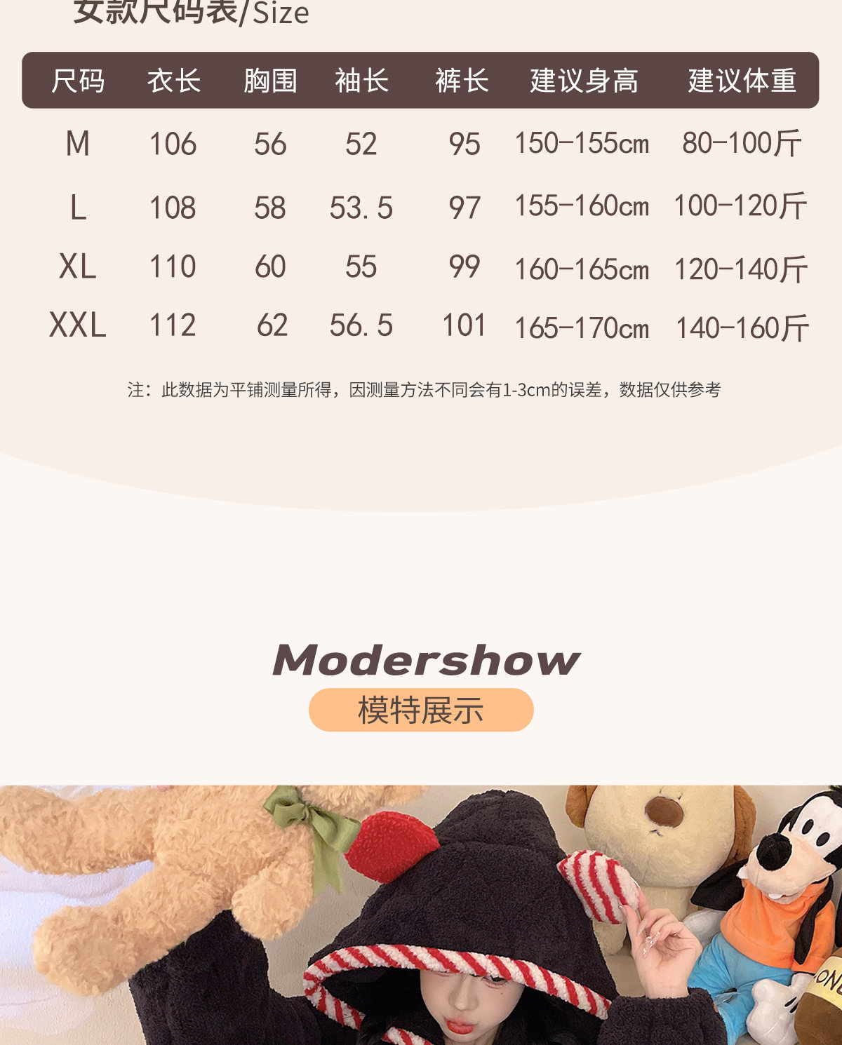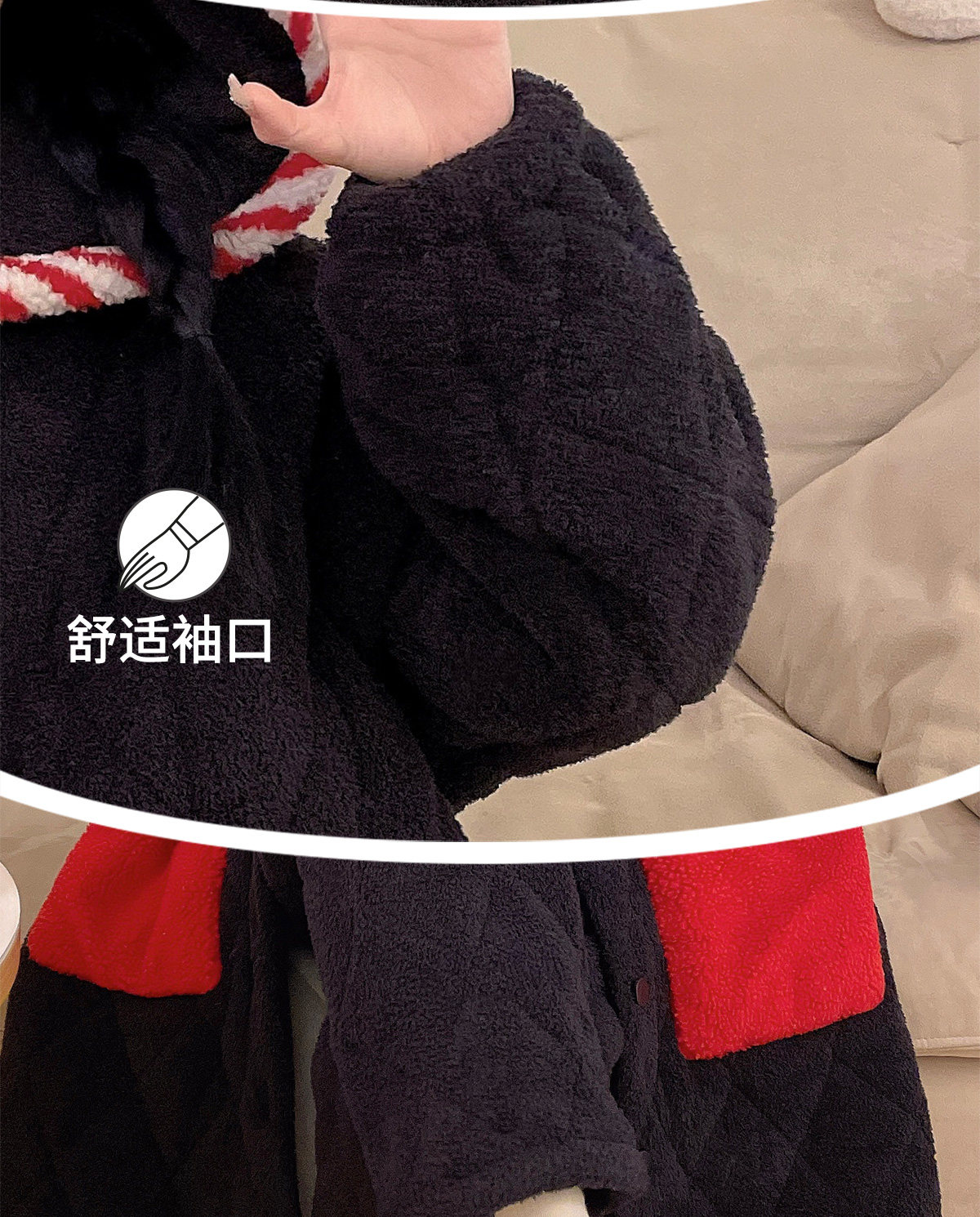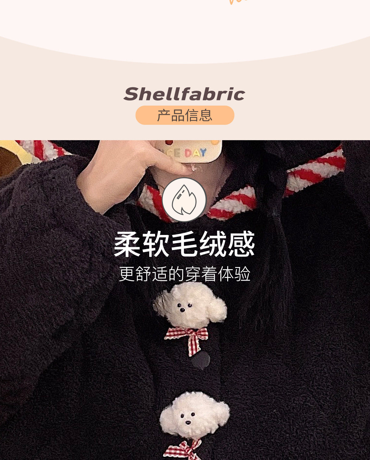 Autumn and Winter Three-Layer Quilted Cotton Women's Nightgown, Cute Puppy Half-Velvet Pajamas, Thickened and Fleece-Lined, Adorable Set, Loungewear