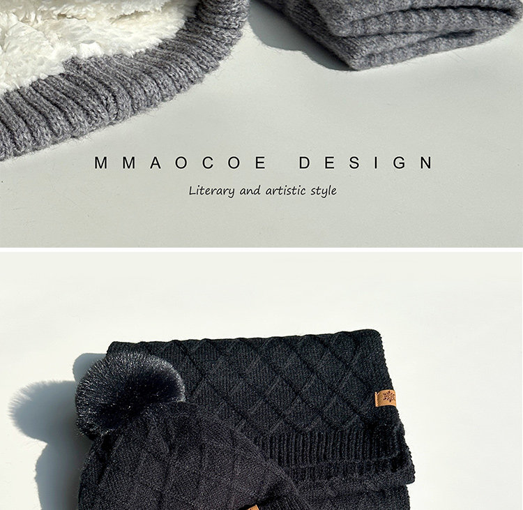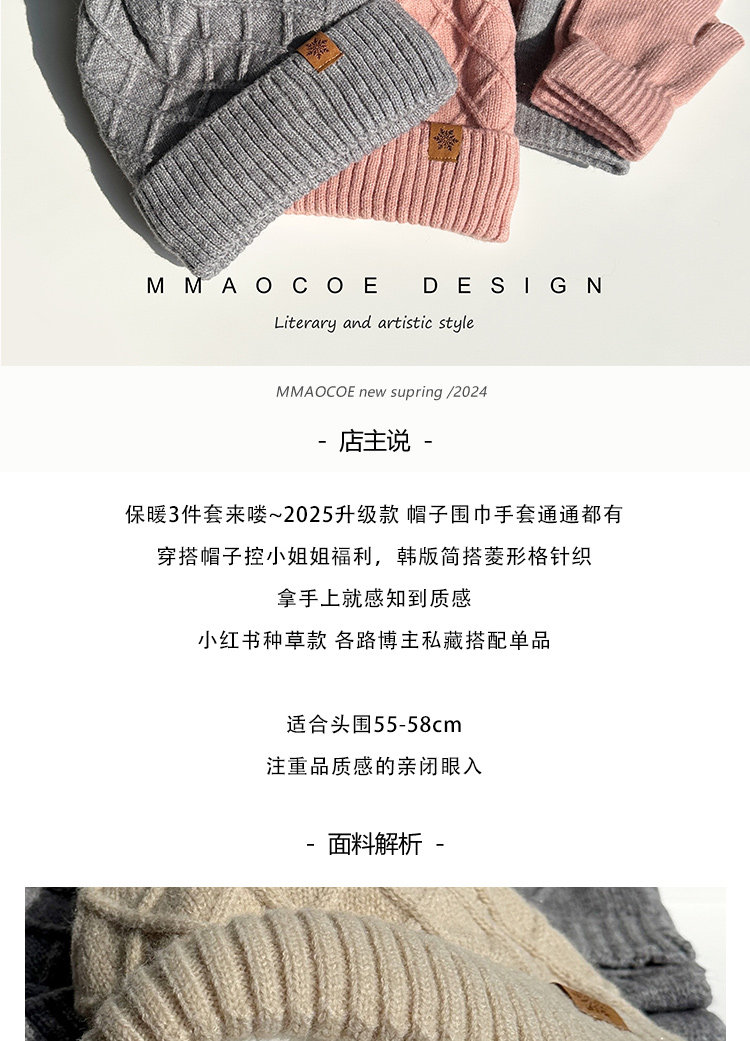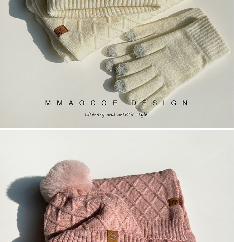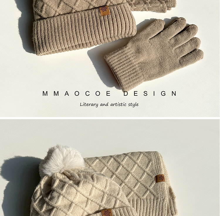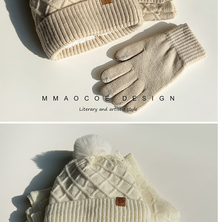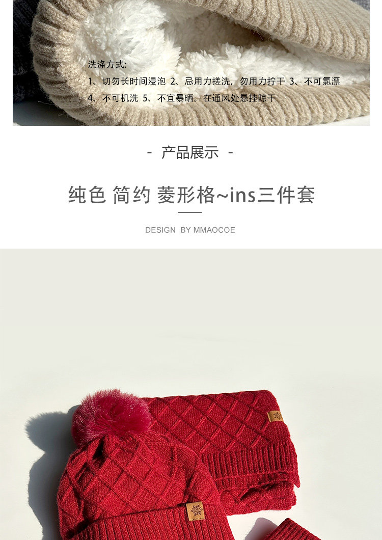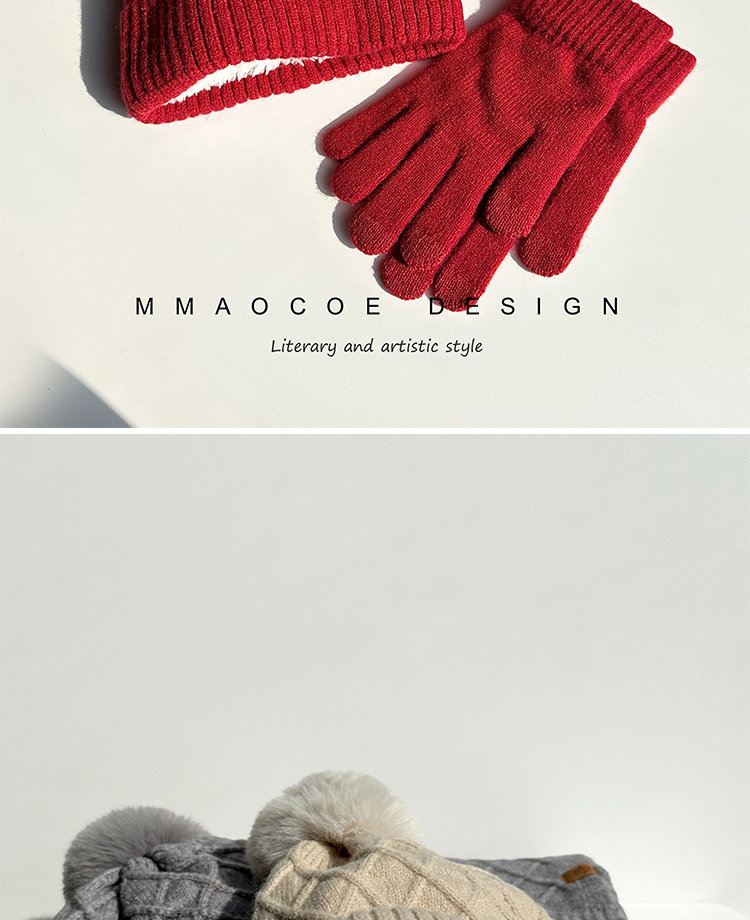 Red Knitted Hat, Scarf, and Gloves Three-Piece Set for Men and Women, Winter Cold-Proof Neck Warmer, Fleece-Lined Warm Wool Hat