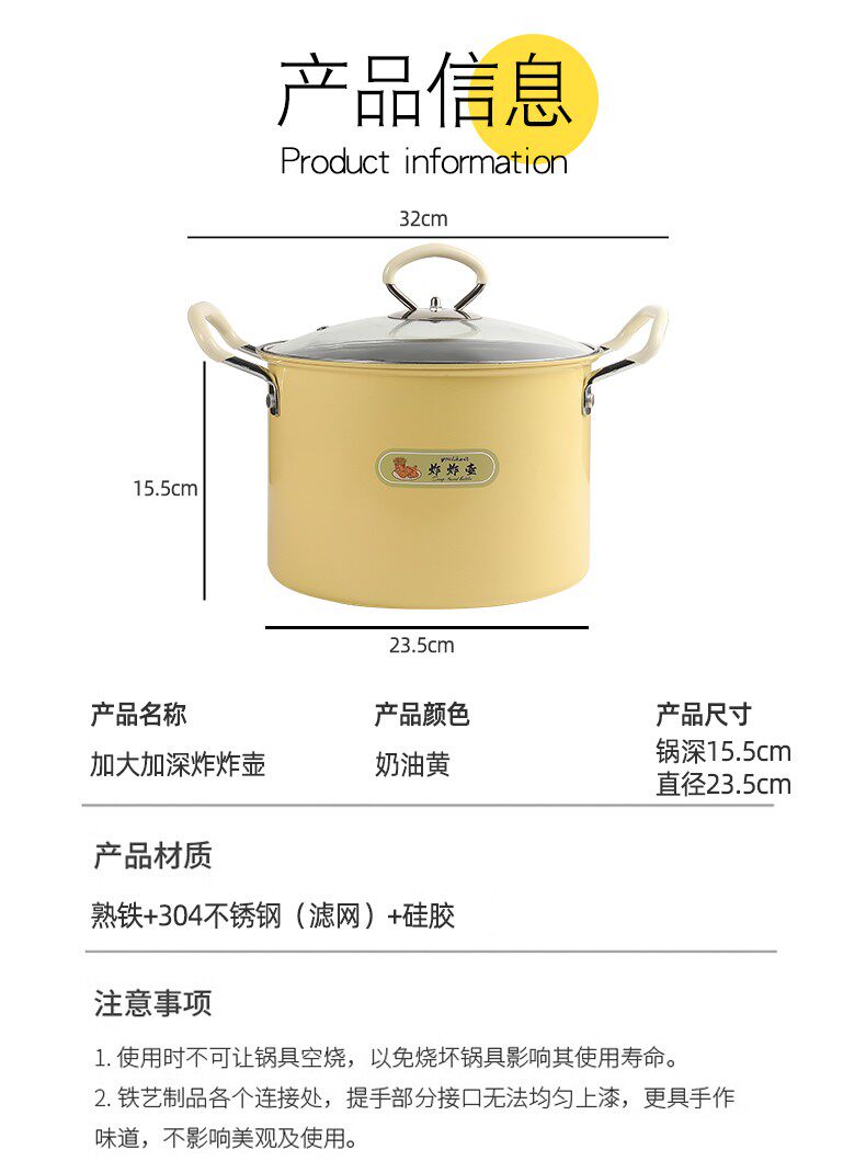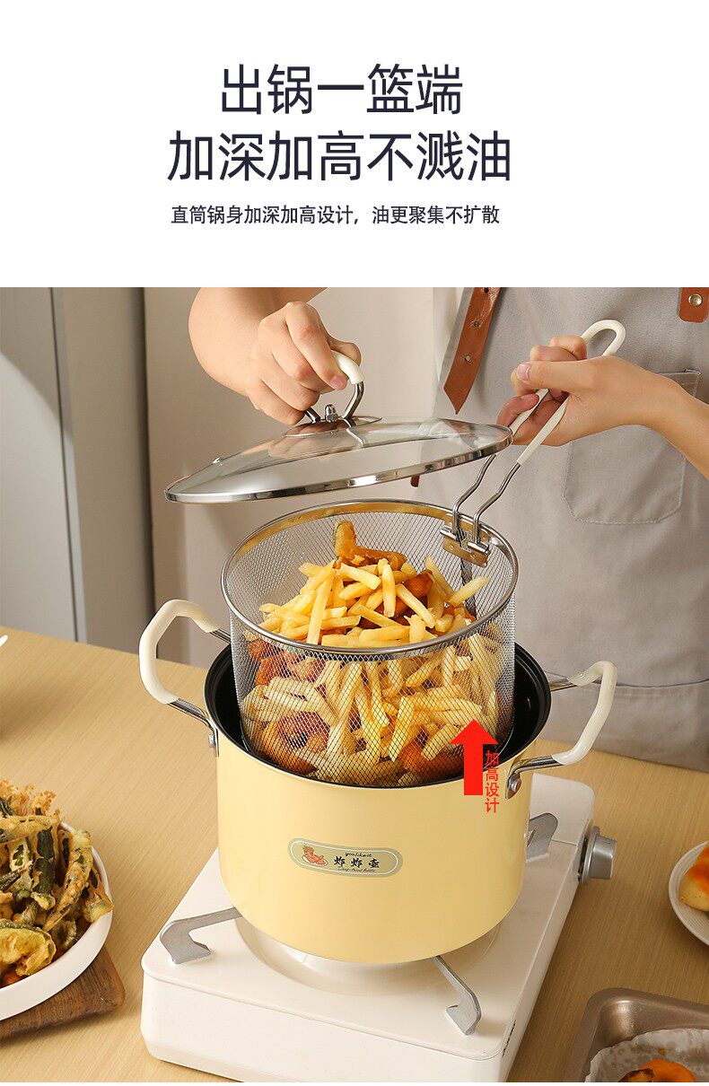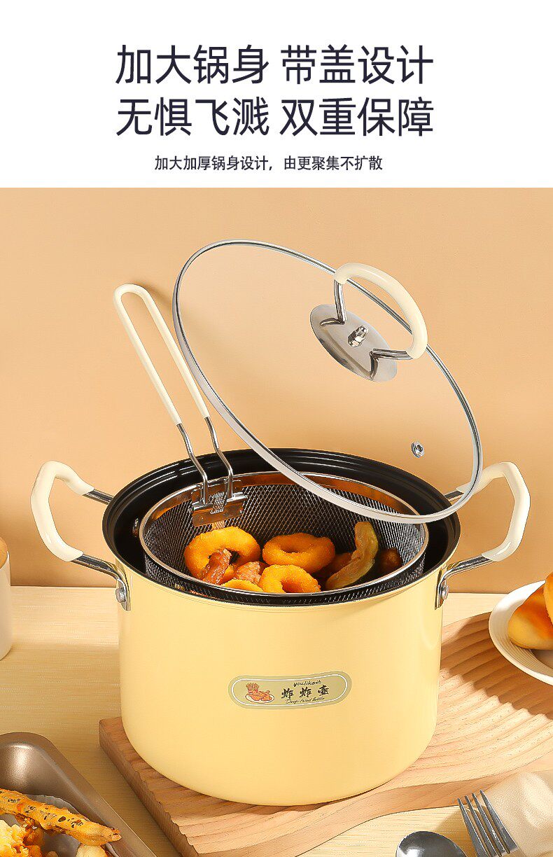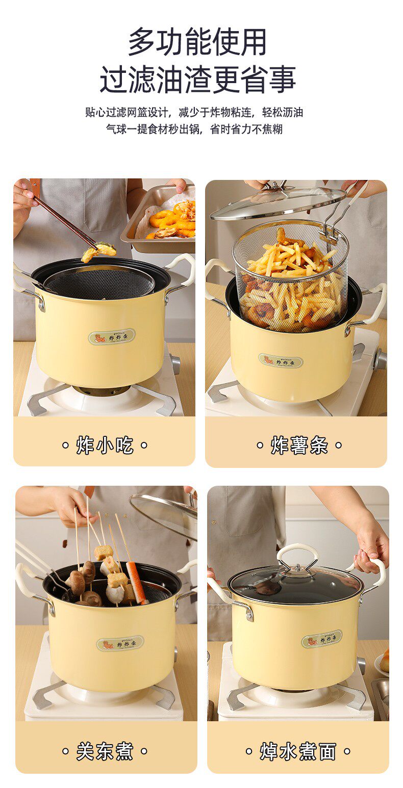 Fryer for household small tempura fried skewers, special fuel-saving belt filter, heightening and deepening the pot, multi-functional frying pot