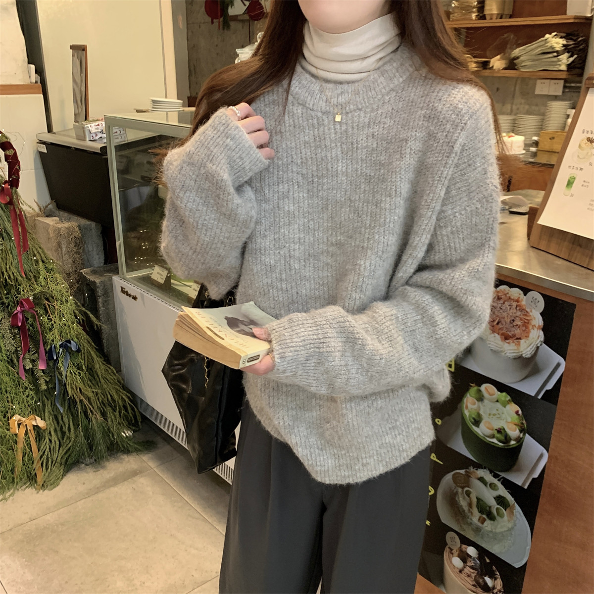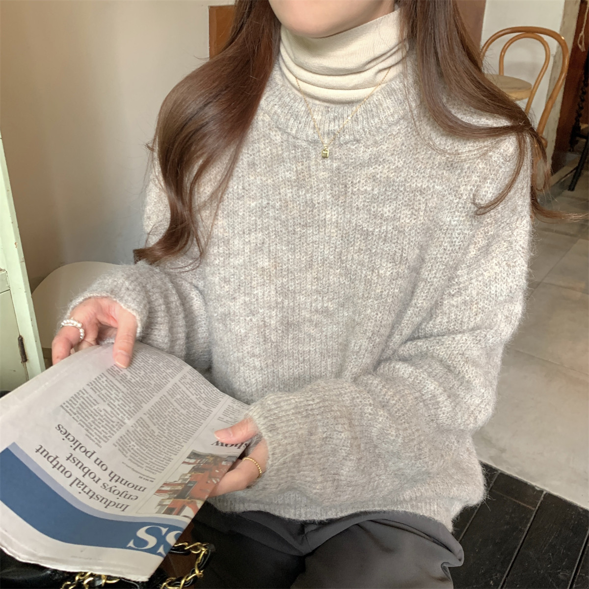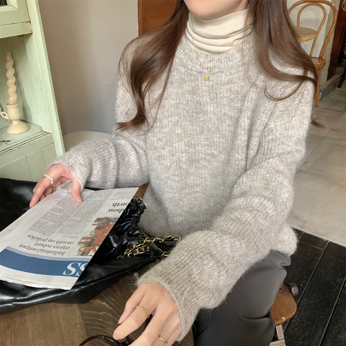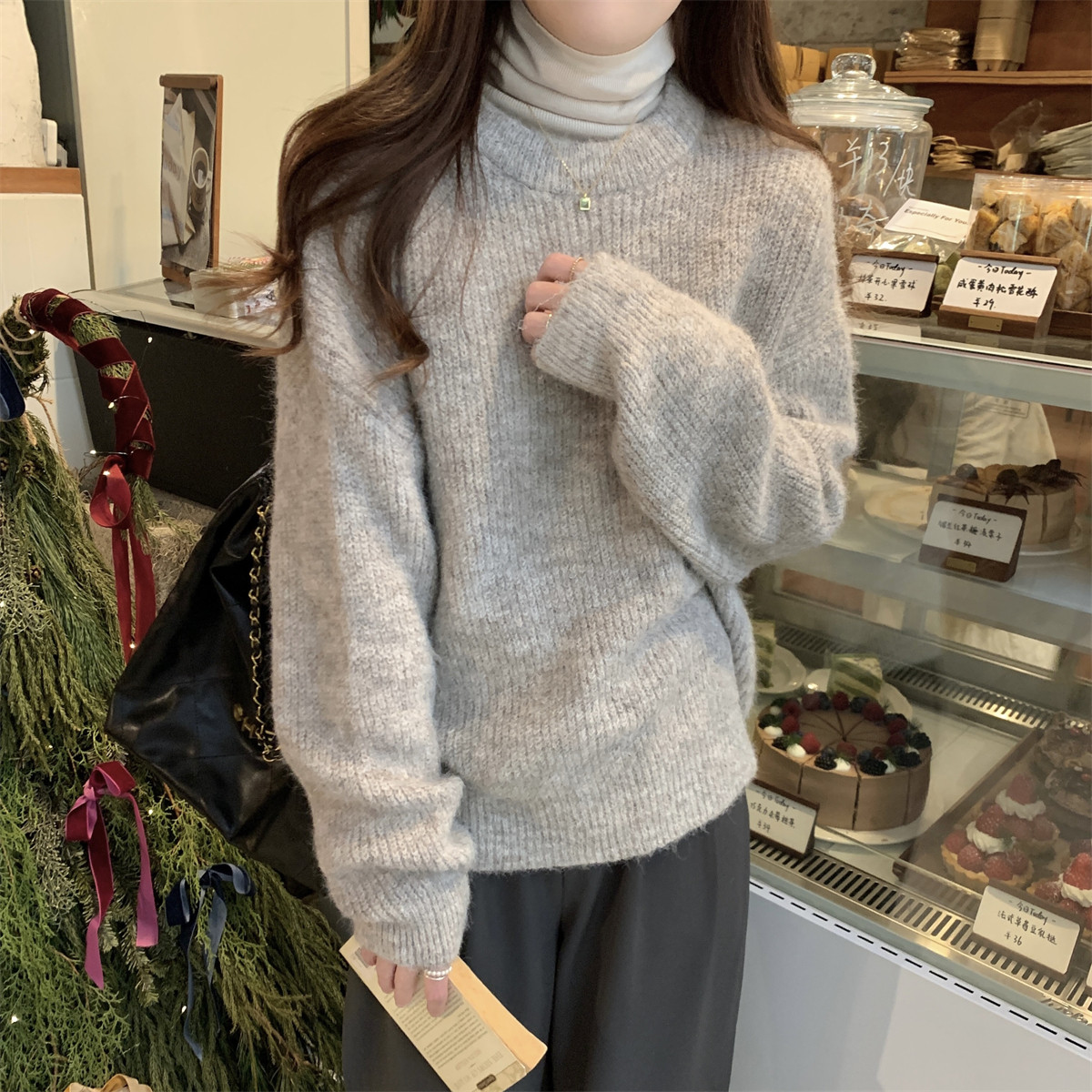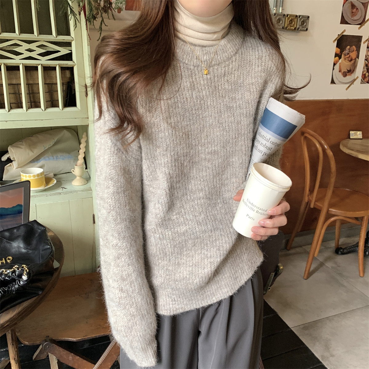 Suseyiku Autumn and Winter Korean Style Lazy Soft Round Neck Loose Variegated Mohair Knit Sweater for Women