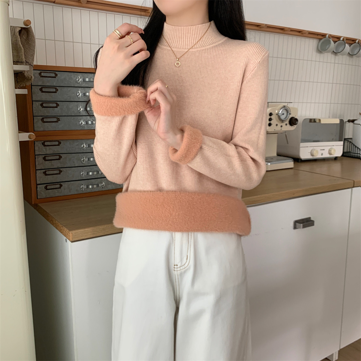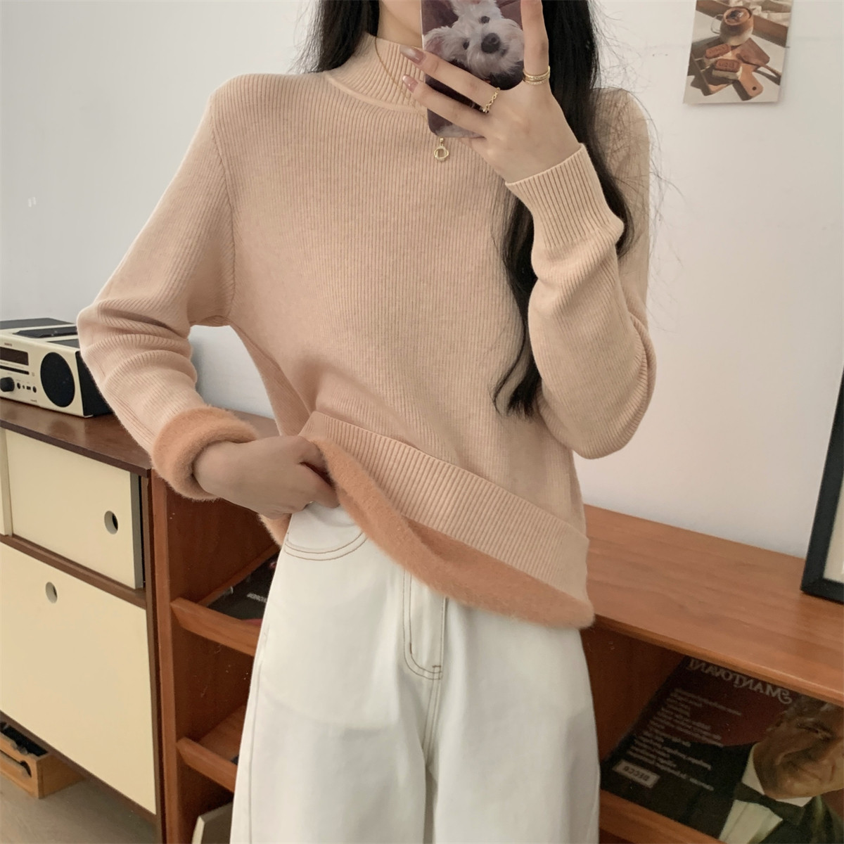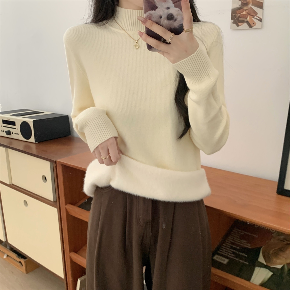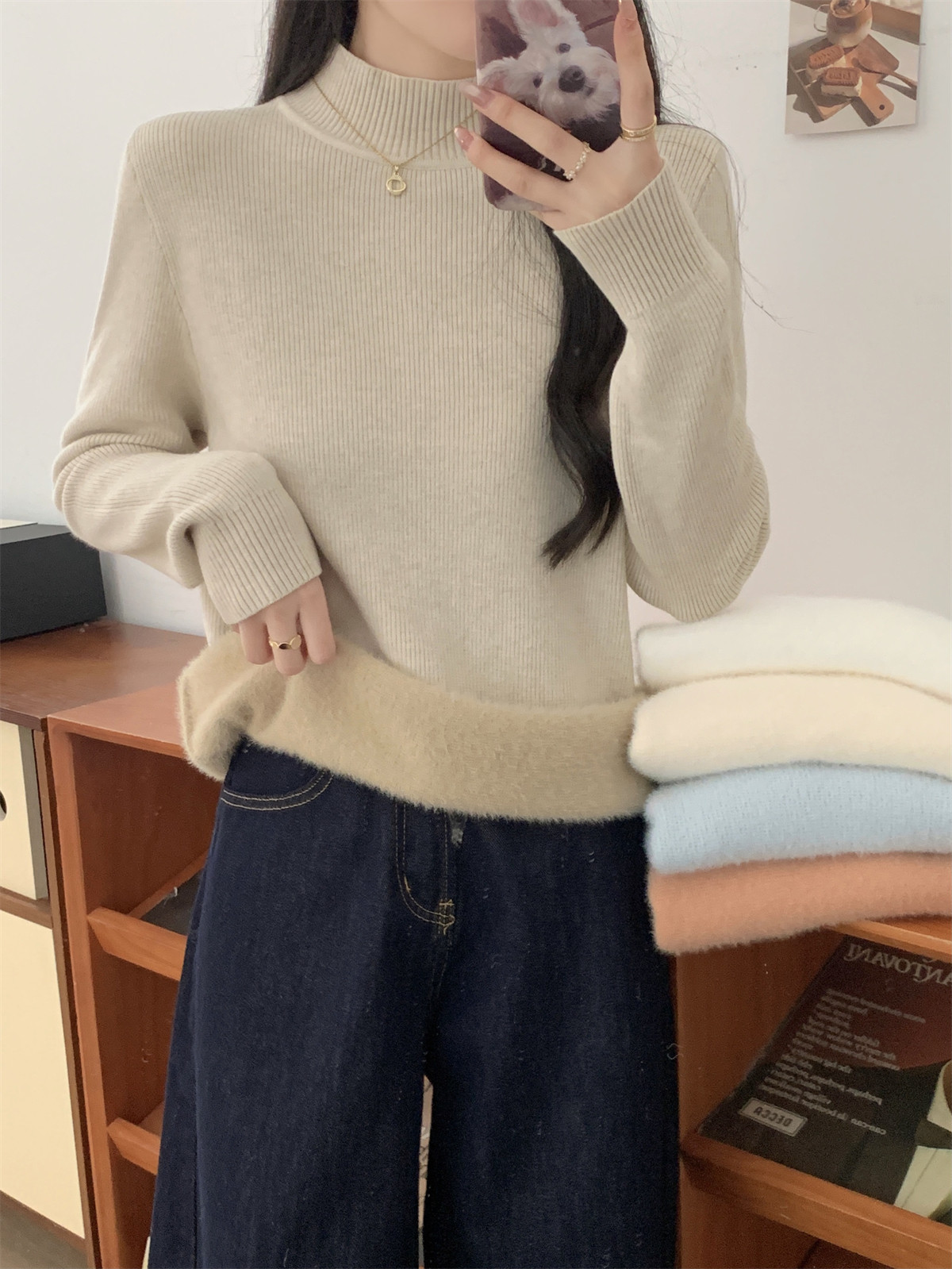 Suseyiku Autumn and Winter Korean Style Warm and Thickeneded Loose-Fitting One-Piece Velvet Half-Turtleneck Andy Velvet Knitwear for Women