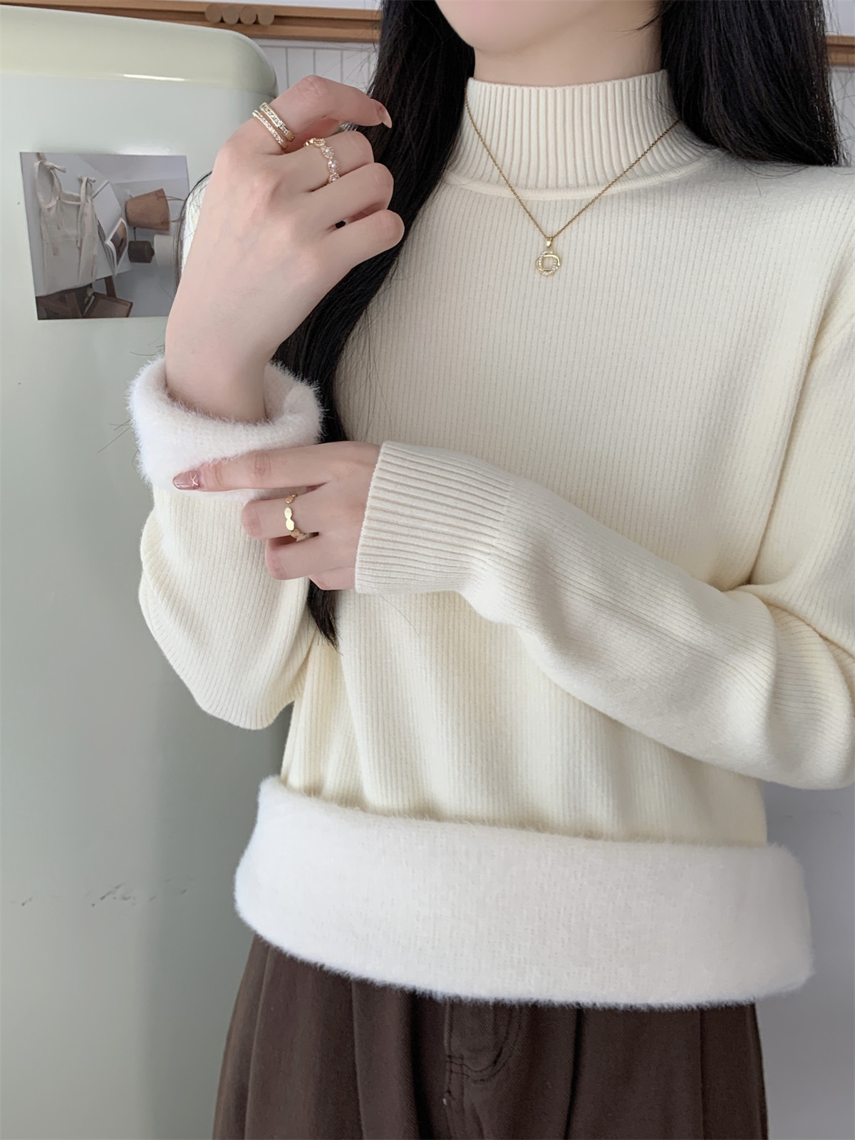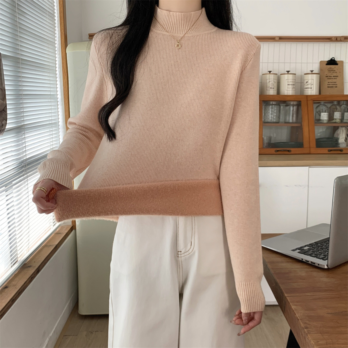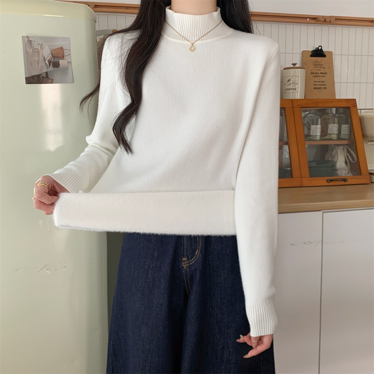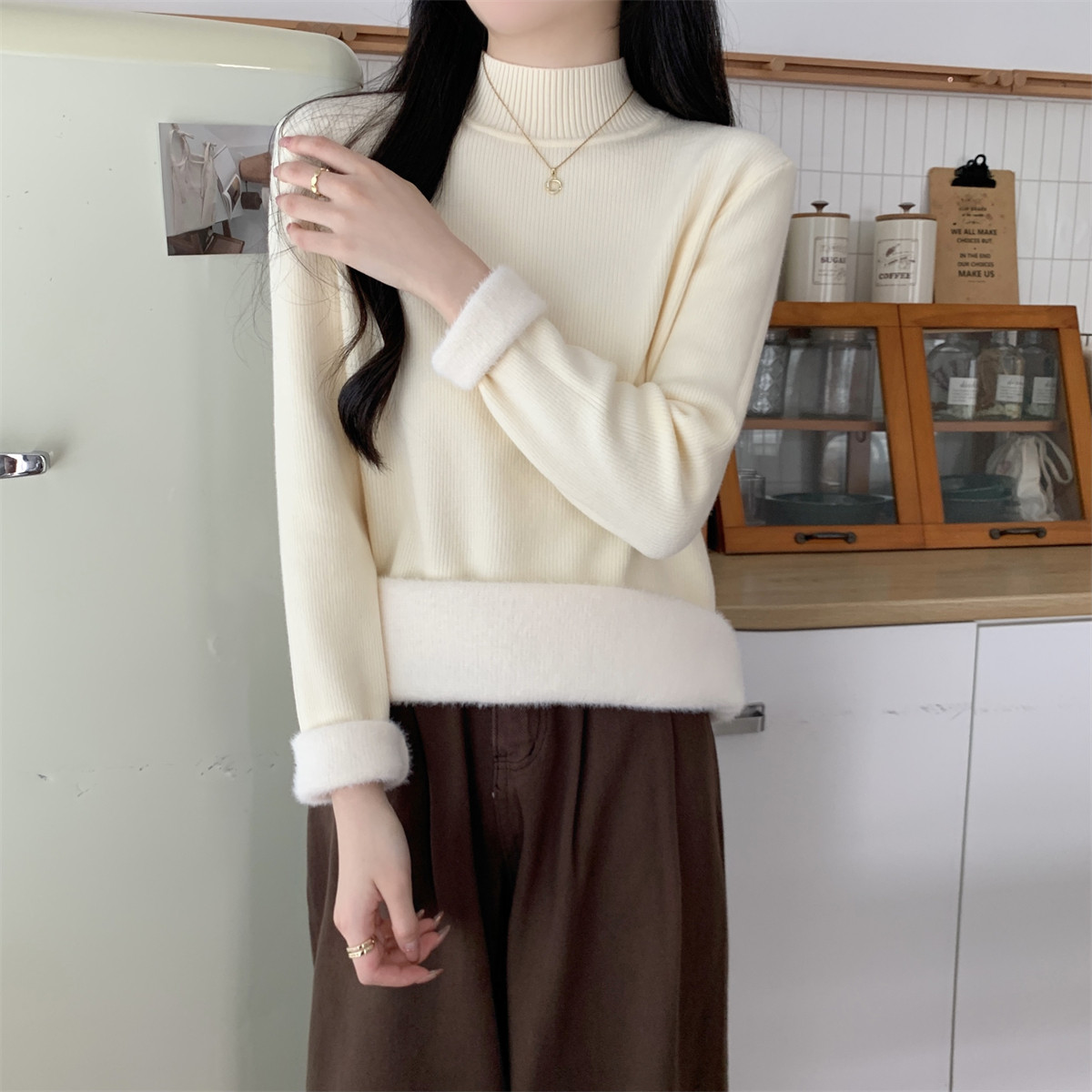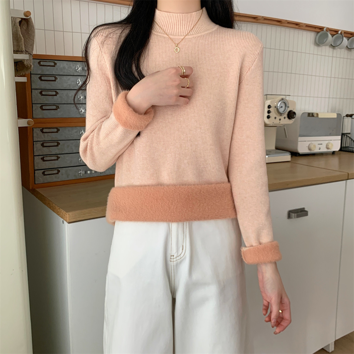 Suseyiku Autumn and Winter Korean Style Warm and Thickeneded Loose-Fitting One-Piece Velvet Half-Turtleneck Andy Velvet Knitwear for Women