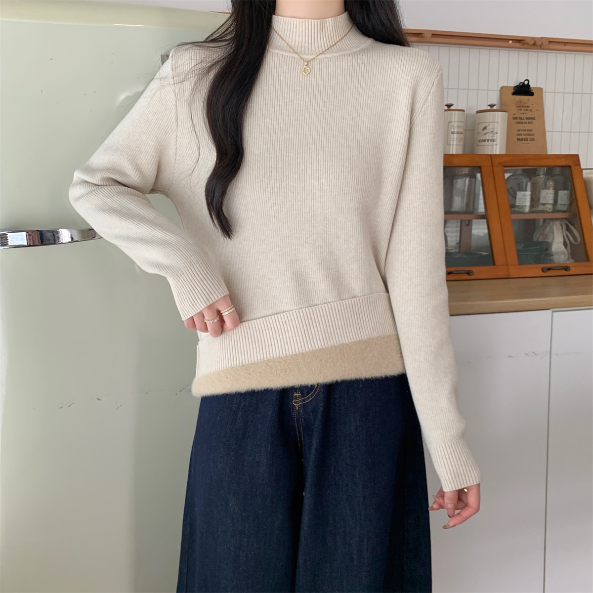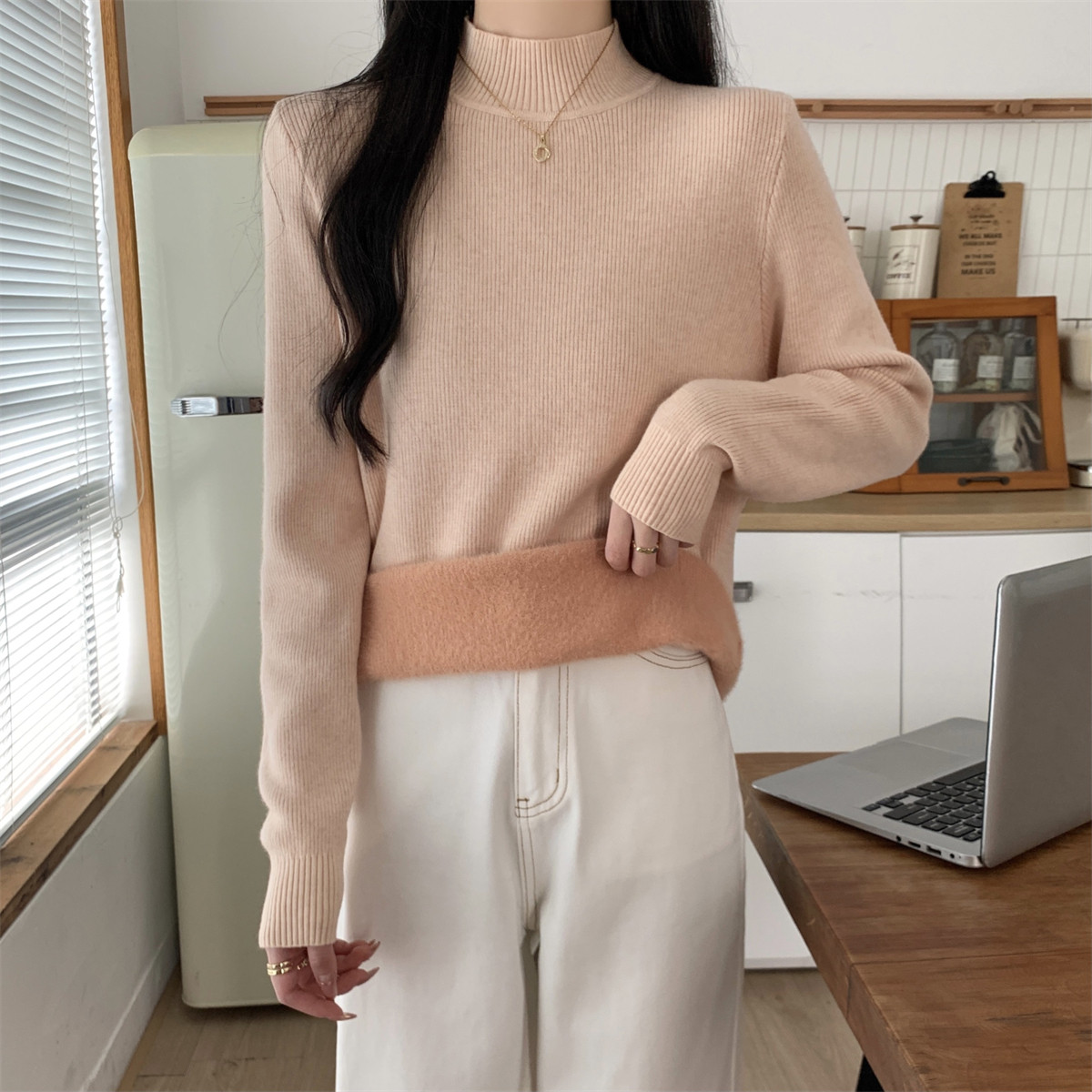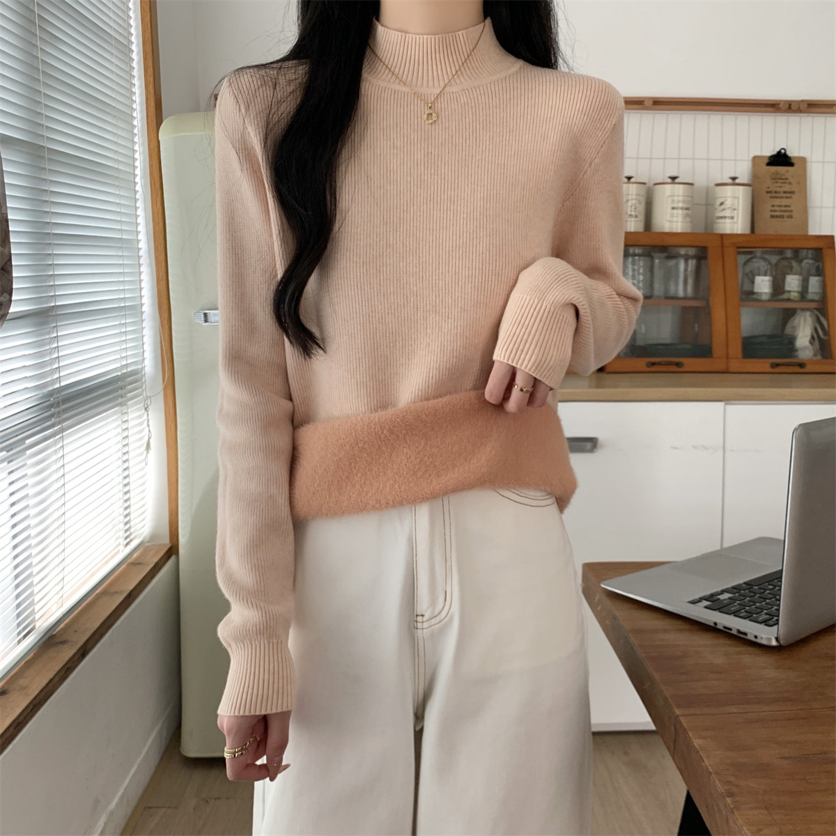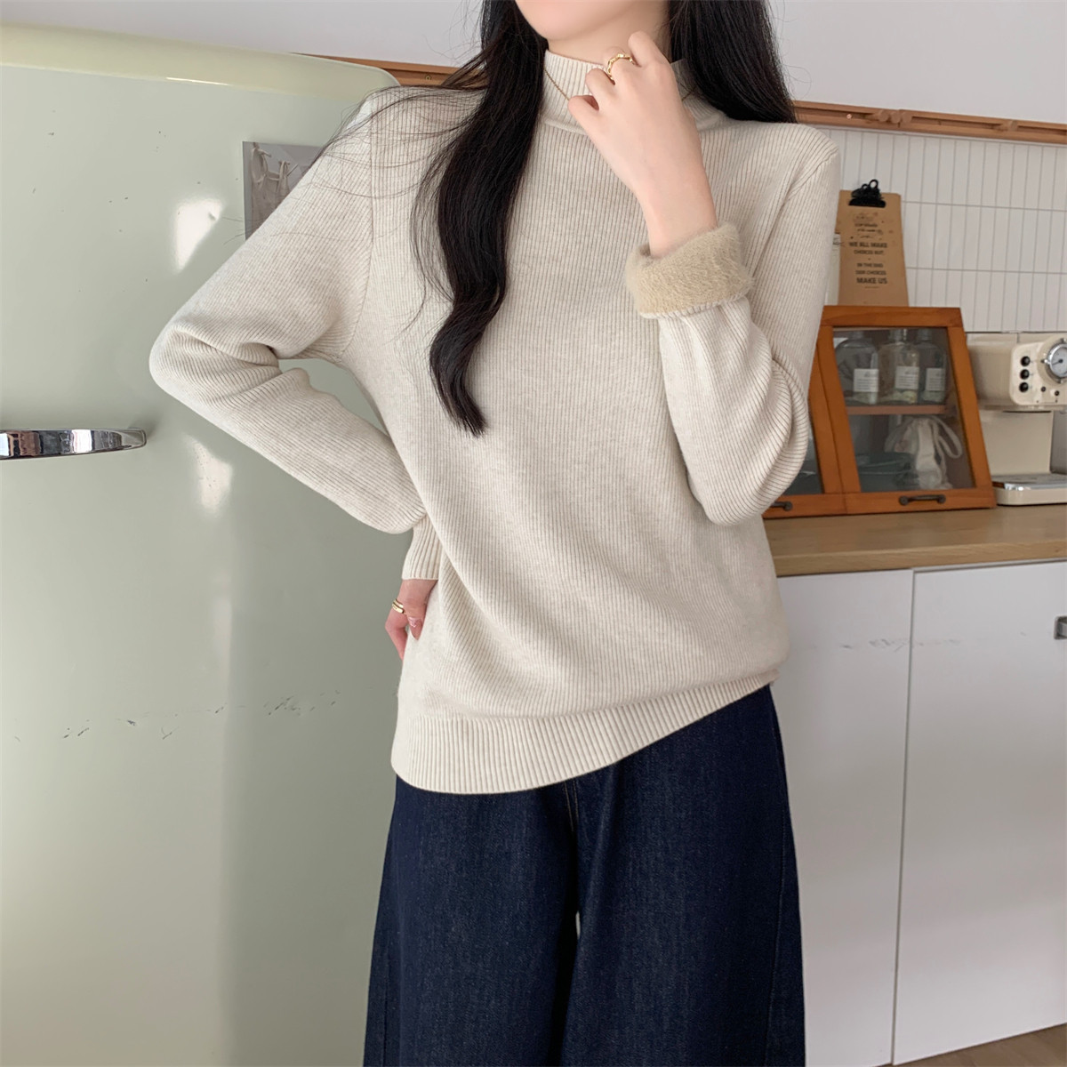 Suseyiku Autumn and Winter Korean Style Warm and Thickeneded Loose-Fitting One-Piece Velvet Half-Turtleneck Andy Velvet Knitwear for Women