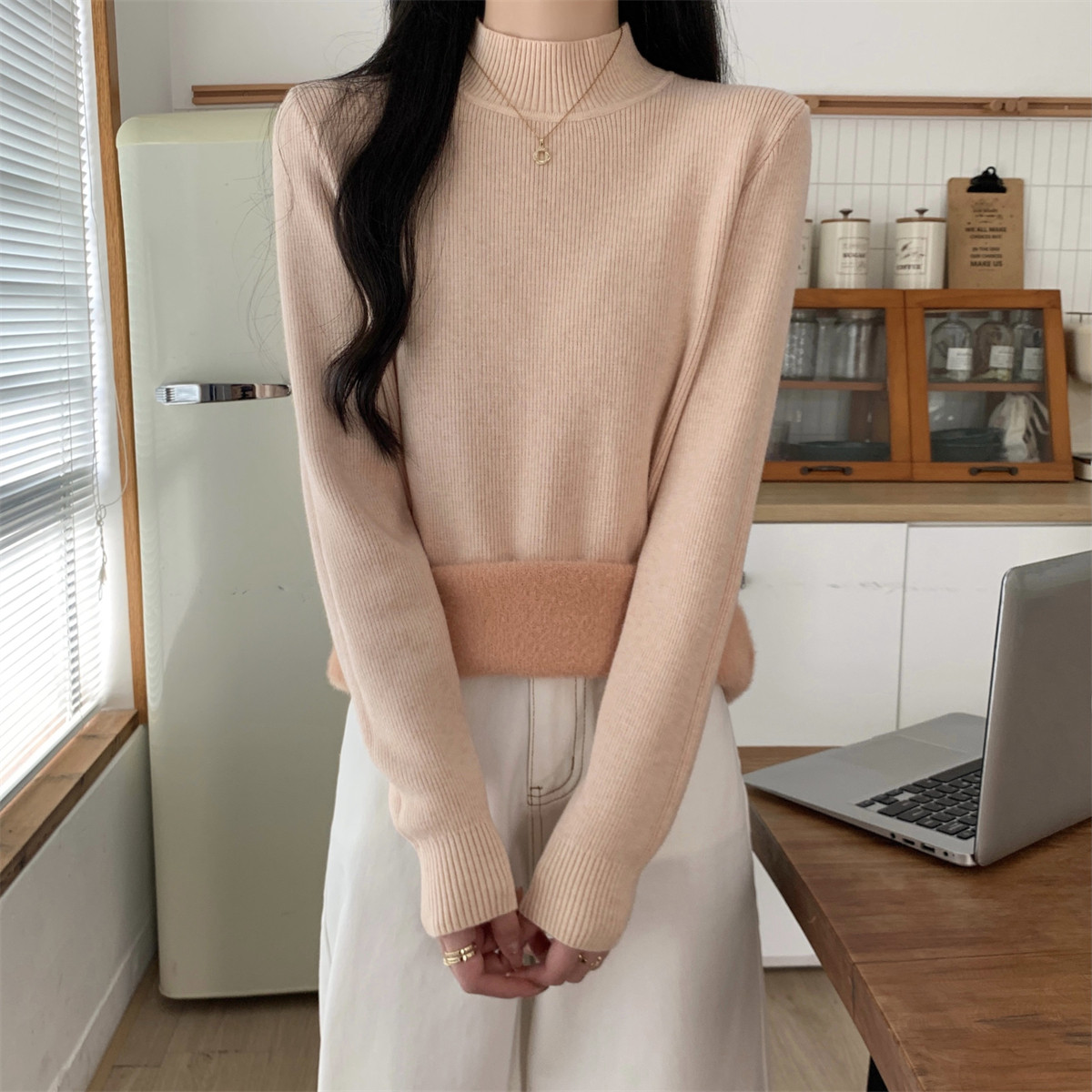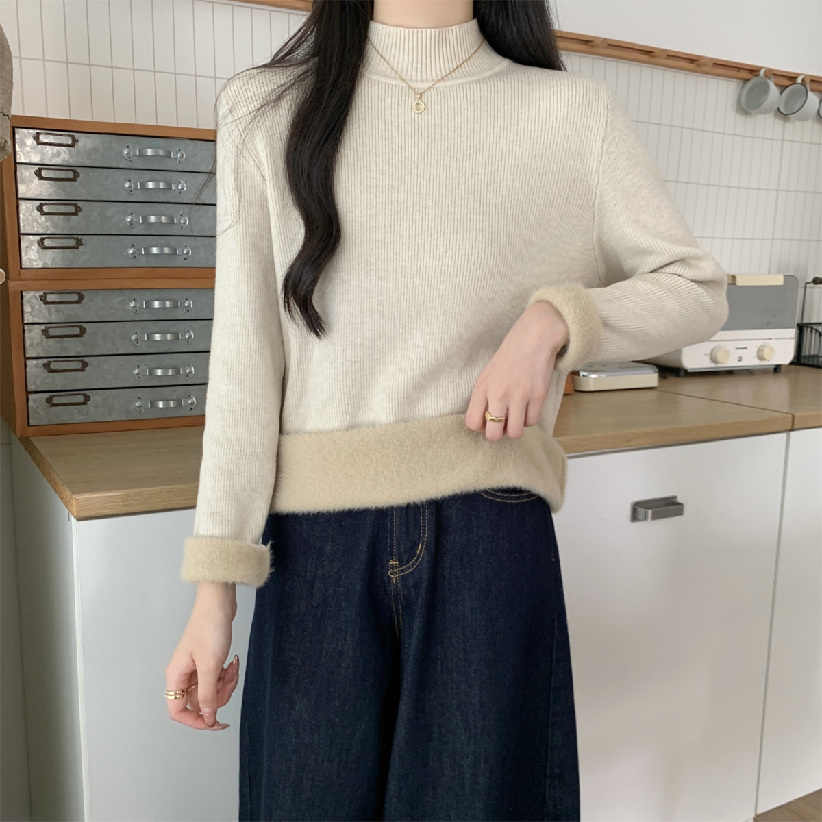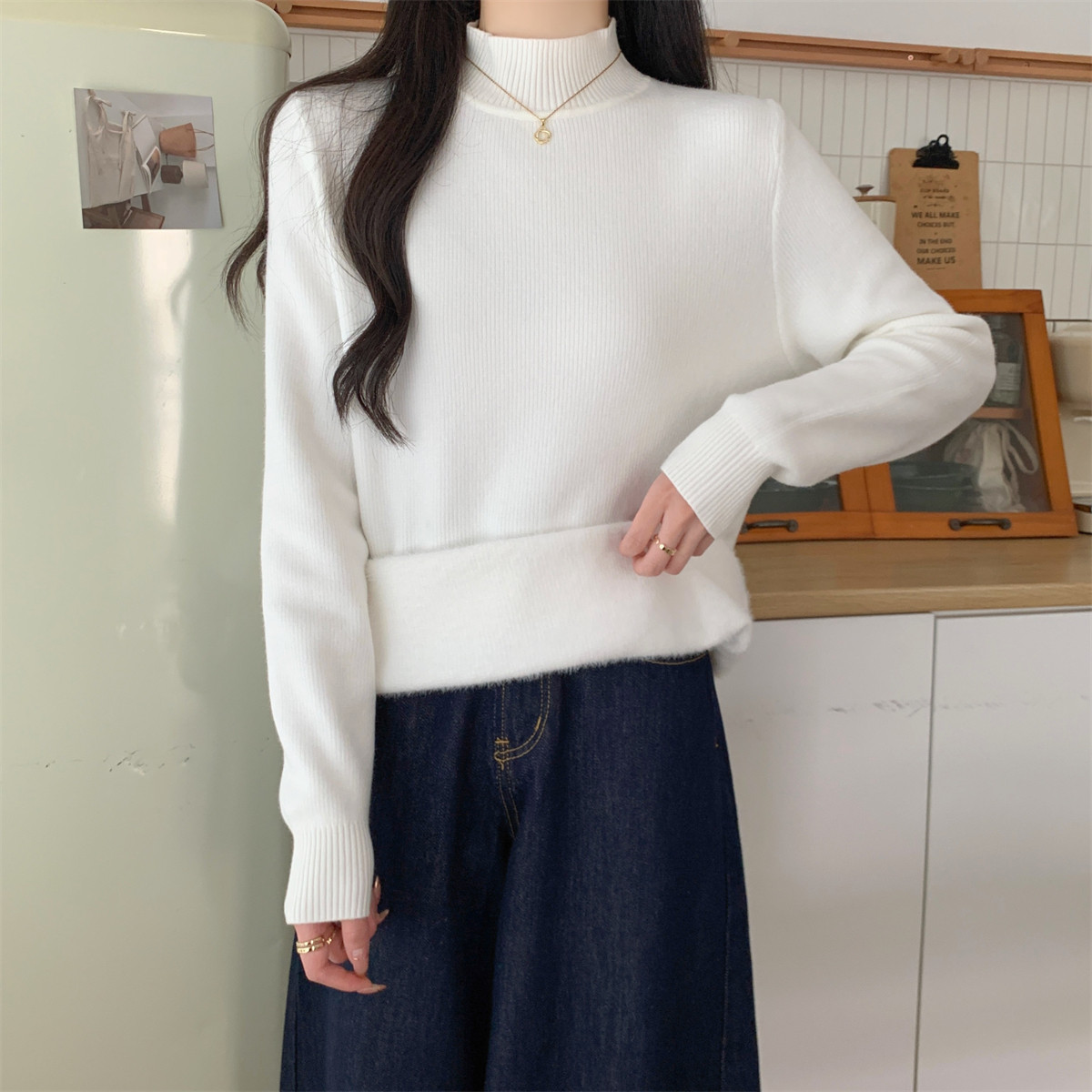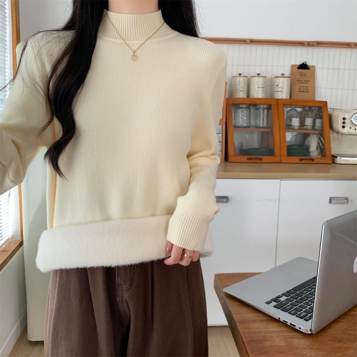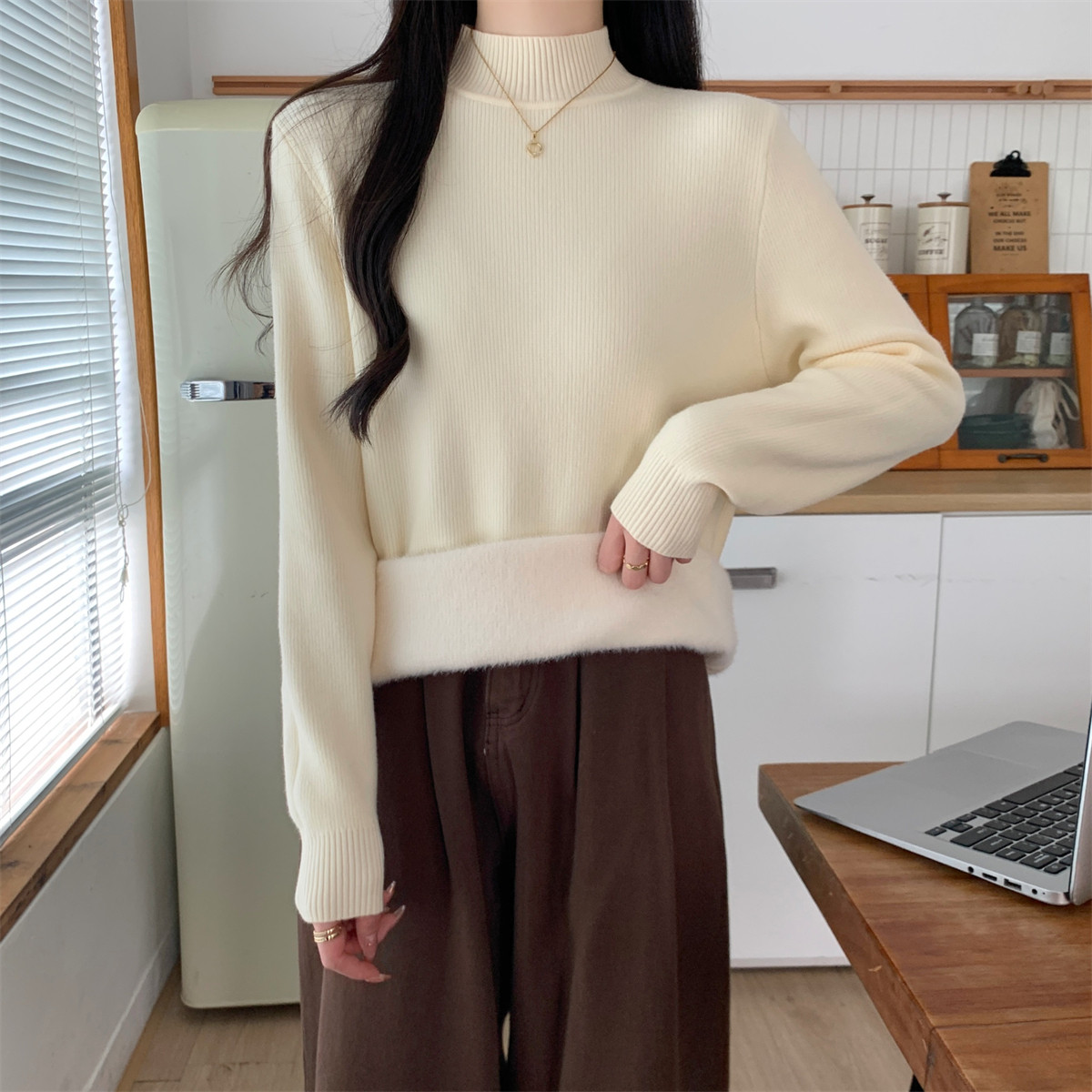 Suseyiku Autumn and Winter Korean Style Warm and Thickeneded Loose-Fitting One-Piece Velvet Half-Turtleneck Andy Velvet Knitwear for Women