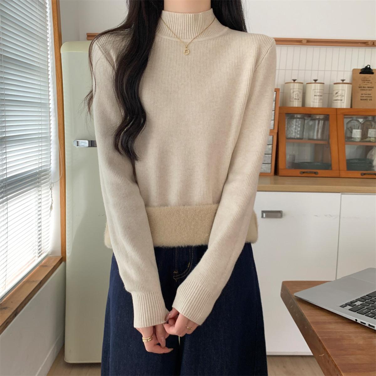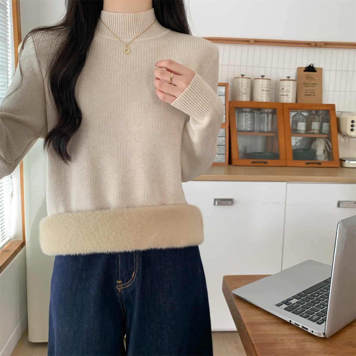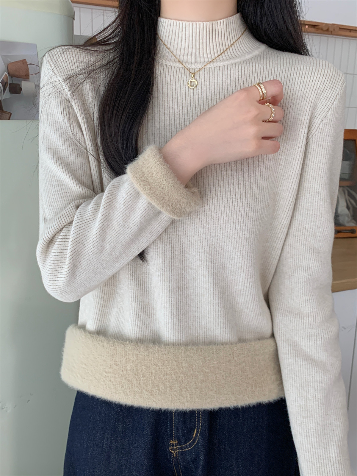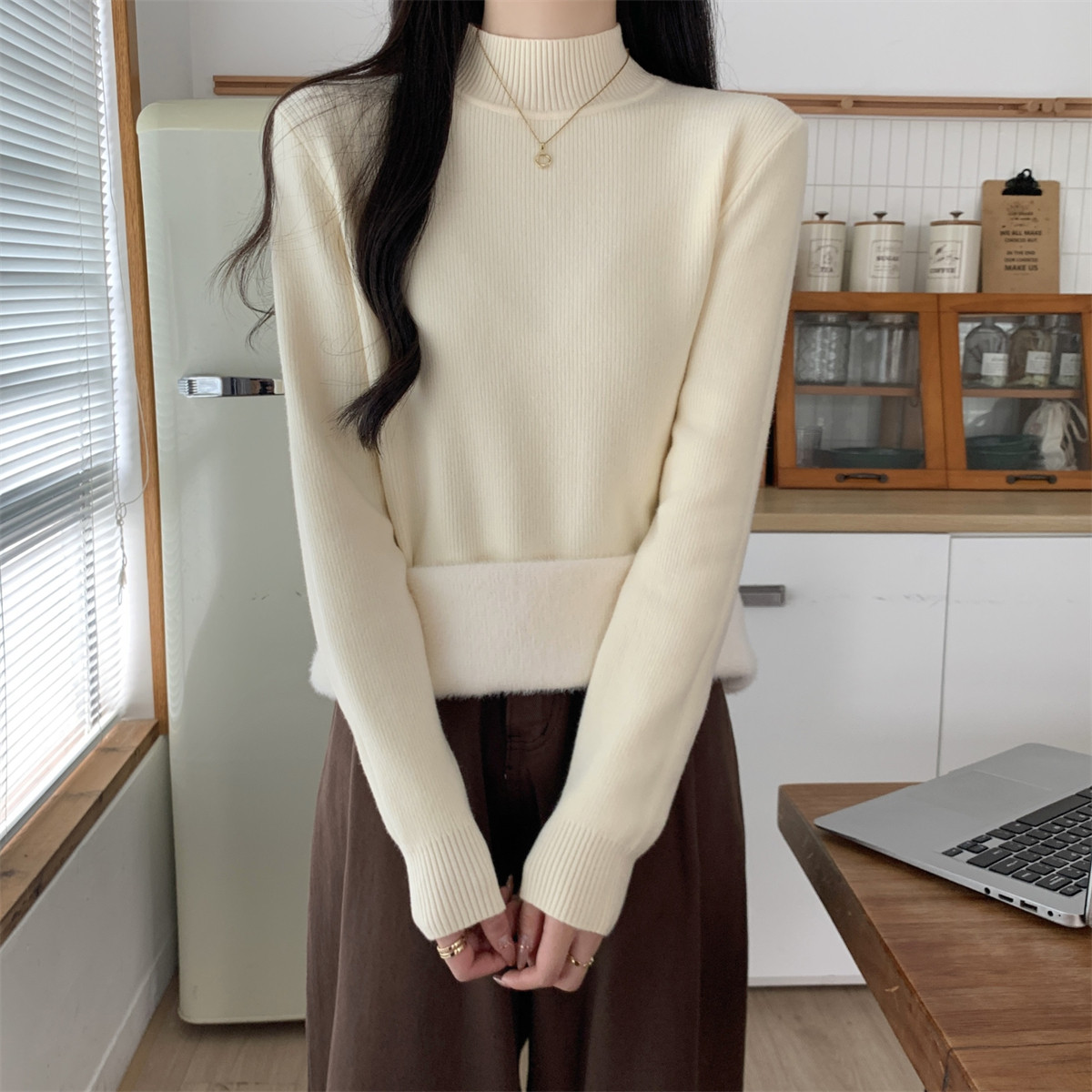 Suseyiku Autumn and Winter Korean Style Warm and Thickeneded Loose-Fitting One-Piece Velvet Half-Turtleneck Andy Velvet Knitwear for Women