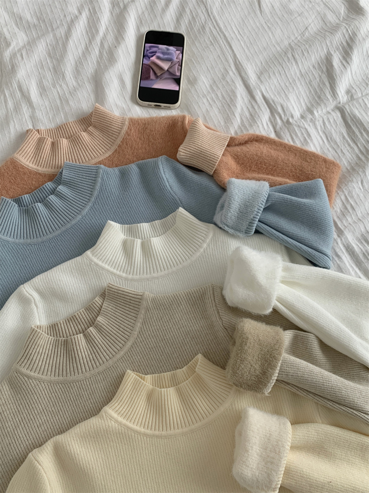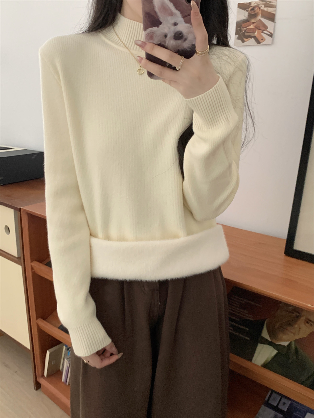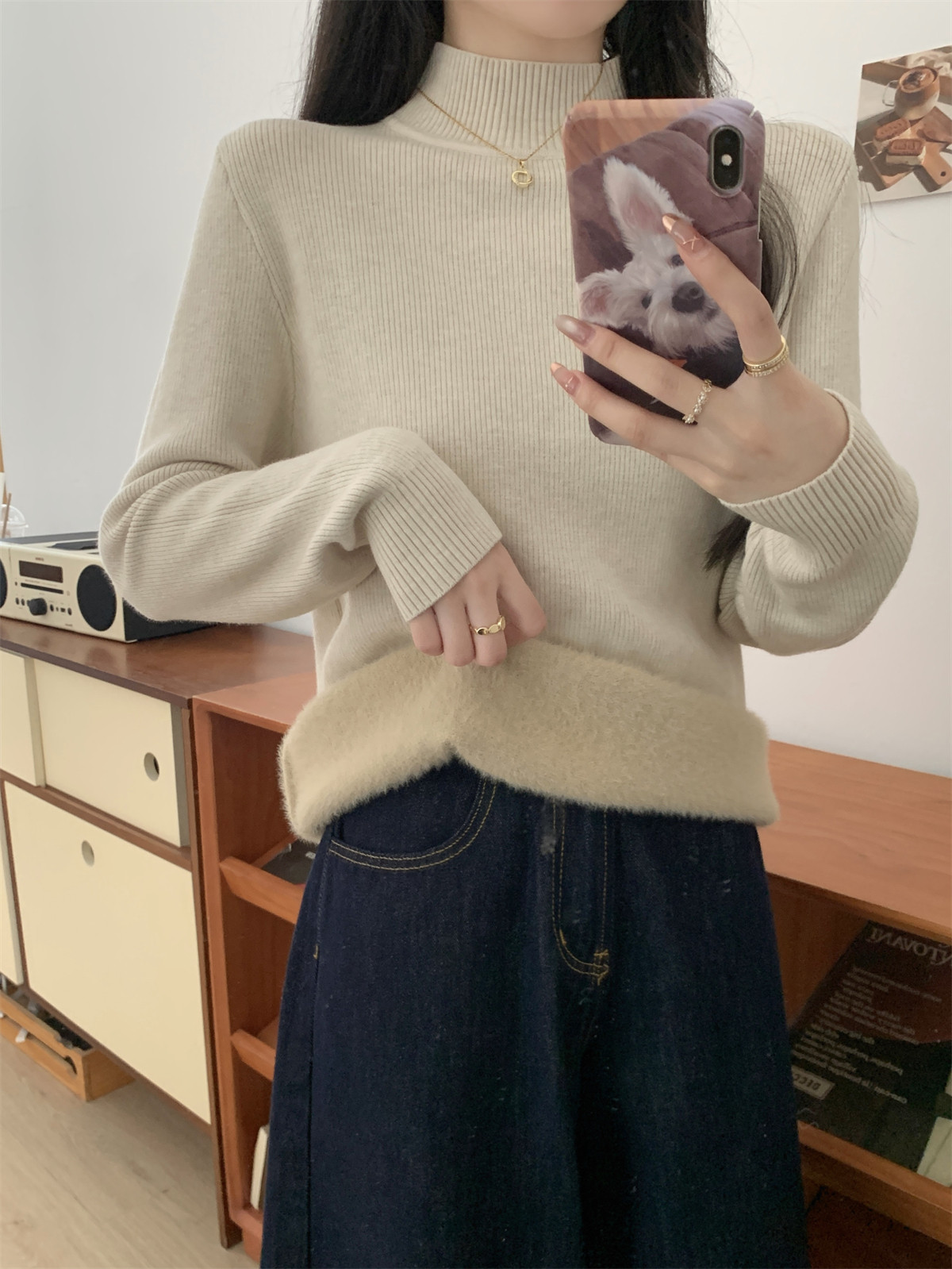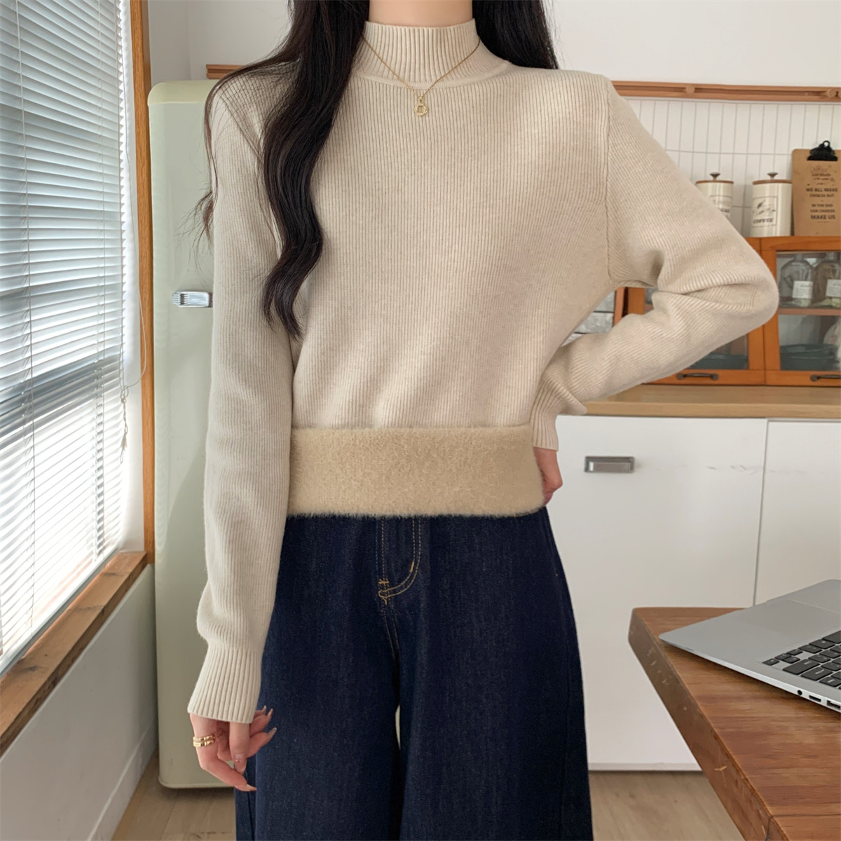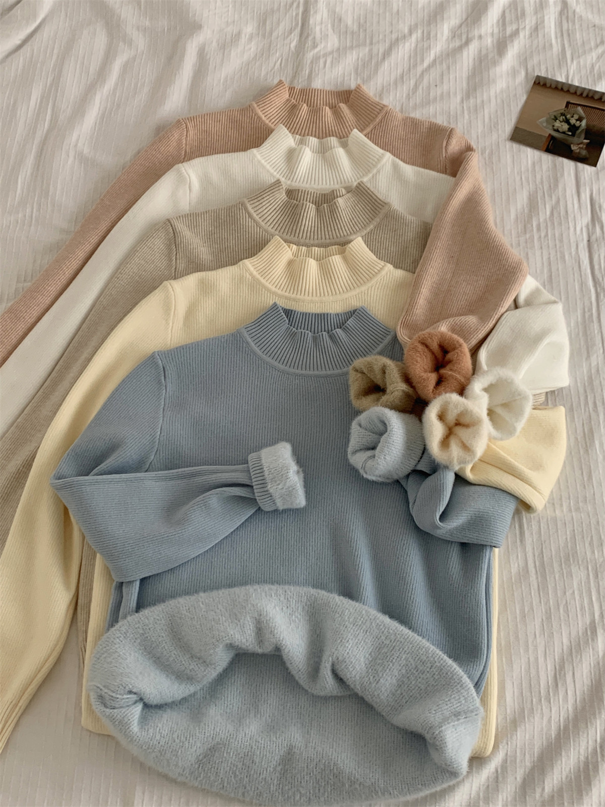 Suseyiku Autumn and Winter Korean Style Warm and Thickeneded Loose-Fitting One-Piece Velvet Half-Turtleneck Andy Velvet Knitwear for Women