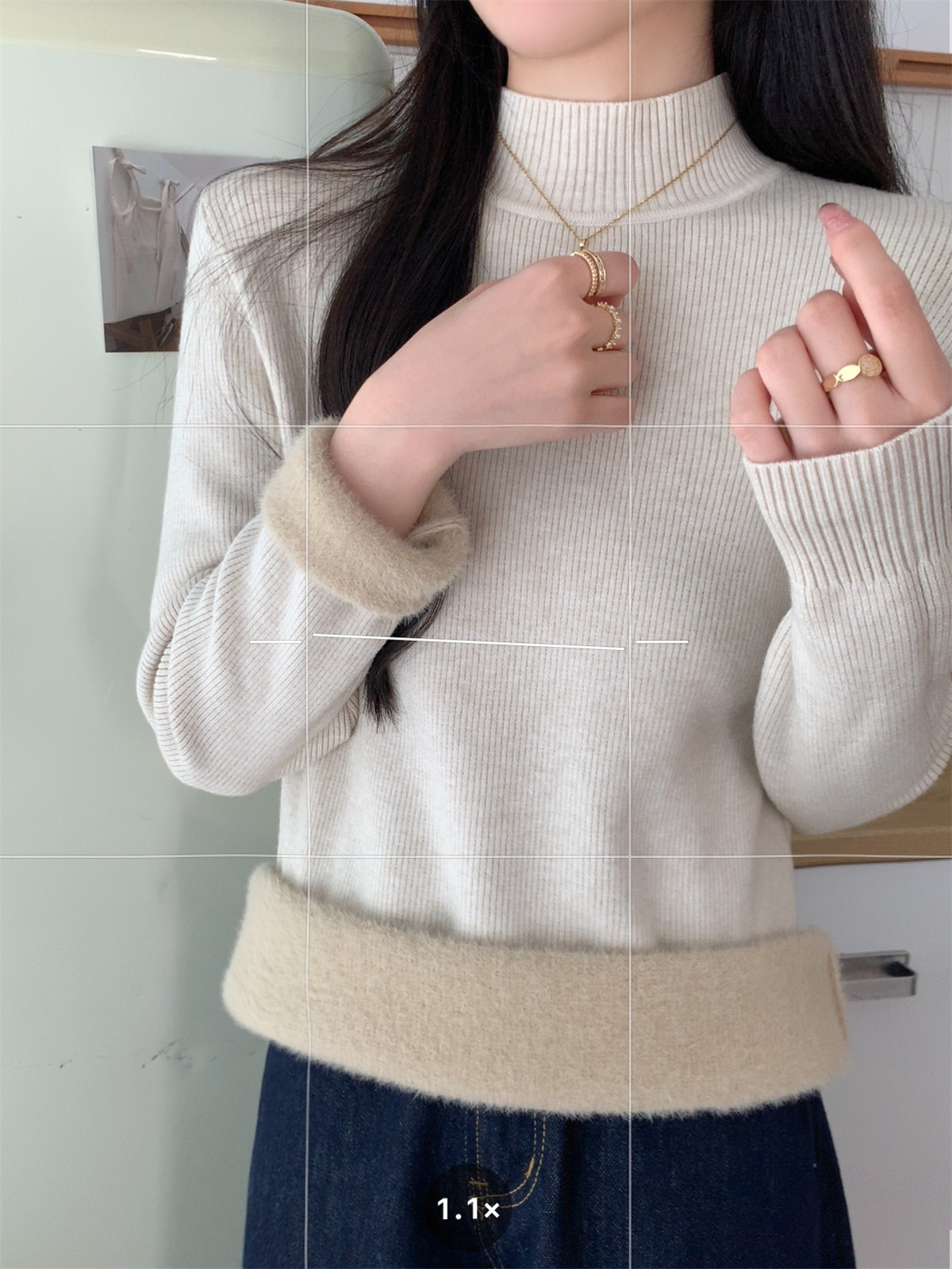 Collar Design Half-High Crew Neck