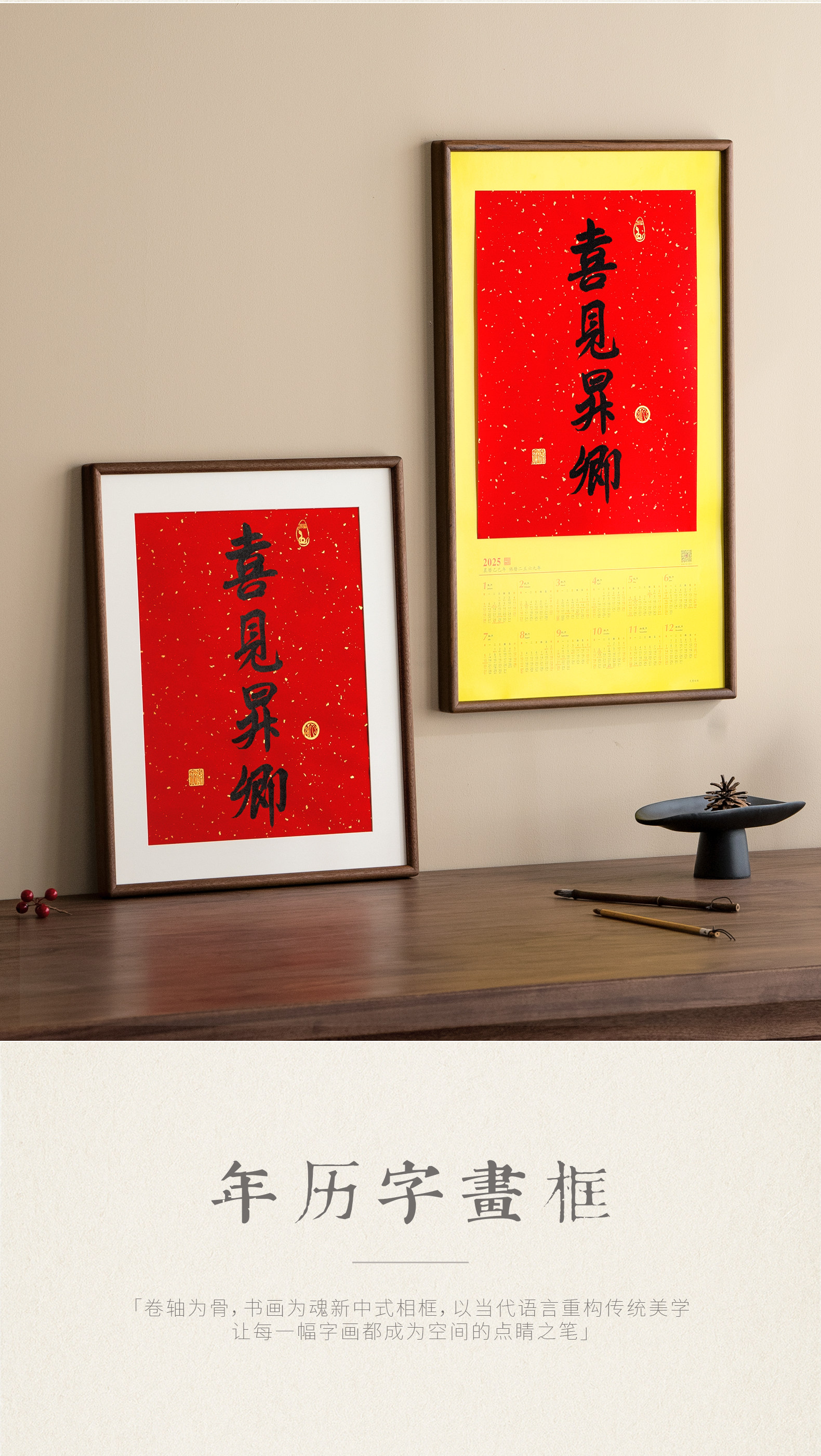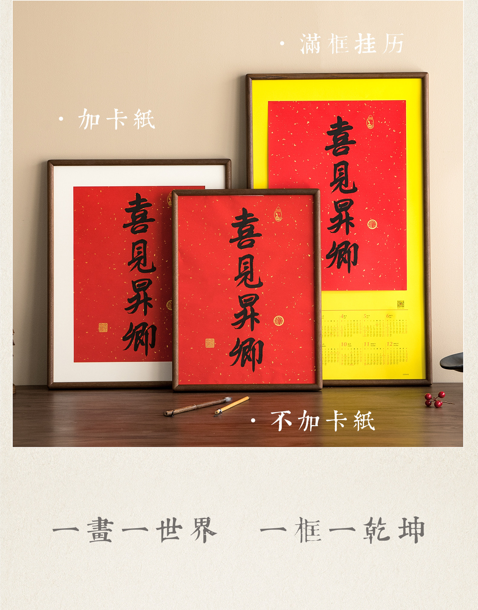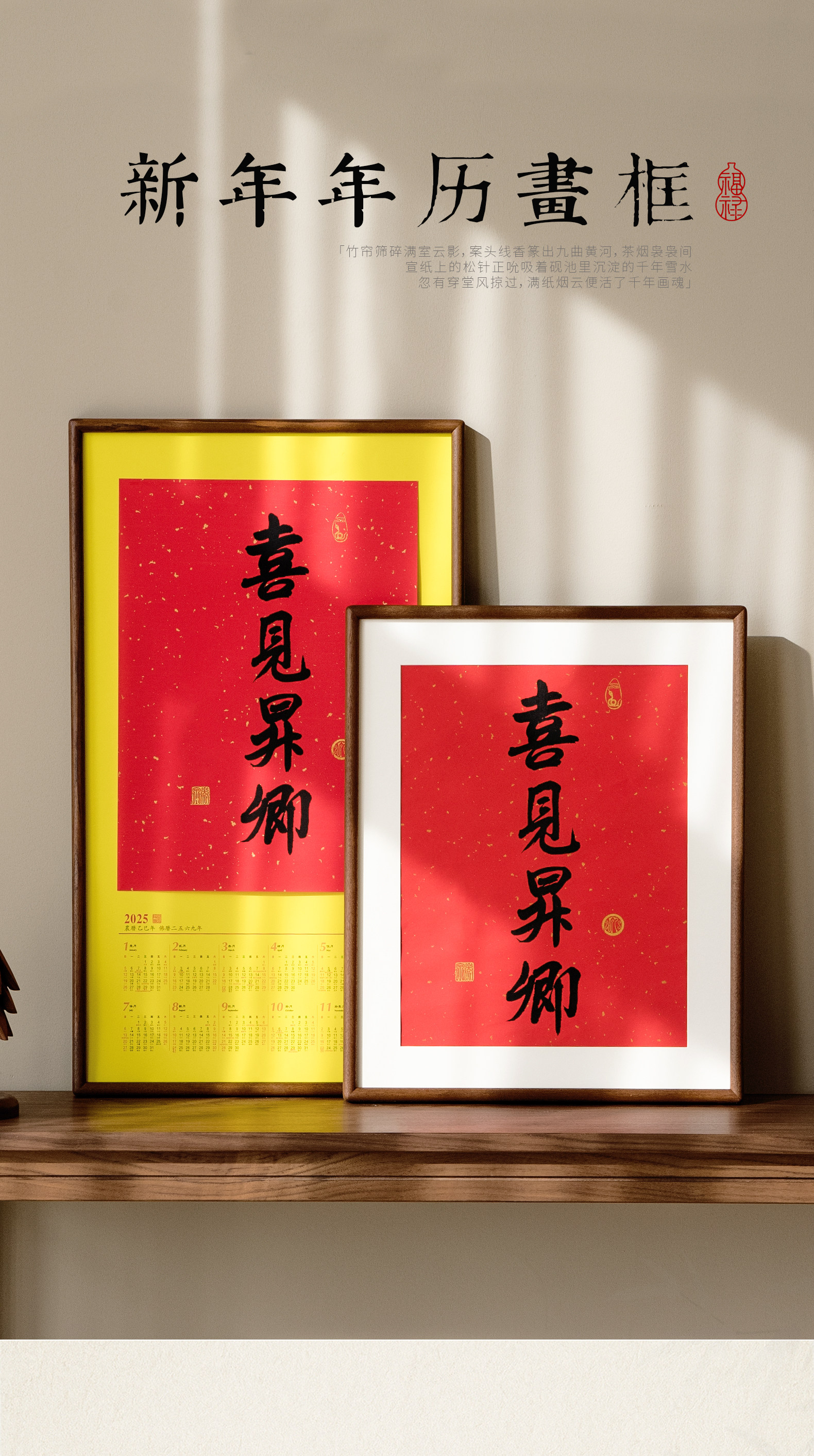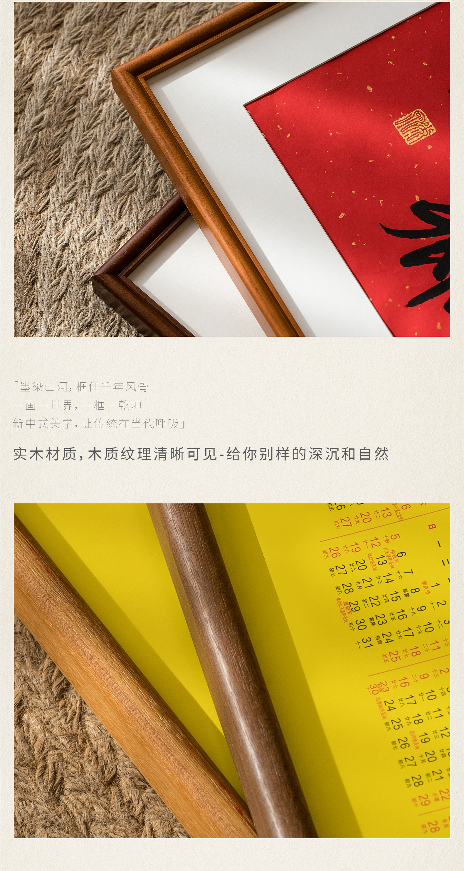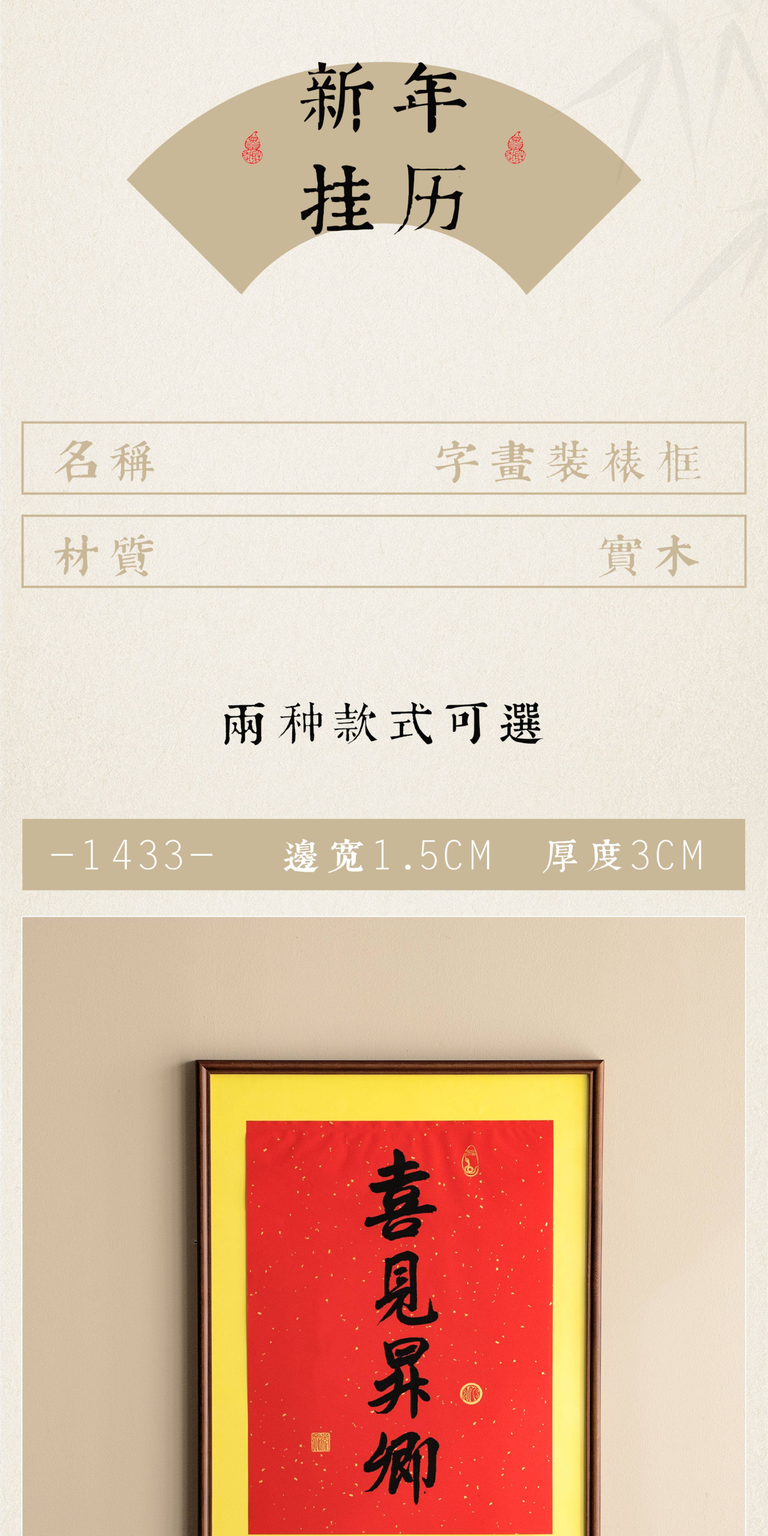 Juntu Tianze calendar photo frame solid wood 20-inch Lingyin New Year calendar 32X44 frame mounted wall hanging 40X70cm