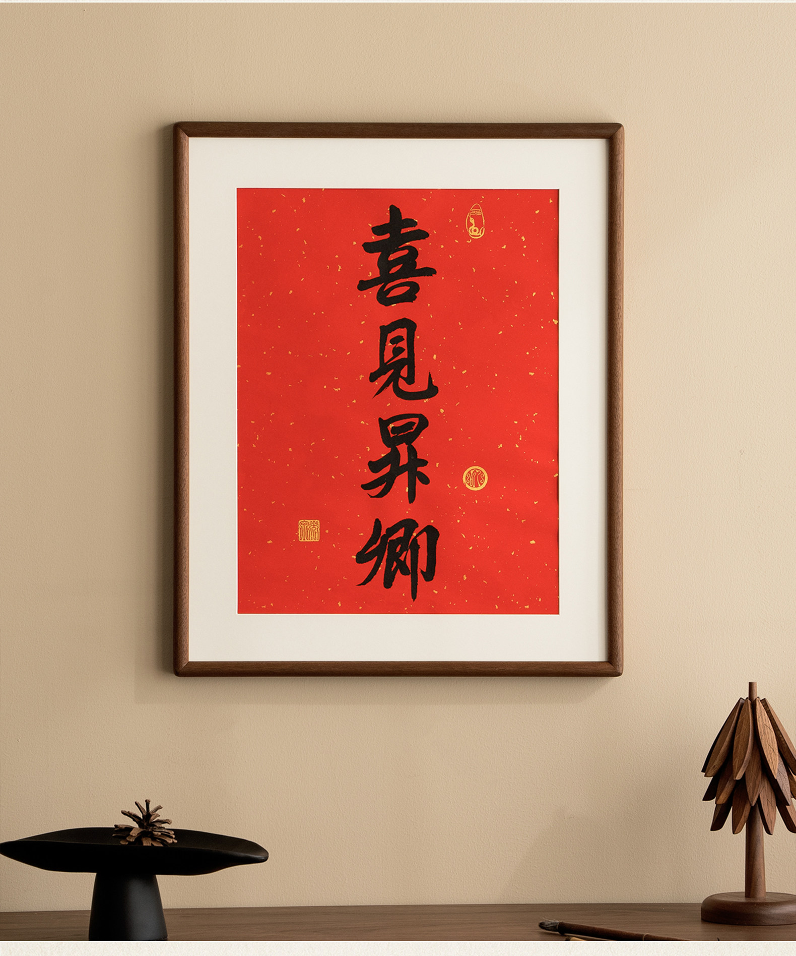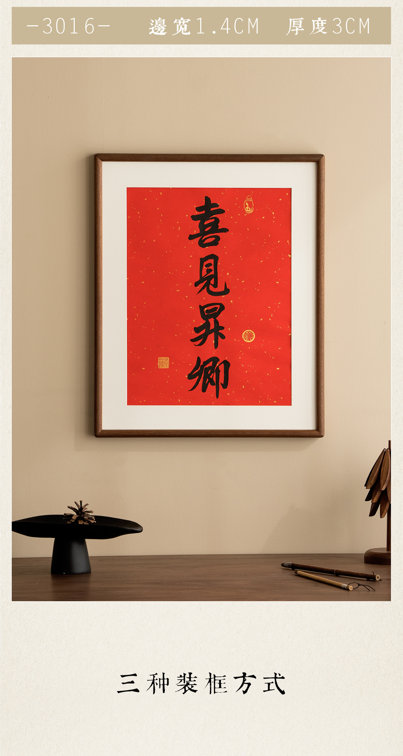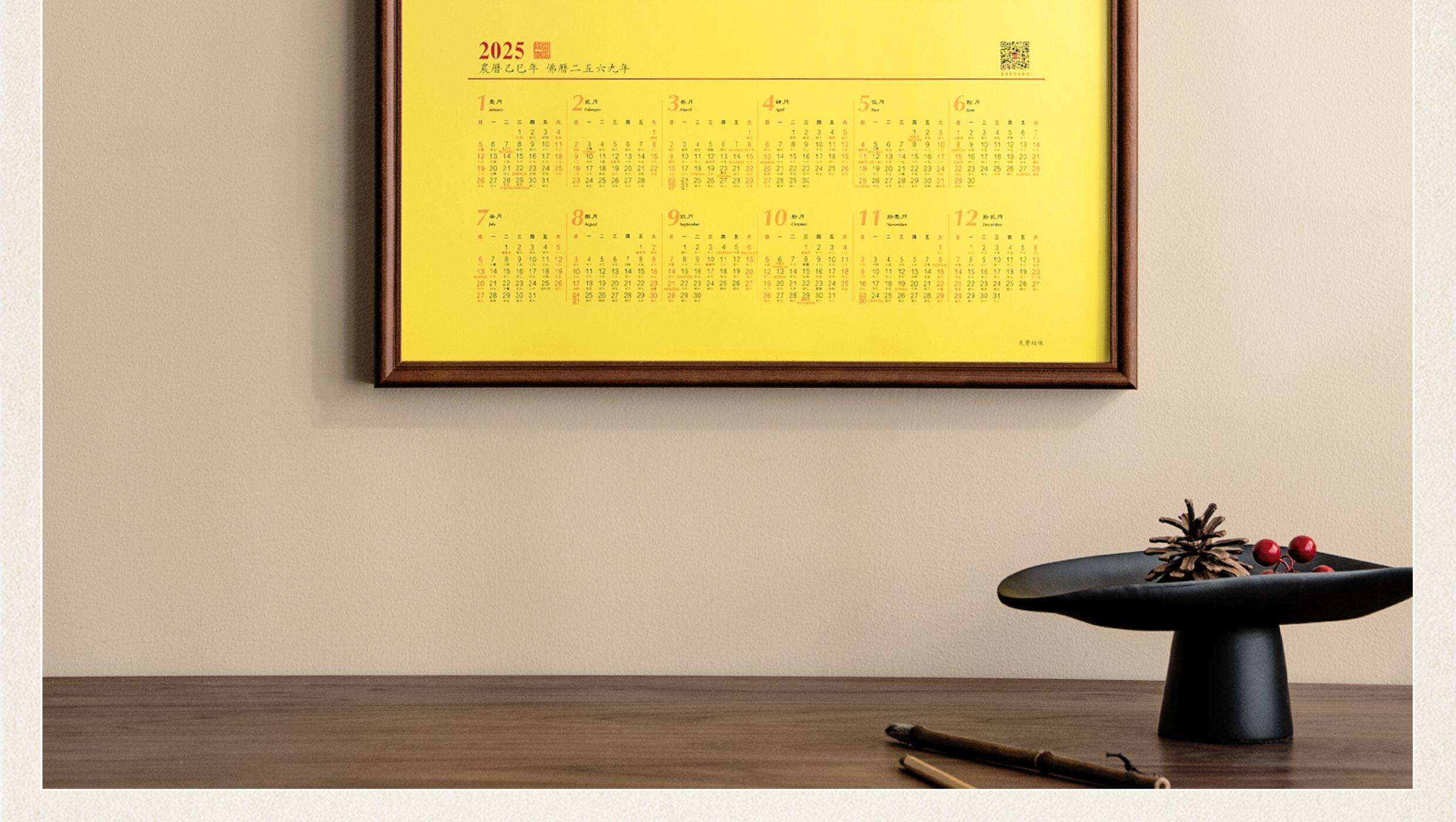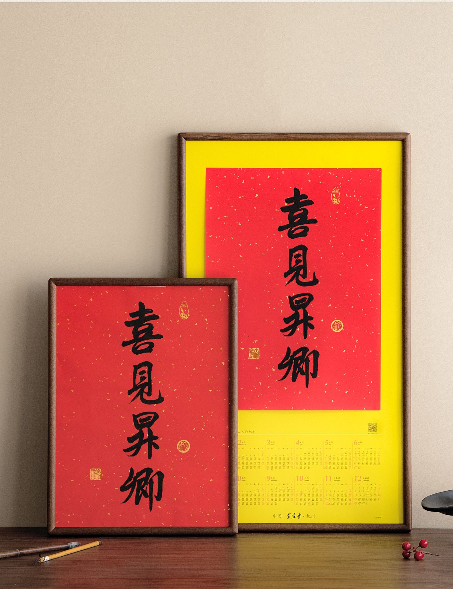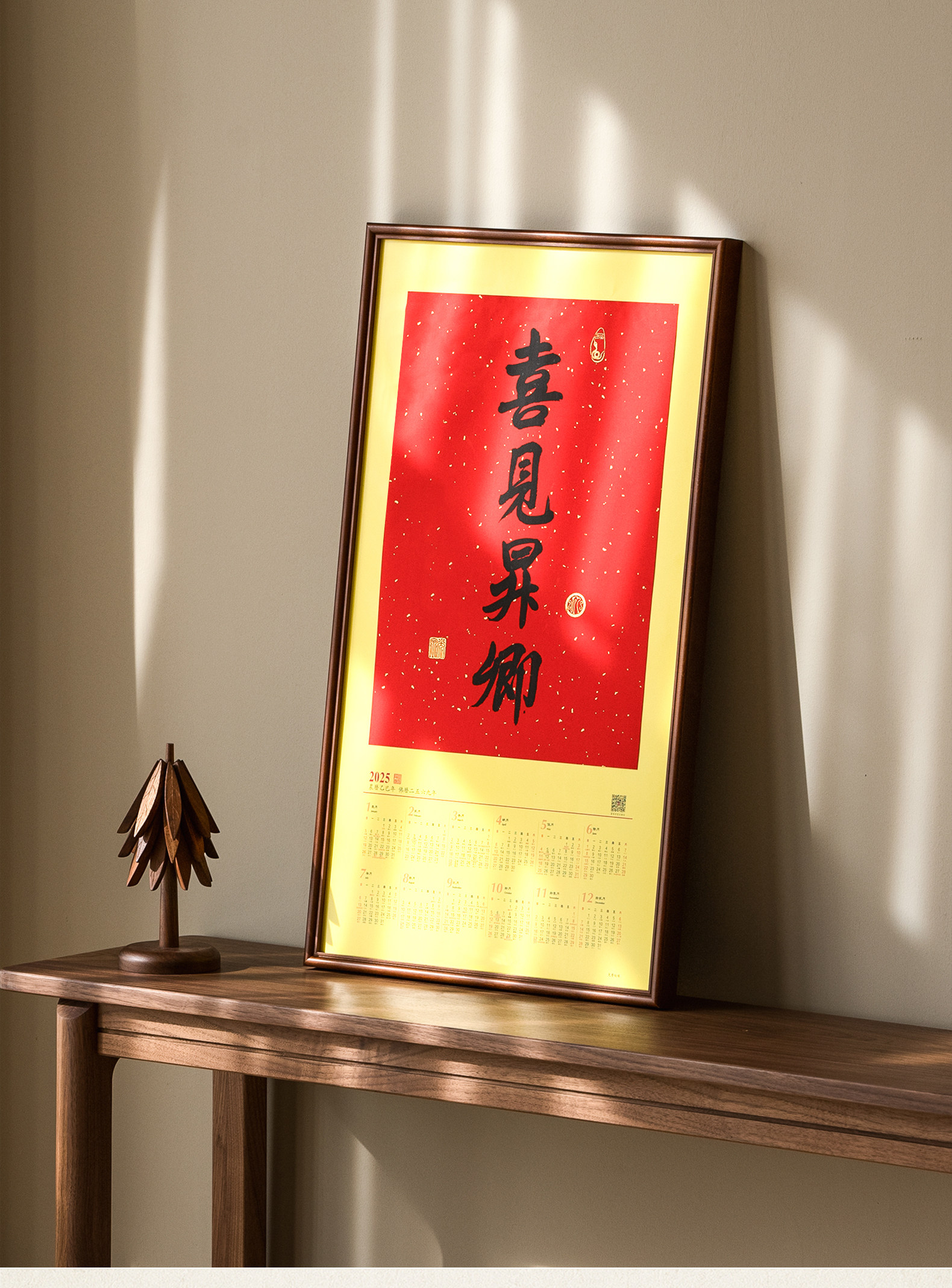 Juntu Tianze calendar photo frame solid wood 20-inch Lingyin New Year calendar 32X44 frame mounted wall hanging 40X70cm