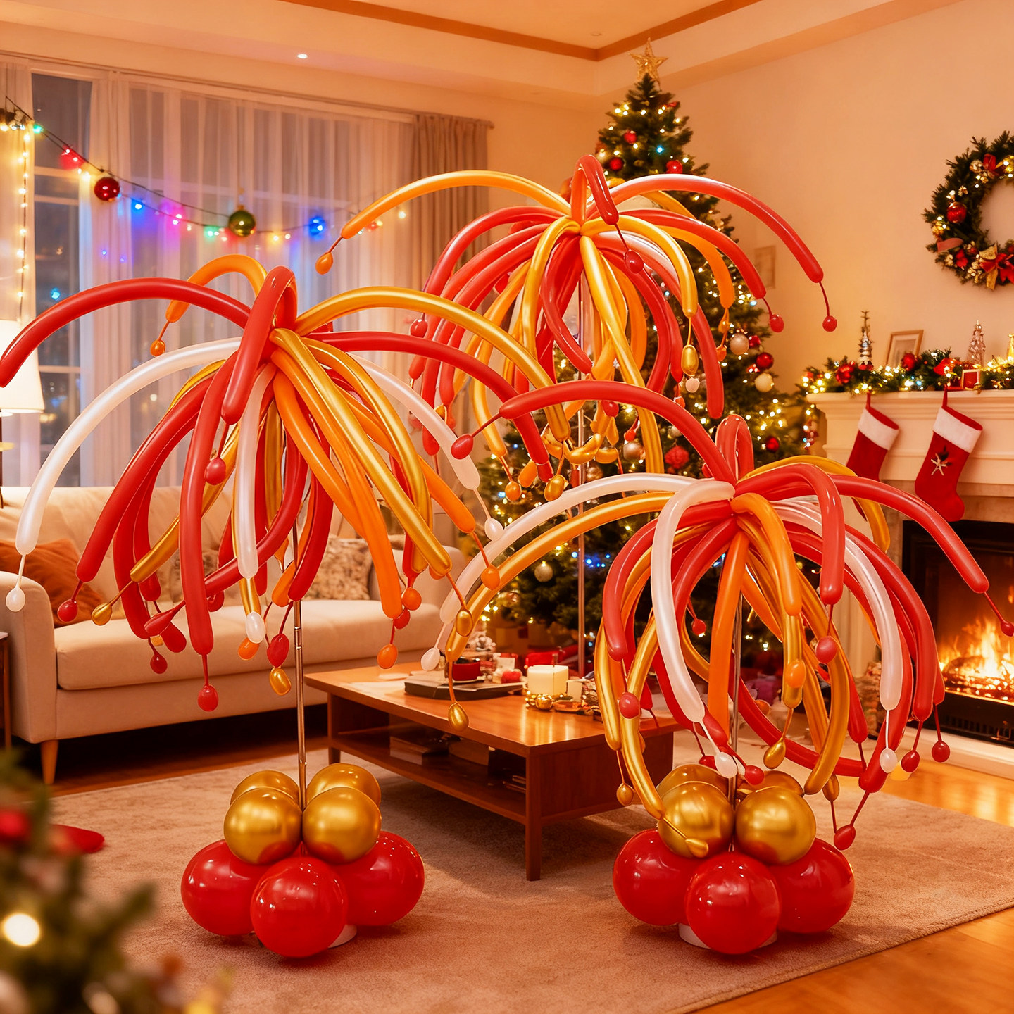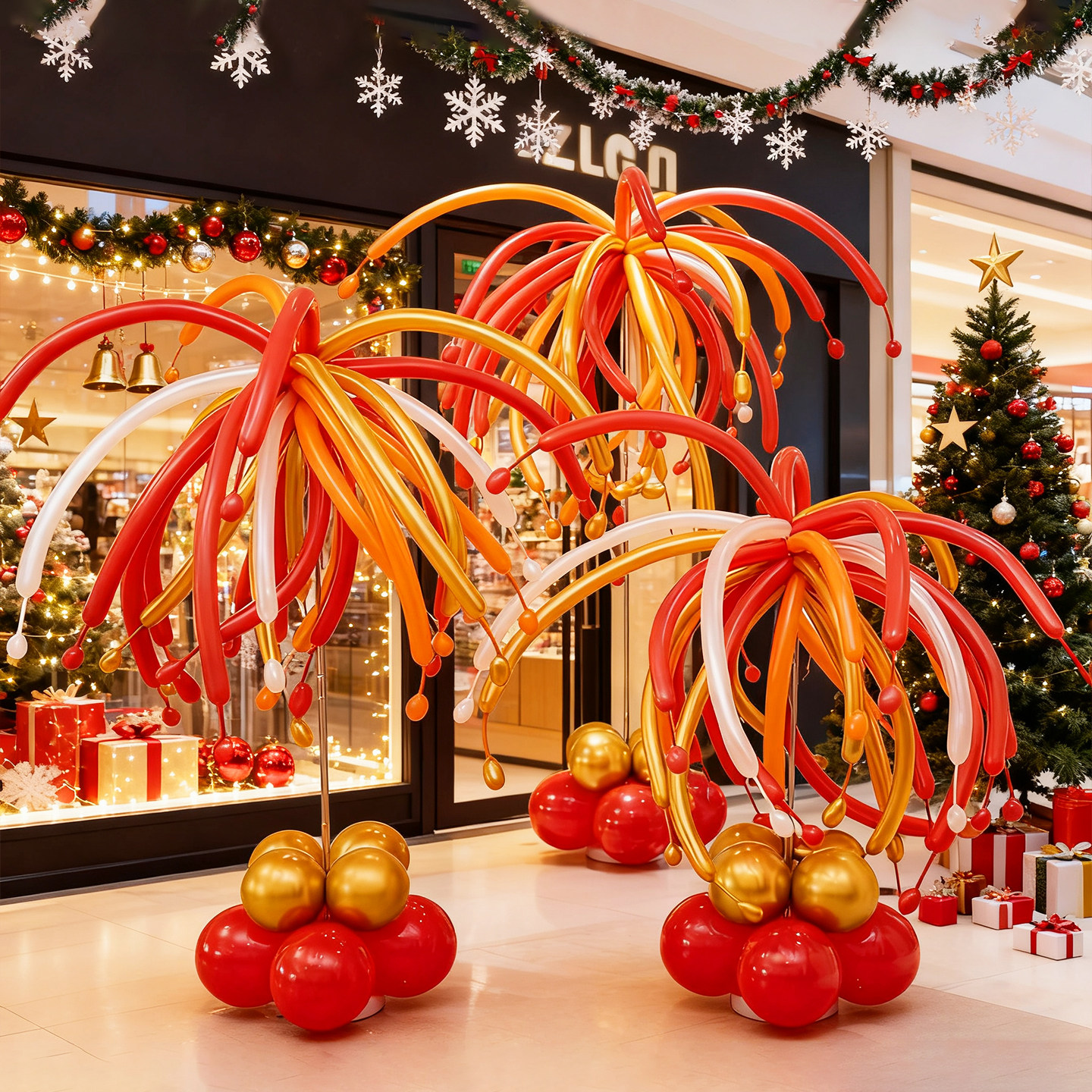 New Year's Christmas New Year's Day fireworks long balloon atmosphere decoration column shopping mall shop school opening layout