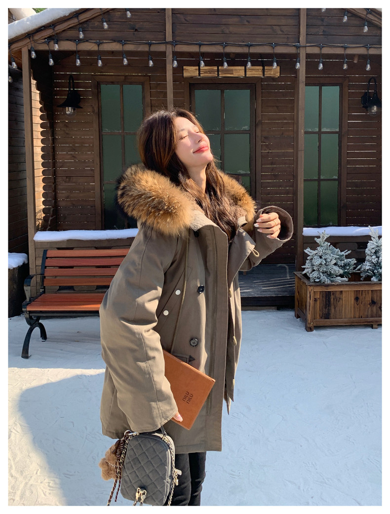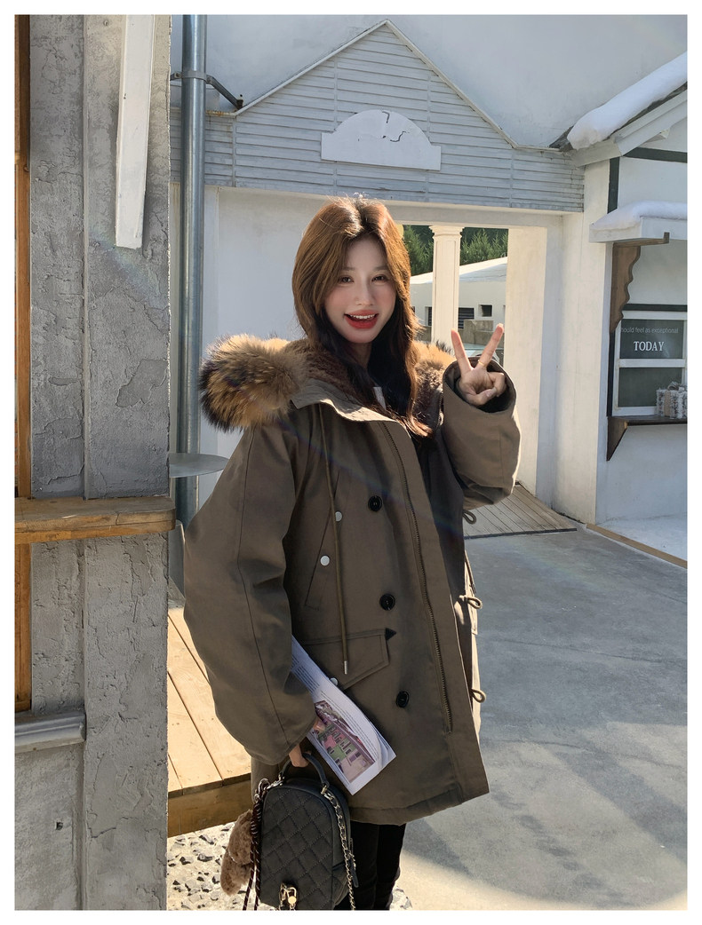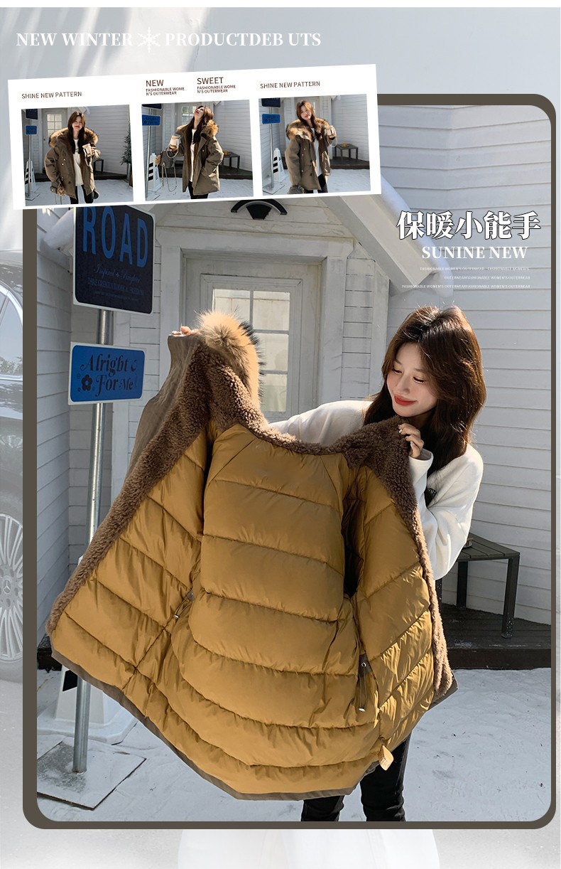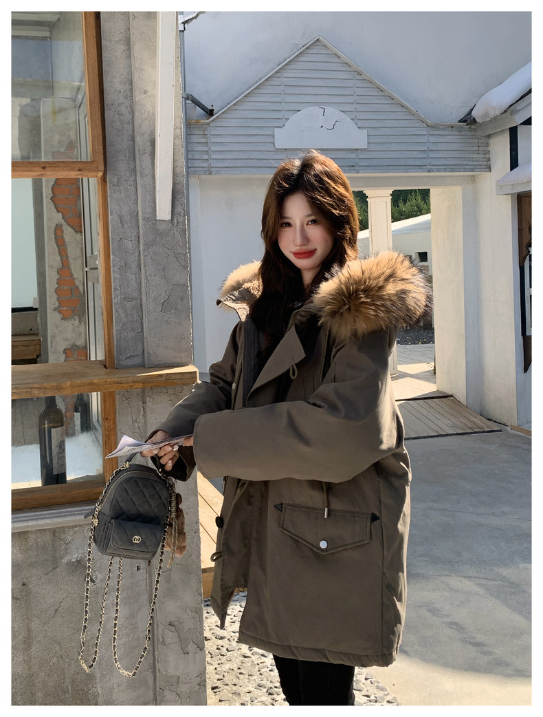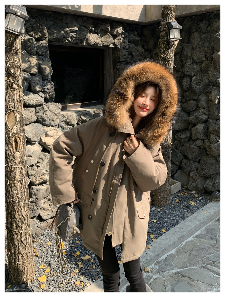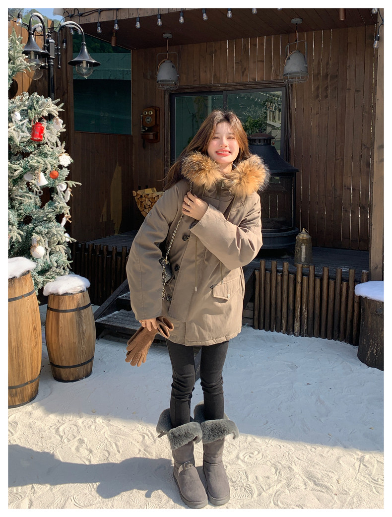 Workwear Style Parka down Jacket for Women 2025 Winter New Korean Version Thickened Warm Large Fur Collar Atmospheric Coat