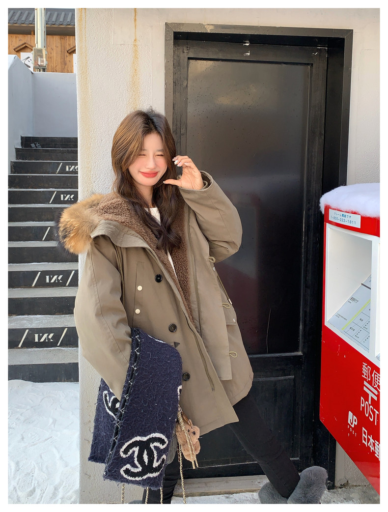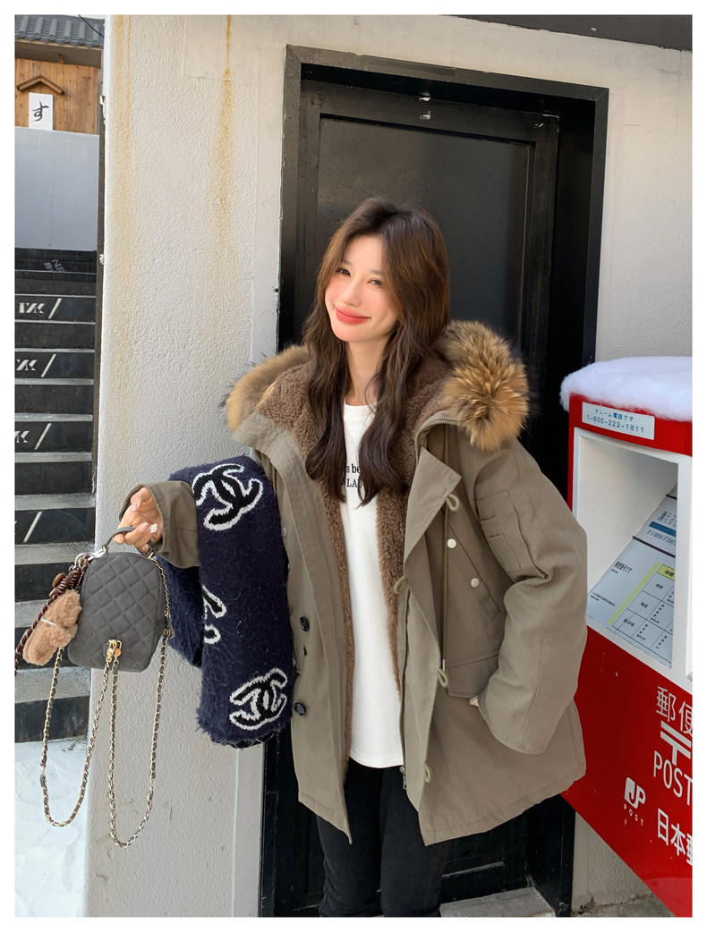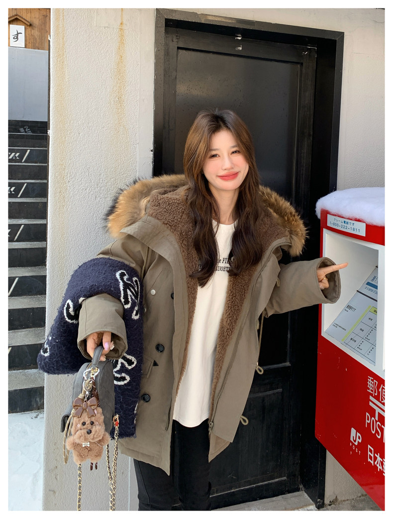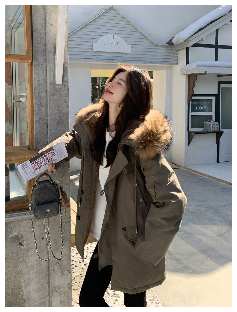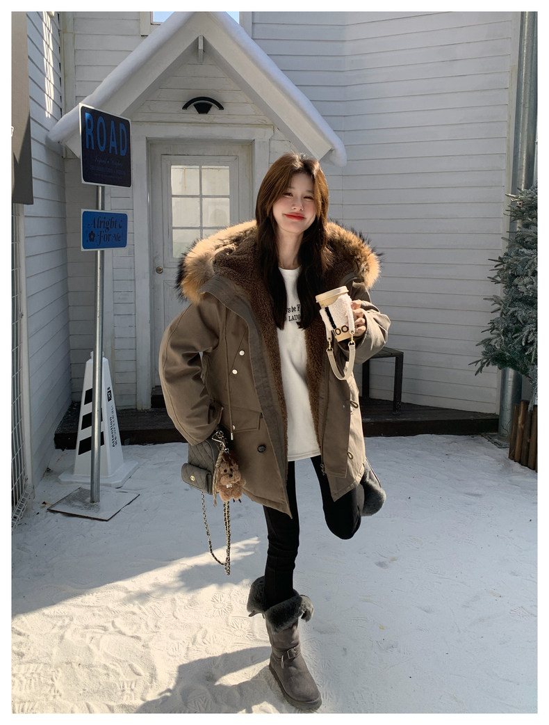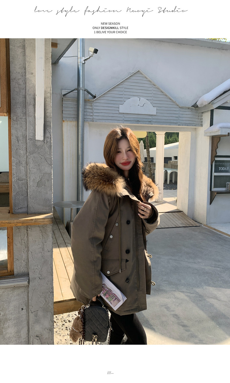 Workwear Style Parka down Jacket for Women 2025 Winter New Korean Version Thickened Warm Large Fur Collar Atmospheric Coat