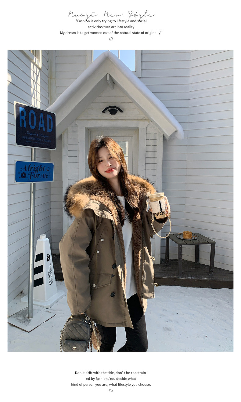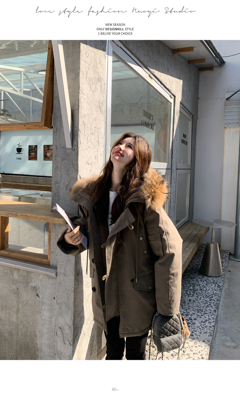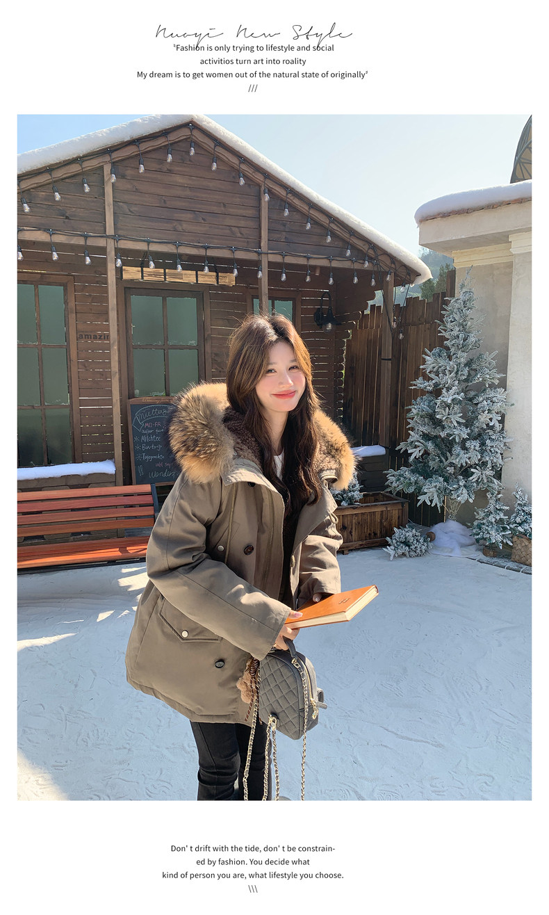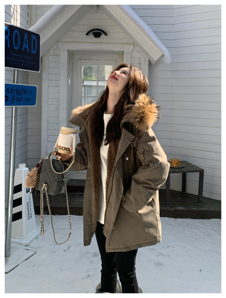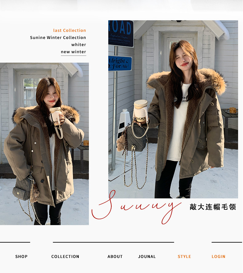 Workwear Style Parka down Jacket for Women 2025 Winter New Korean Version Thickened Warm Large Fur Collar Atmospheric Coat