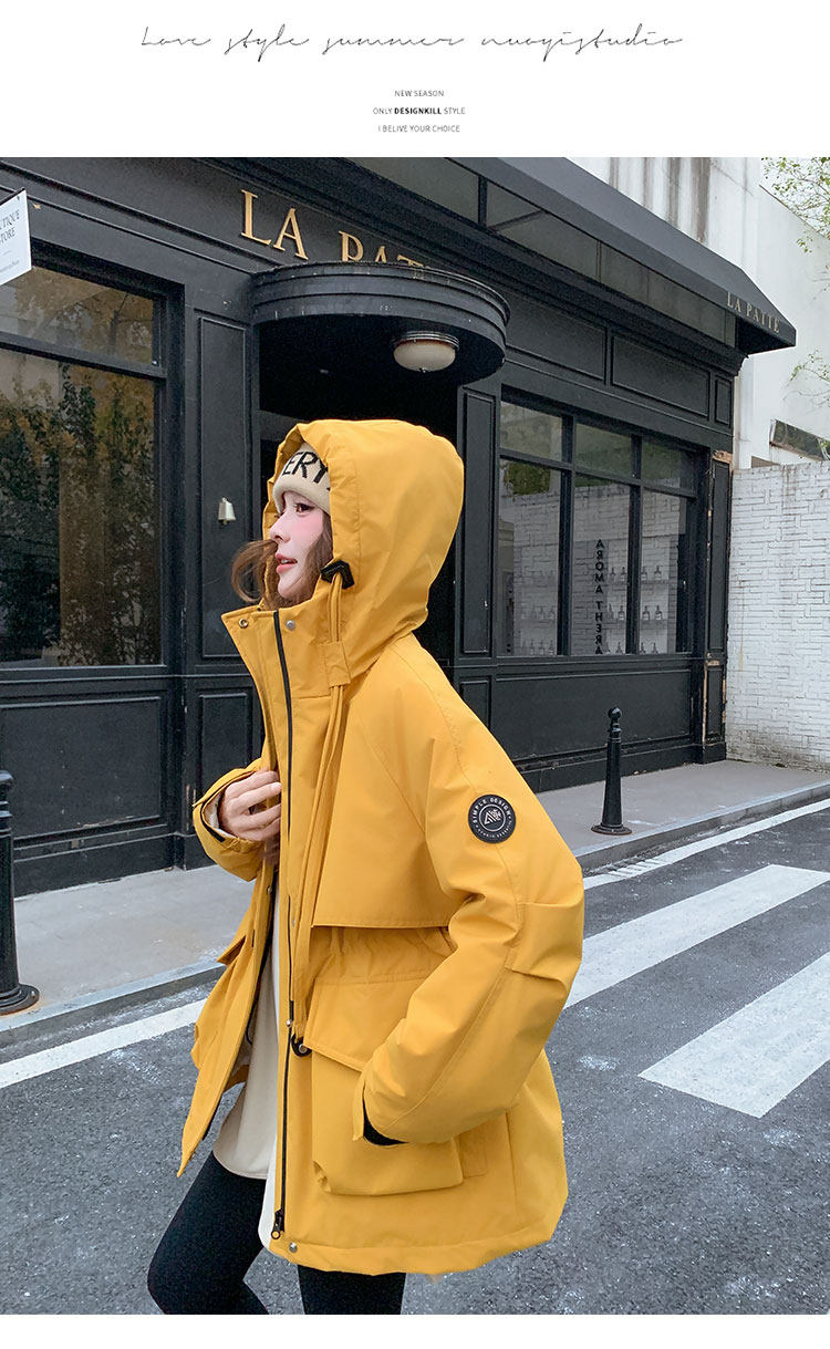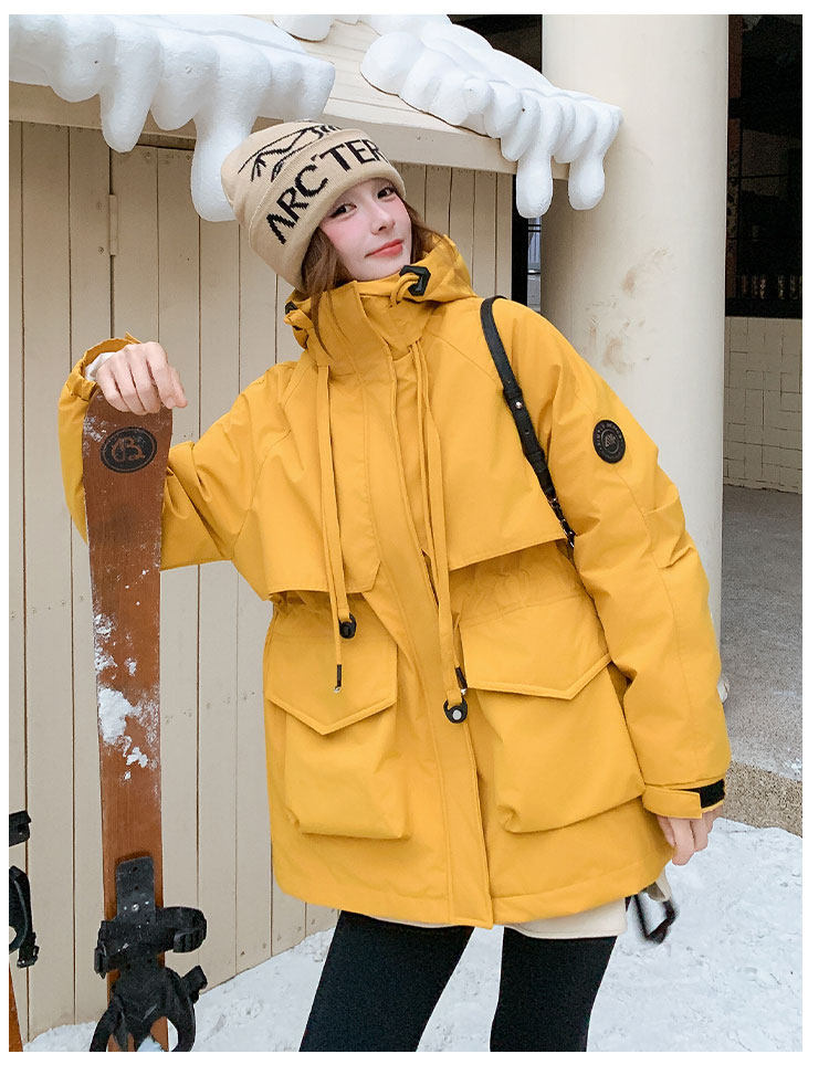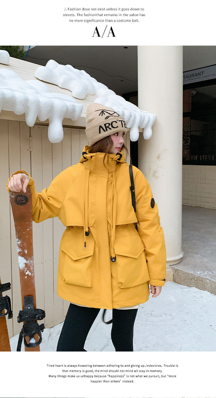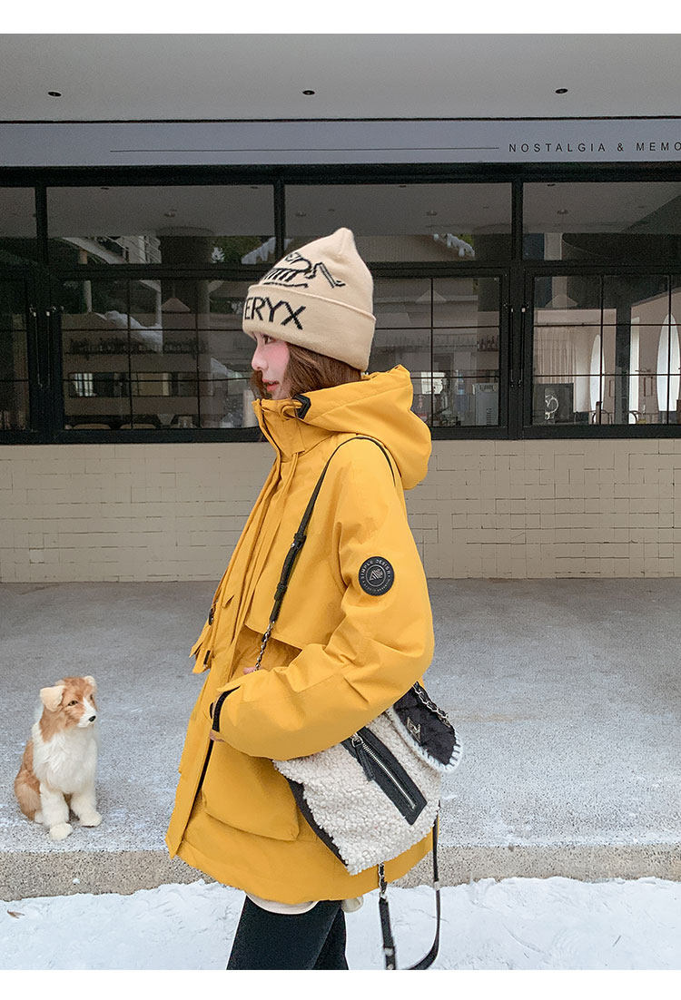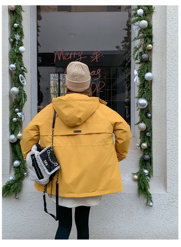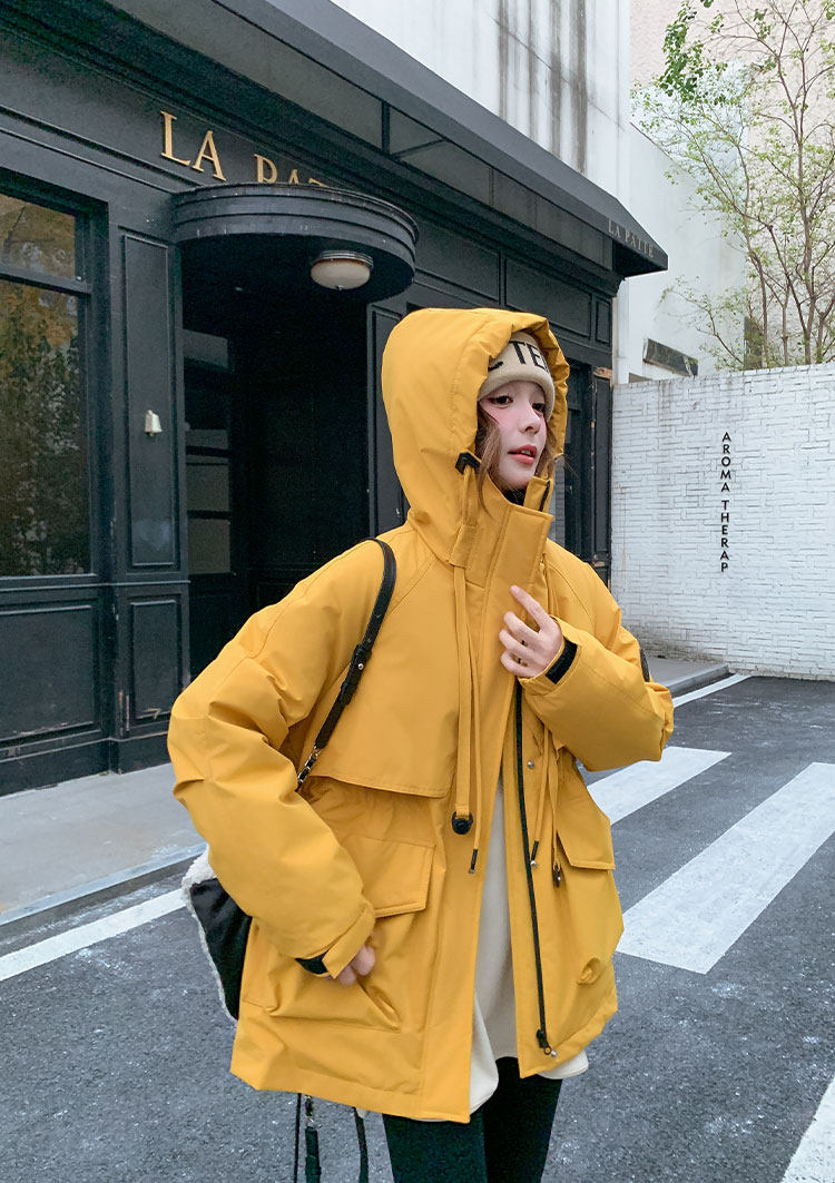 Yellow Workwear Style White Duck down Jacket for Women, Winter 2025 New Korean Design Hooded Warm Parka
