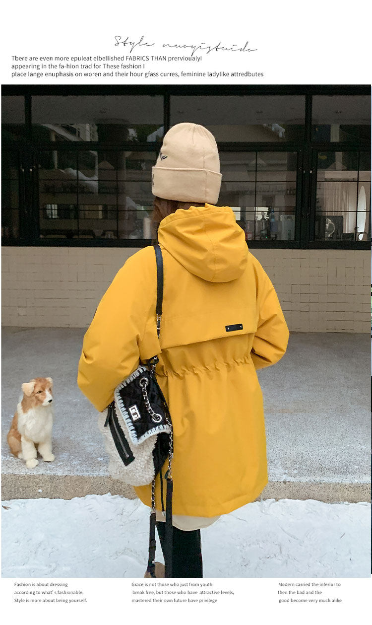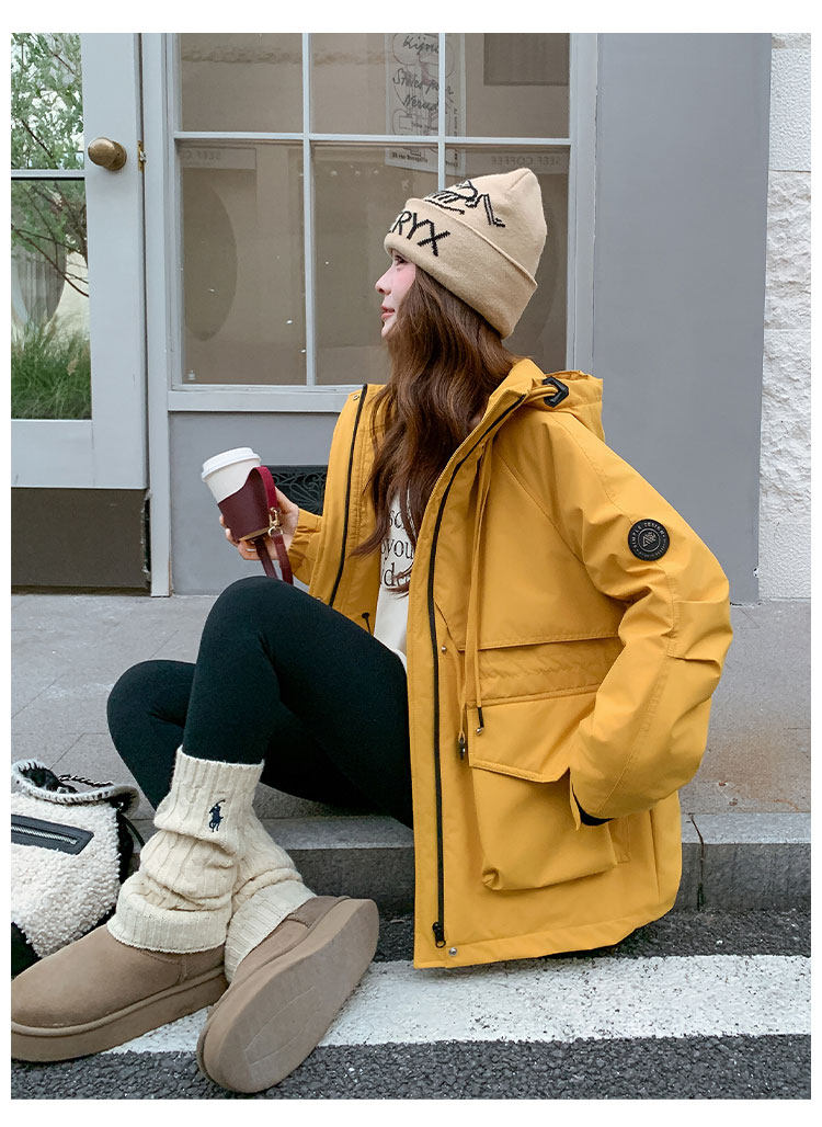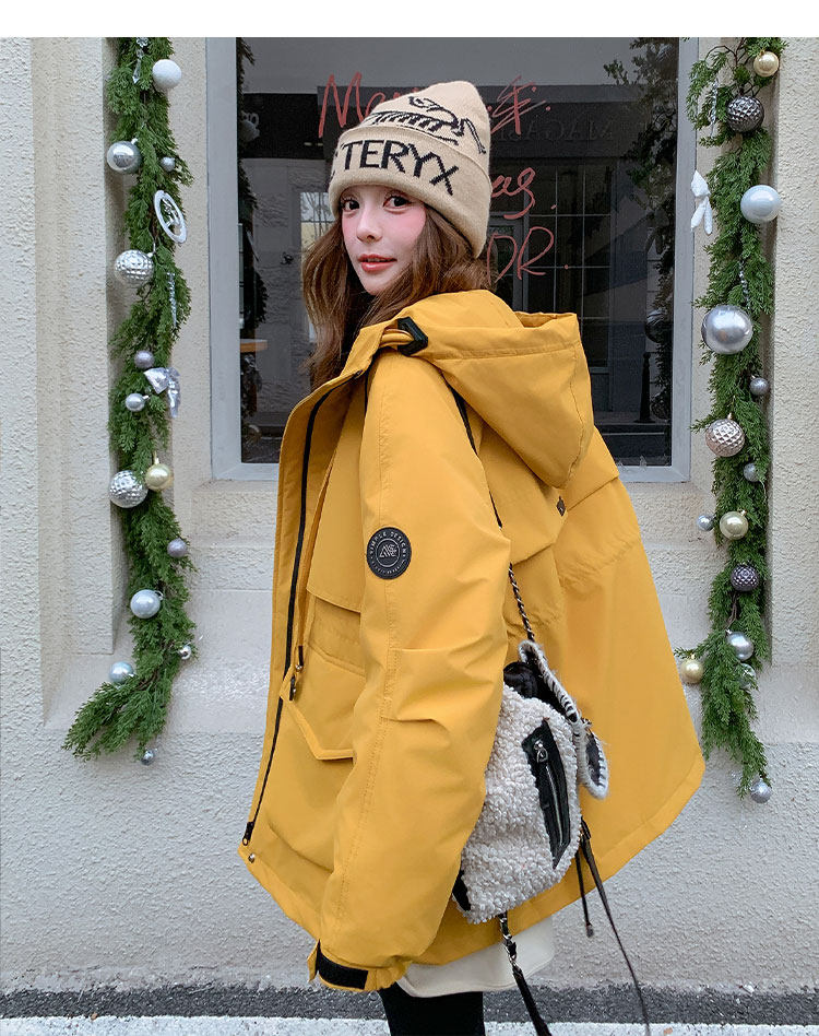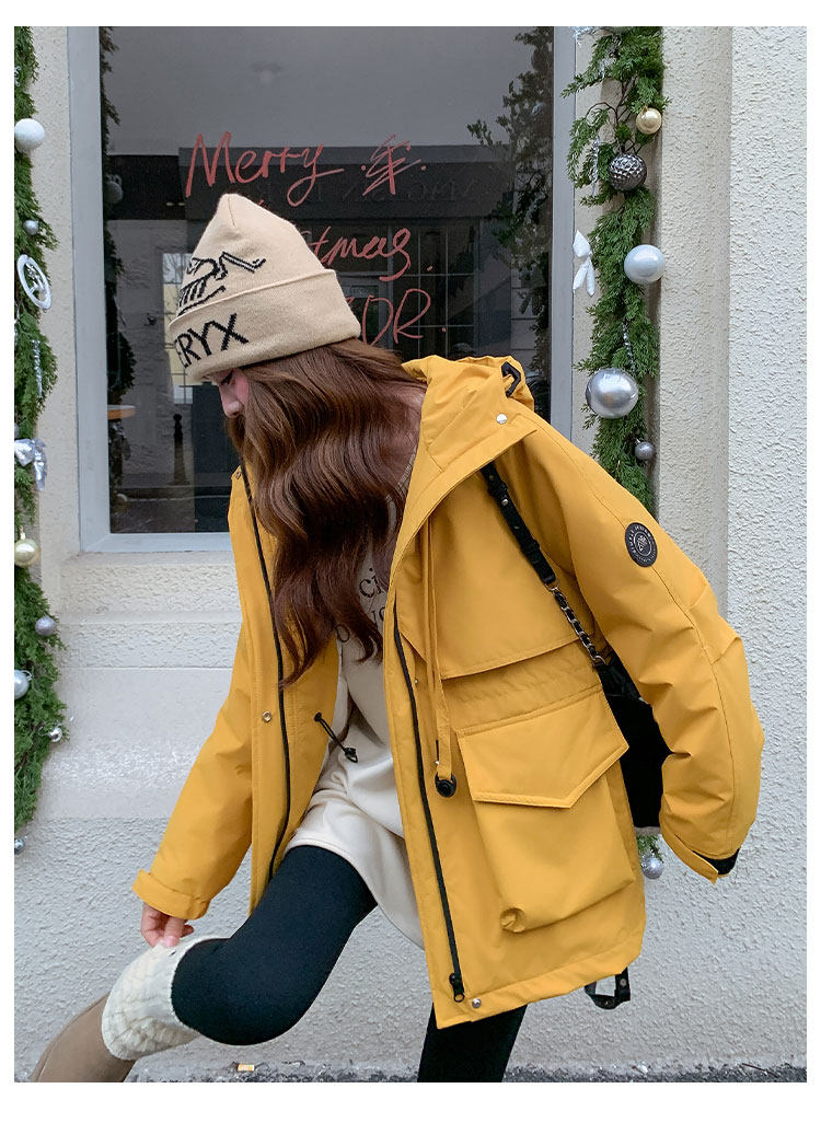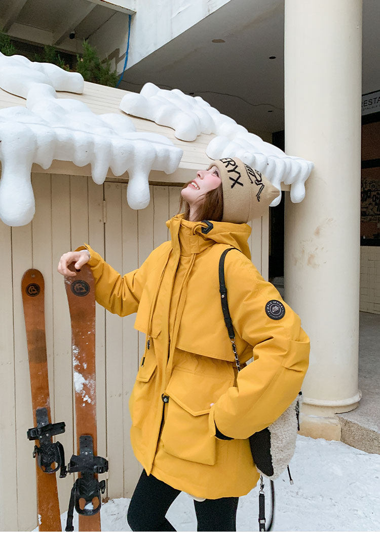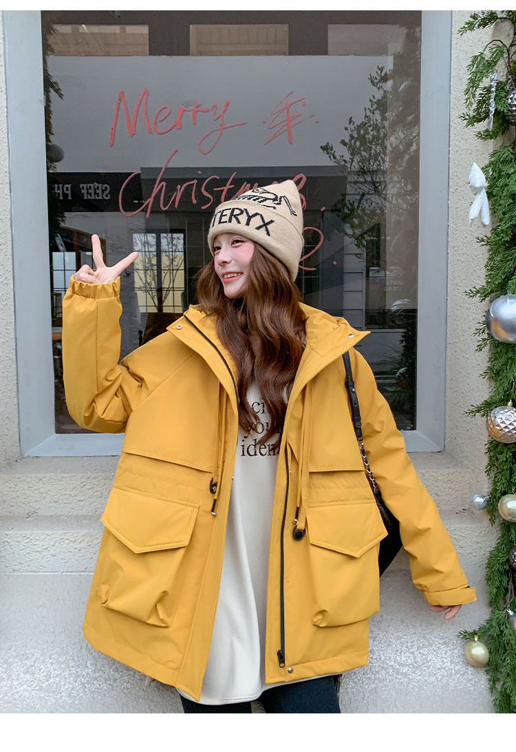 Yellow Workwear Style White Duck down Jacket for Women, Winter 2025 New Korean Design Hooded Warm Parka