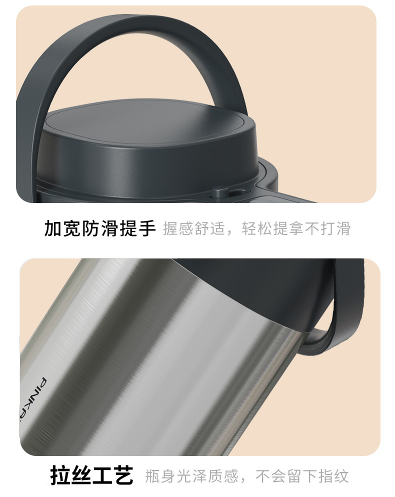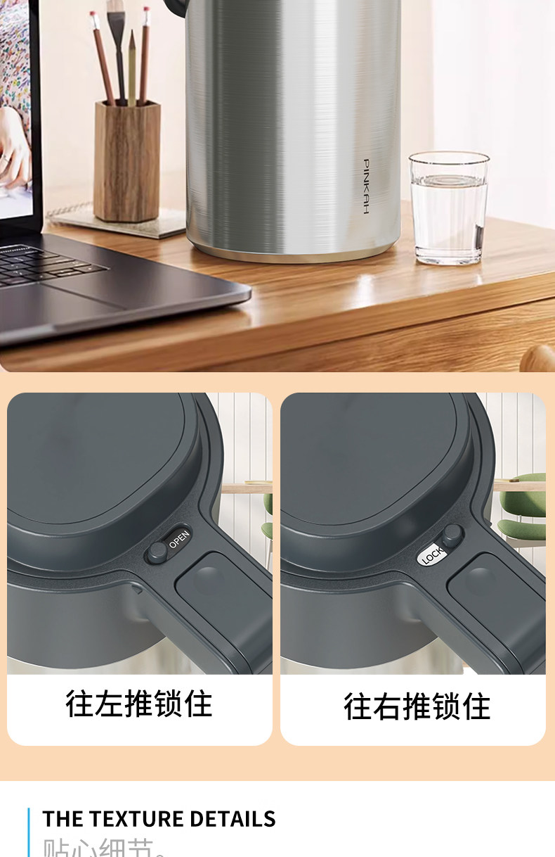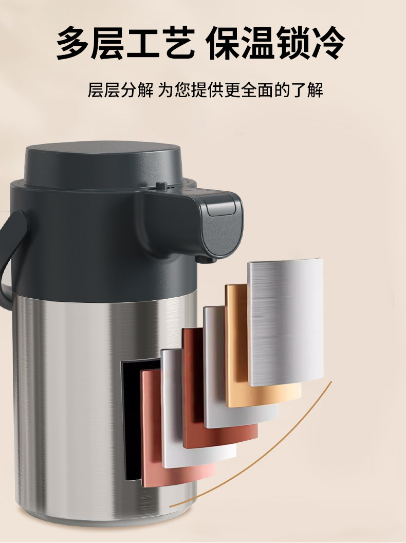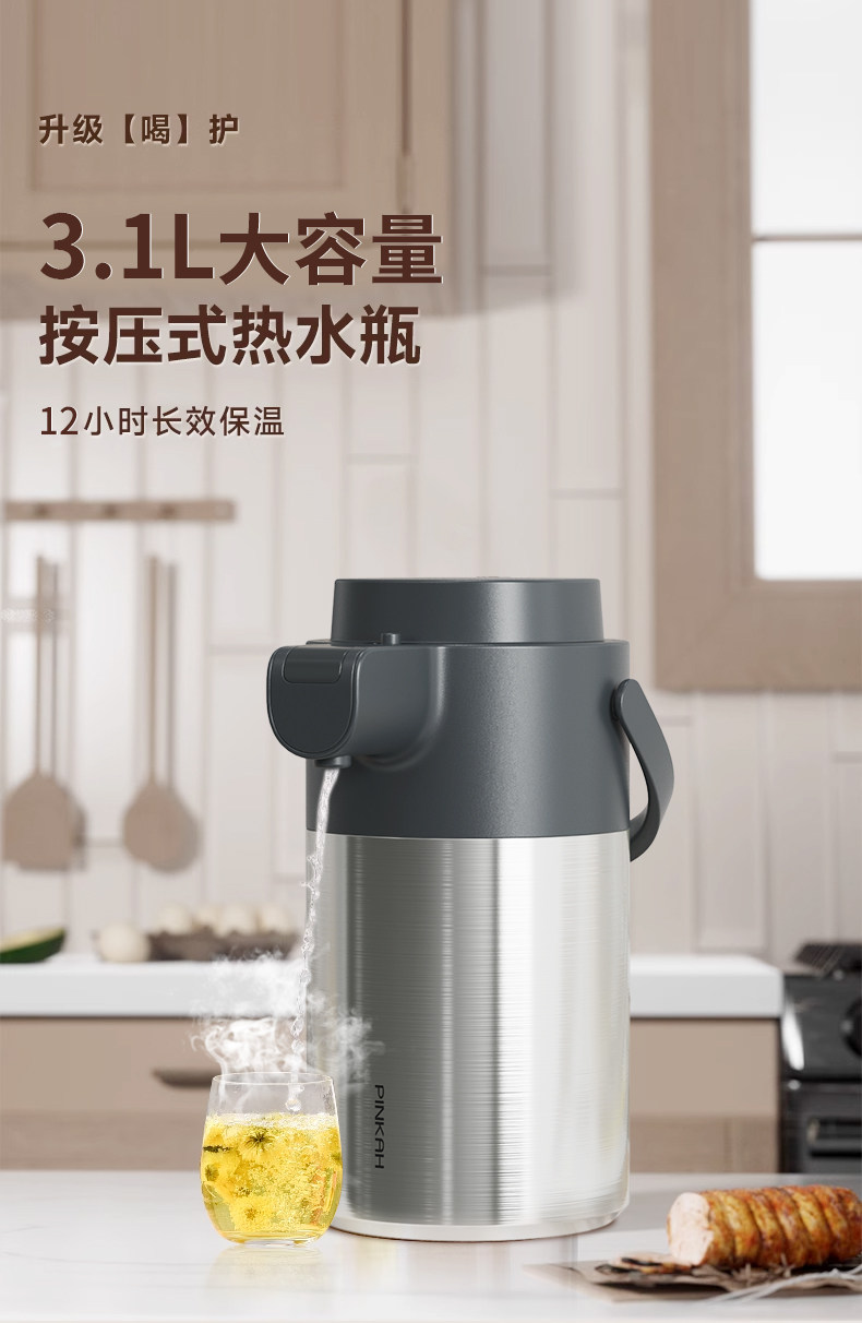 Press-Type Insulated Kettle for Home Use, Stainless Steel, Long-Lasting Heat Retention for 12 Hours, Standing Model