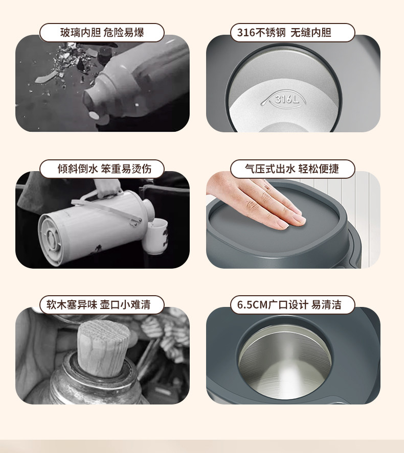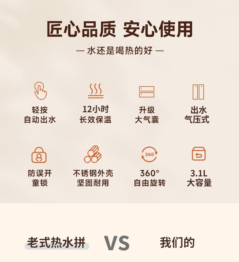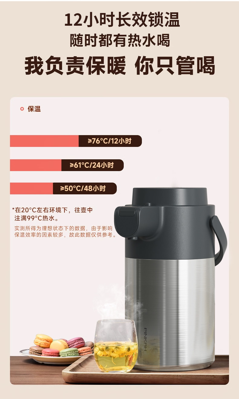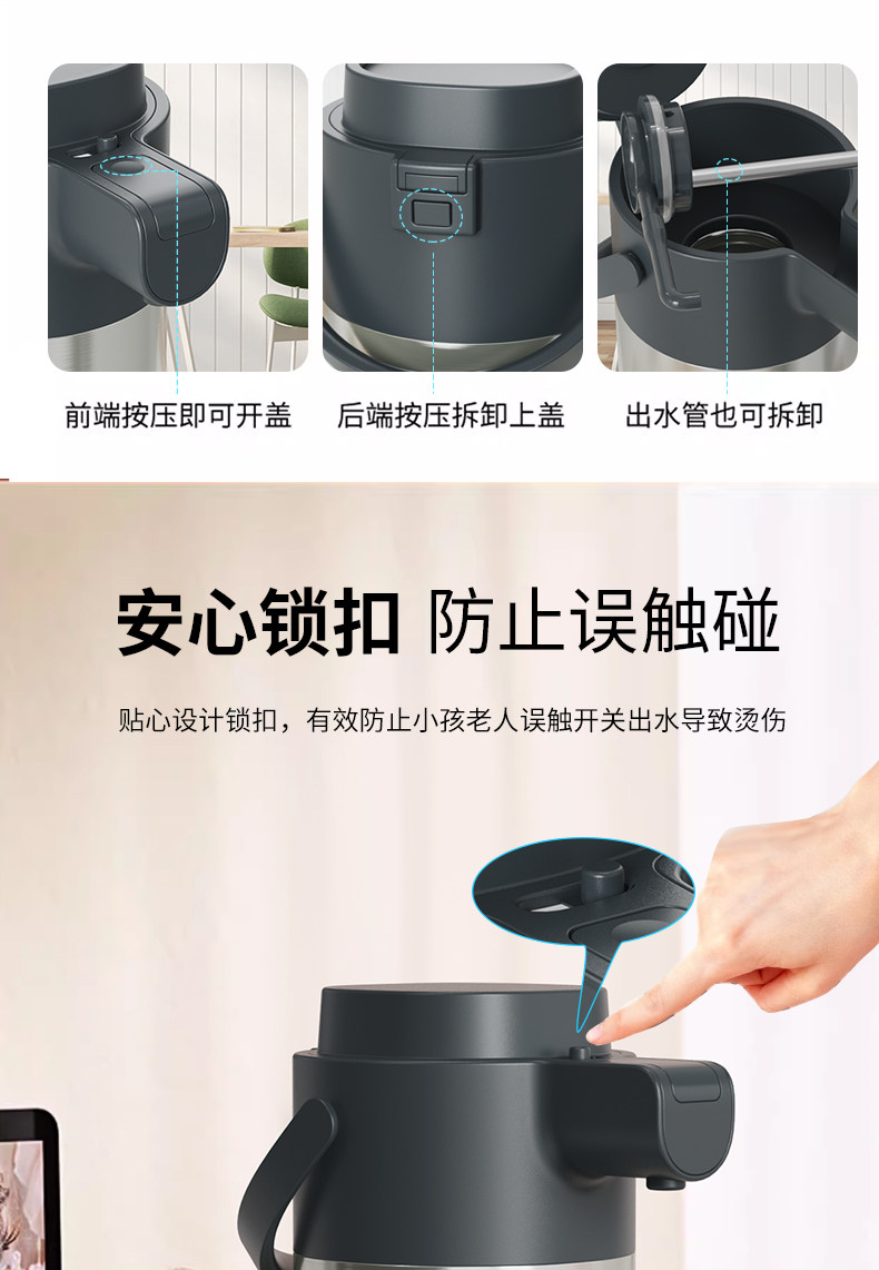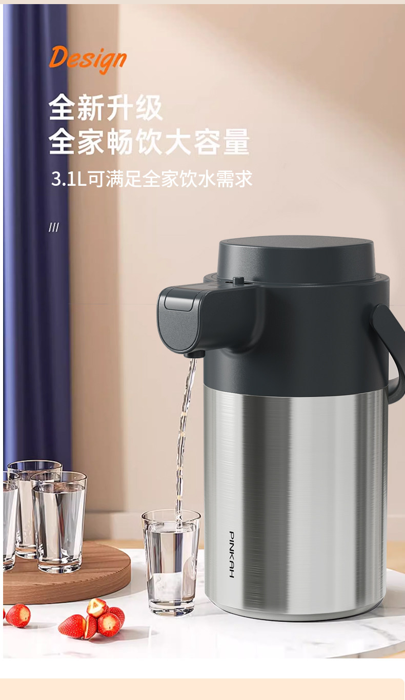Press-Type Insulated Kettle for Home Use, Stainless Steel, Long-Lasting Heat Retention for 12 Hours, Standing Model