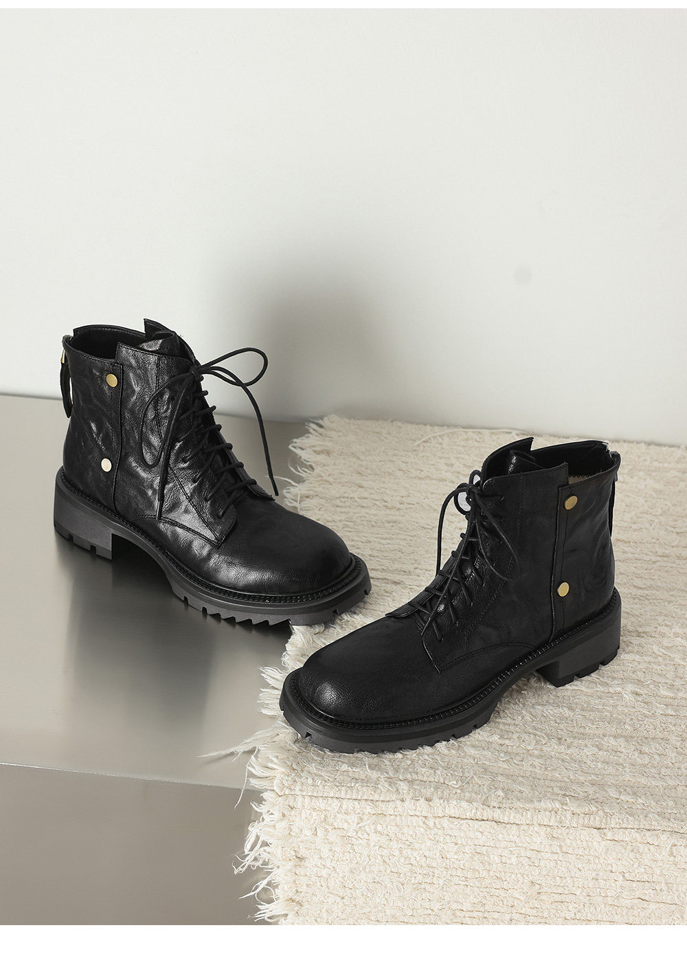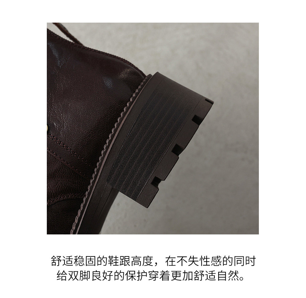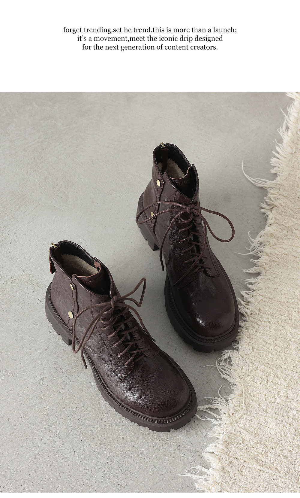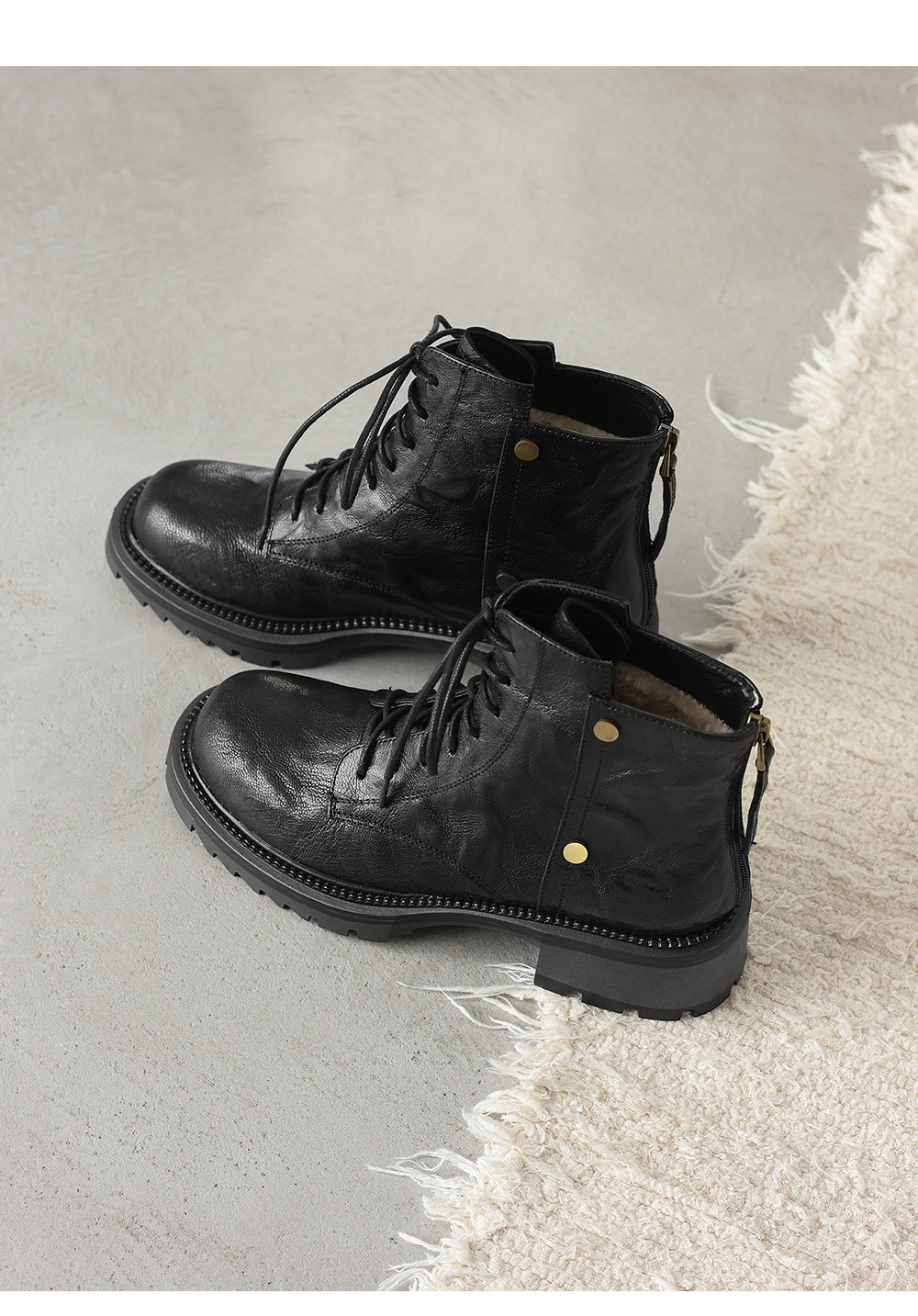 Senshi Hejiang sheepskin thick heel lace-up Martin boots women's thick velvet short boots winter mid-heeled wool snow boots large size
