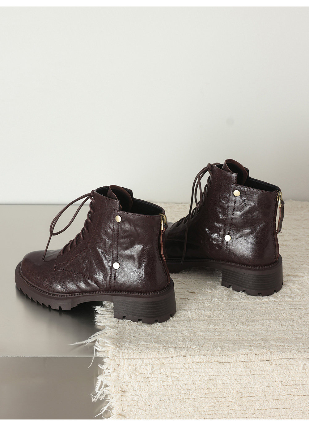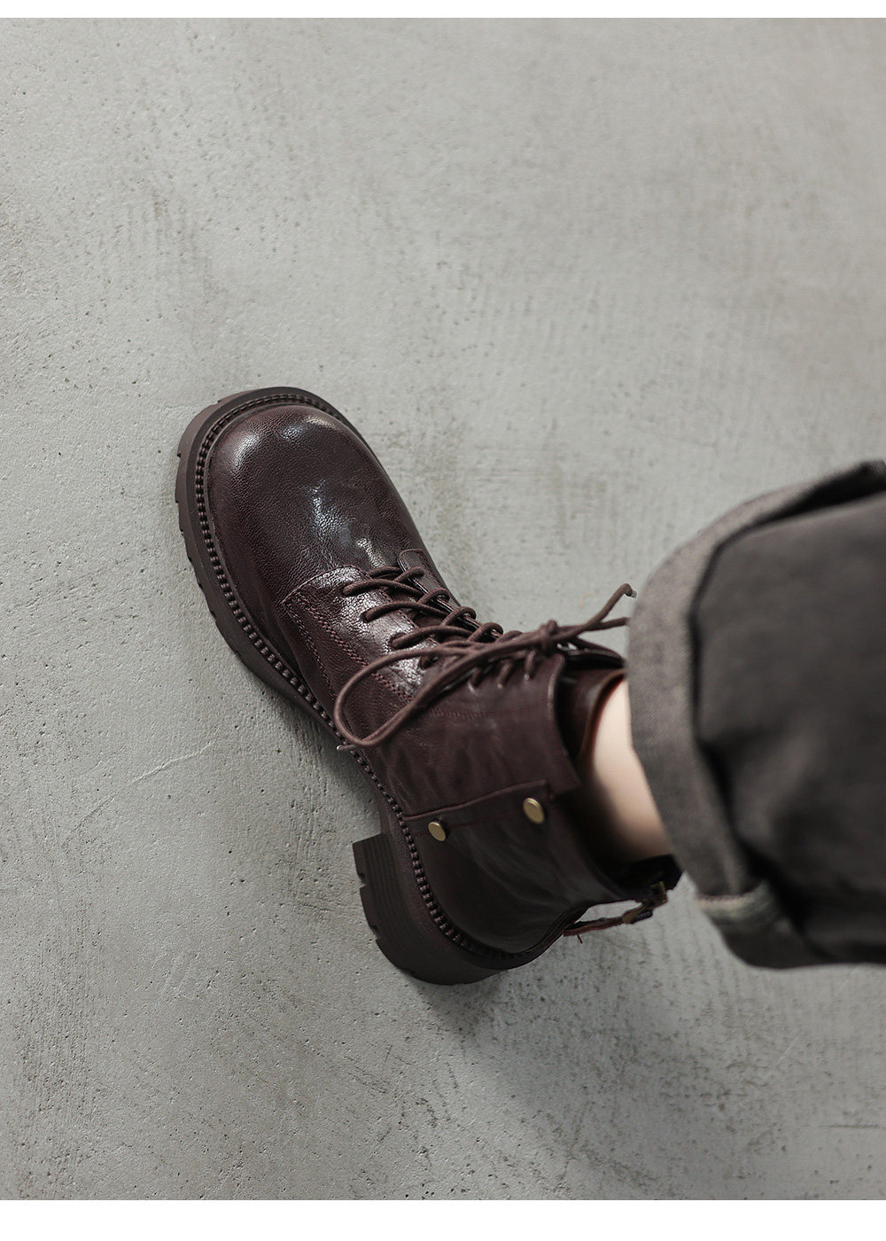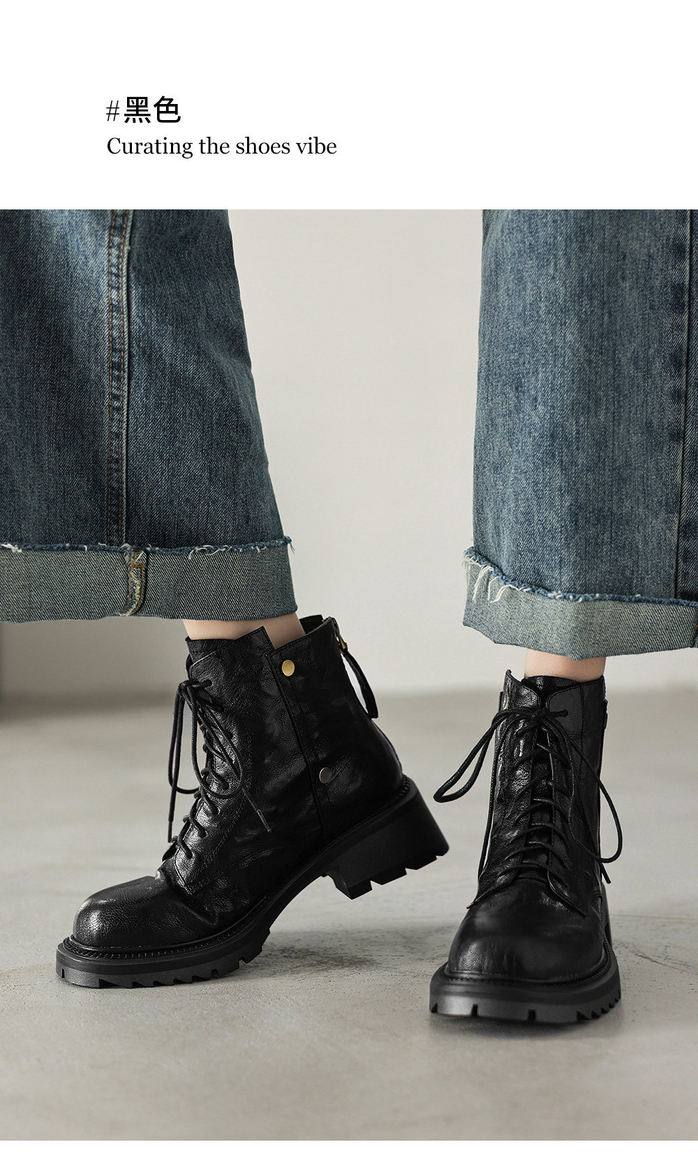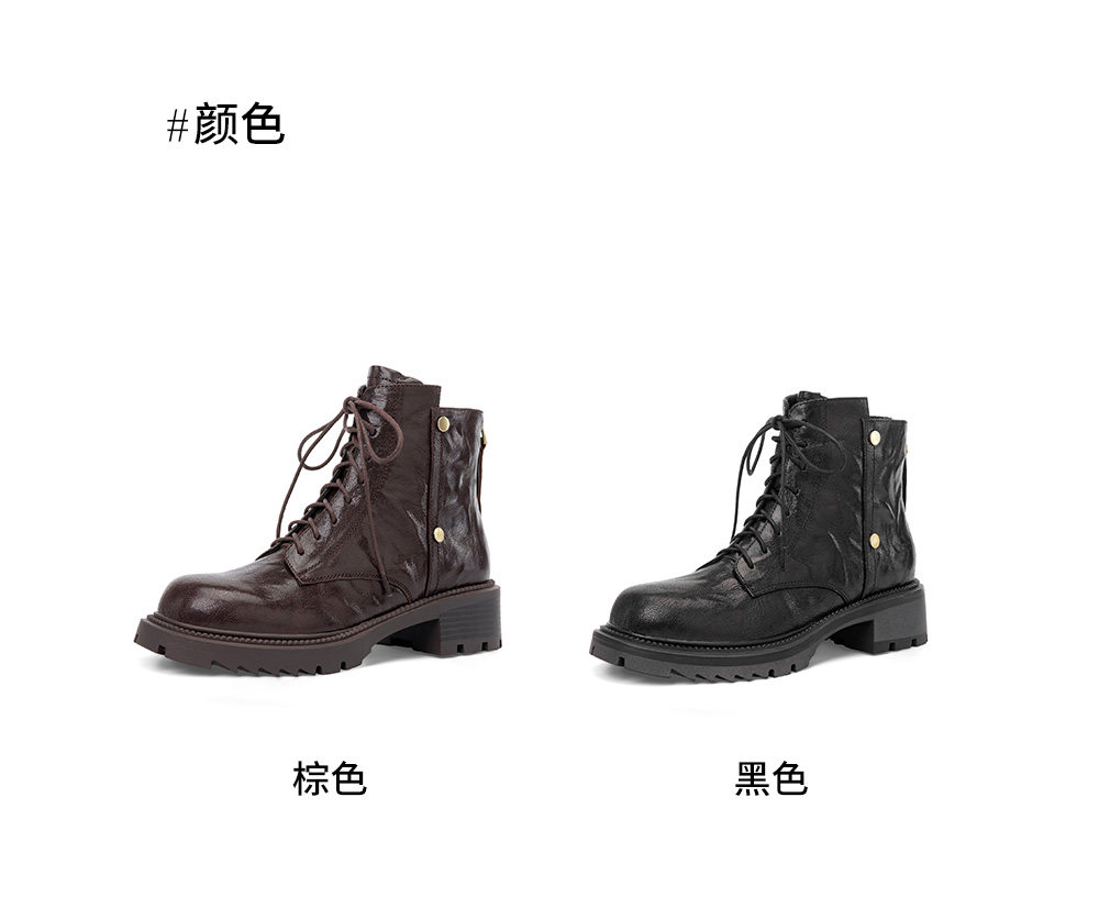 Senshi Hejiang sheepskin thick heel lace-up Martin boots women's thick velvet short boots winter mid-heeled wool snow boots large size