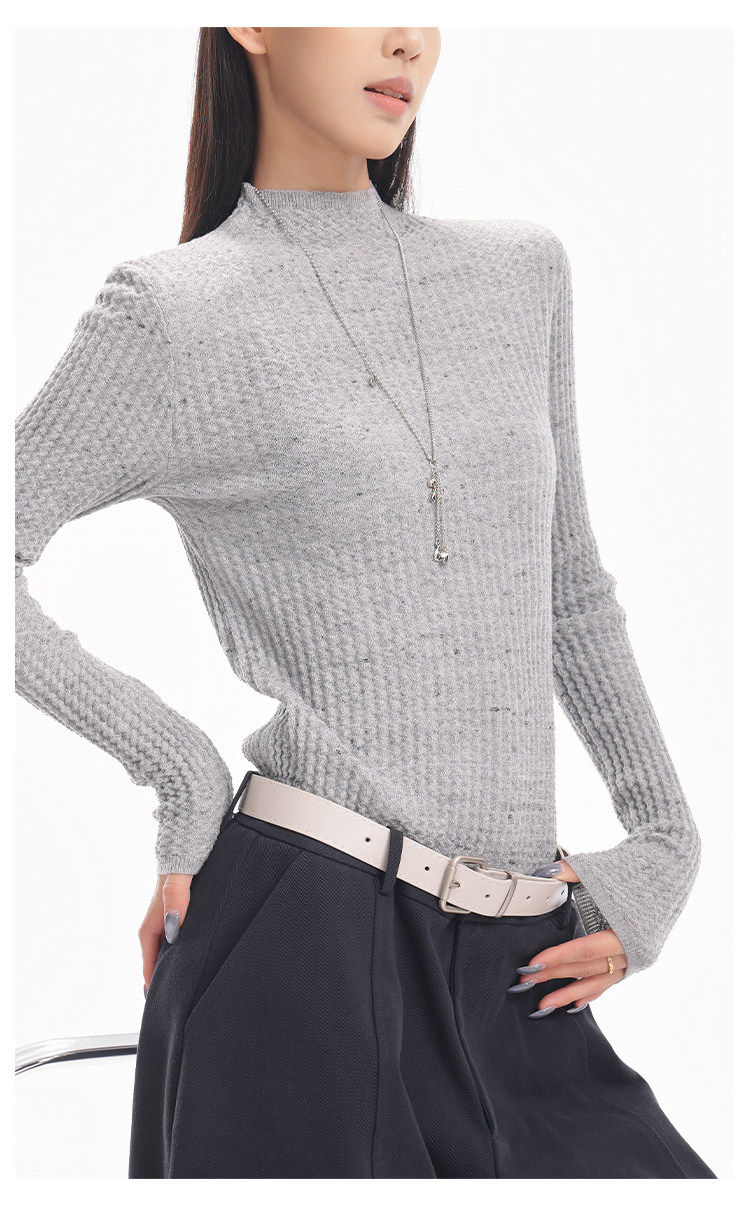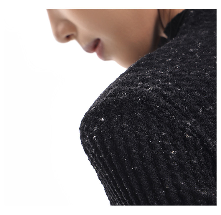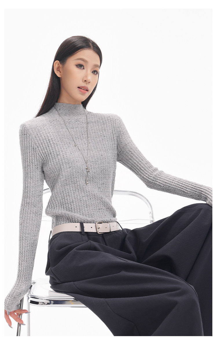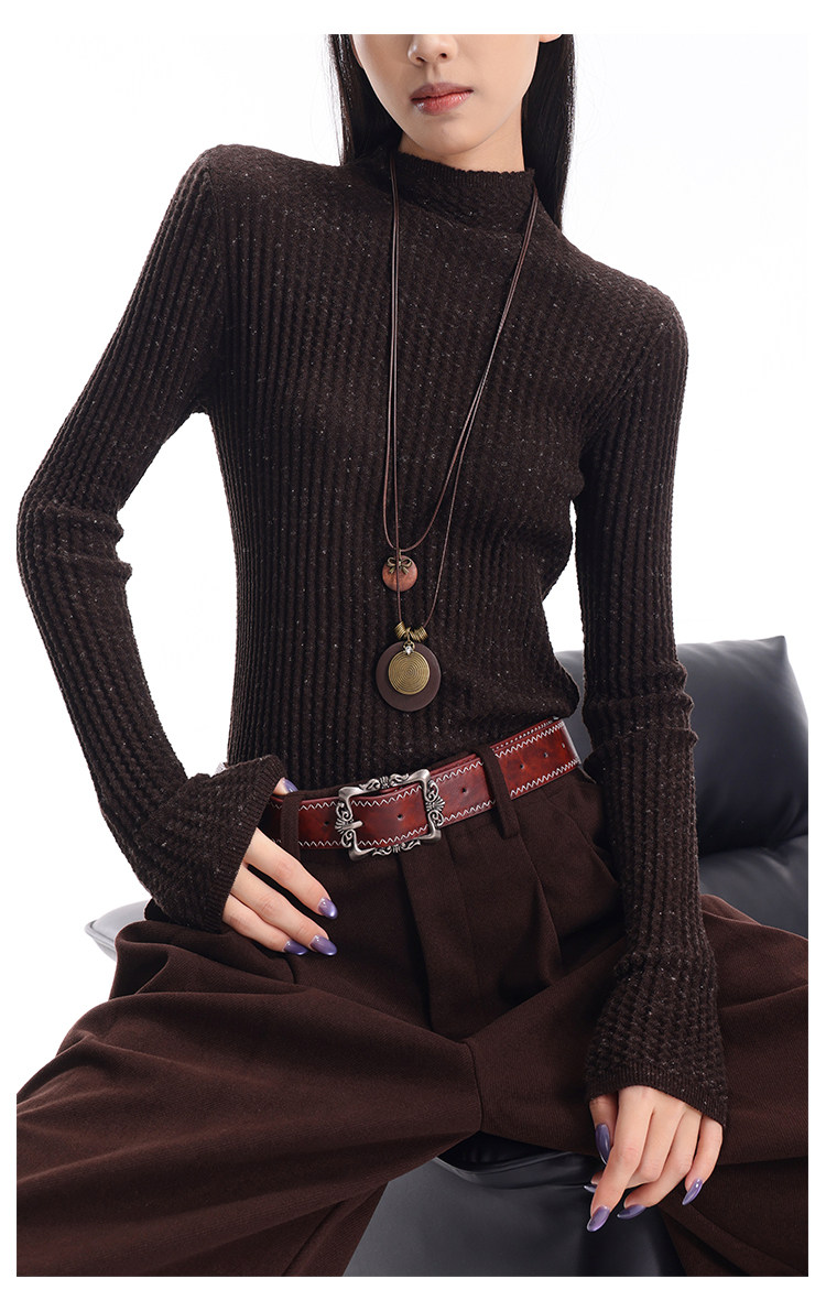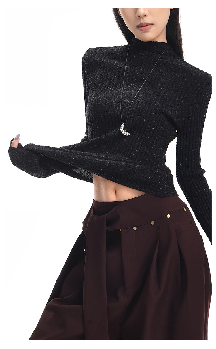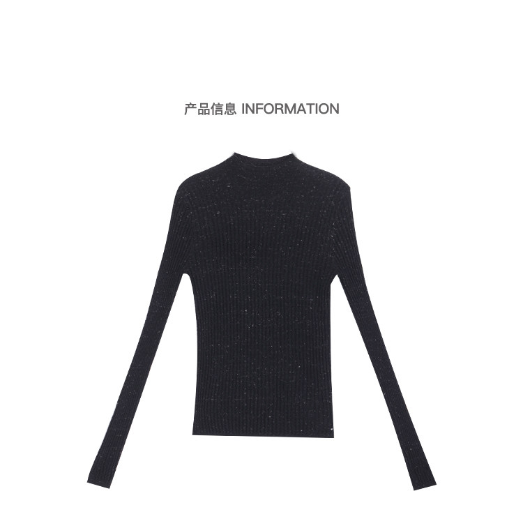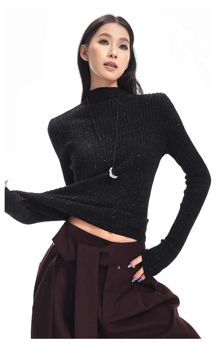 Ken Studio New Autumn and Winter Black Long-Sleeved Sweater for Women with Textured Half-High Collar and Slim Fit Inner Knitted Top