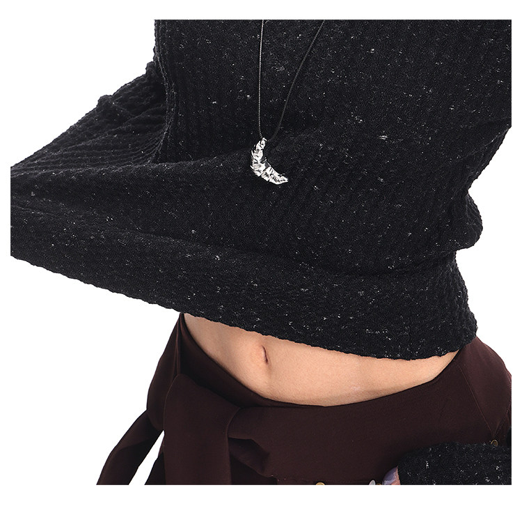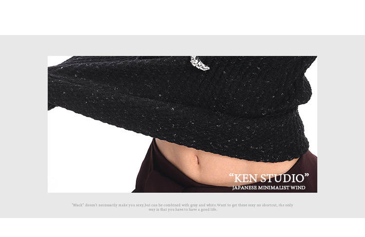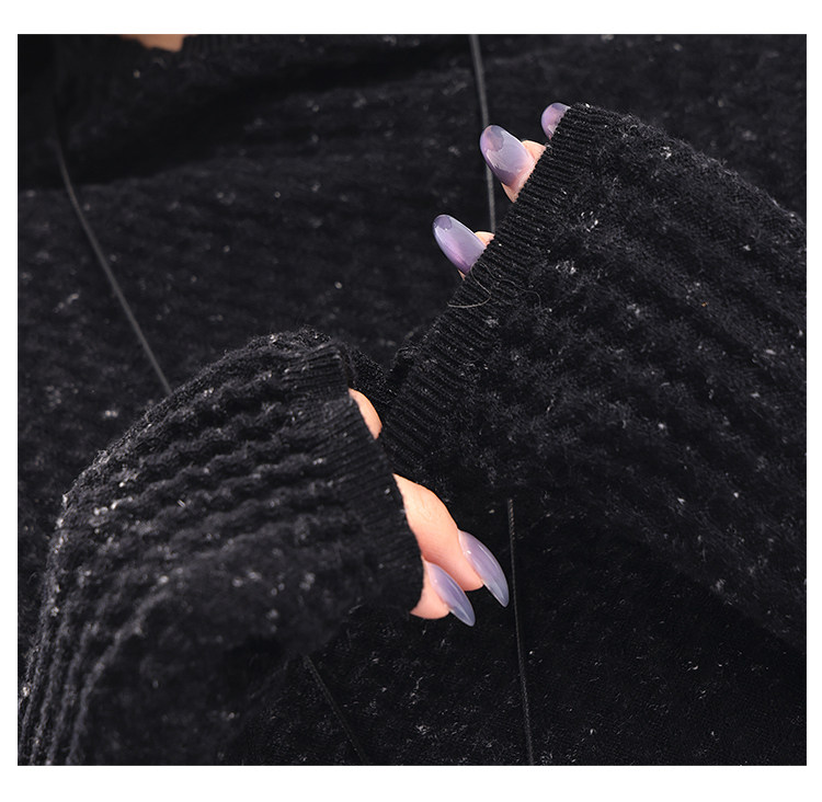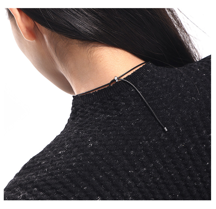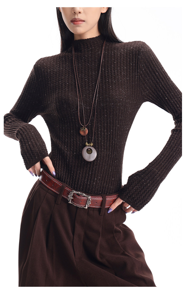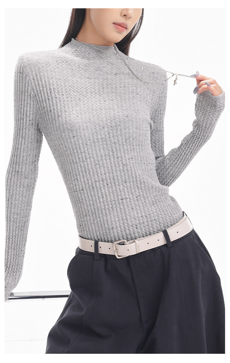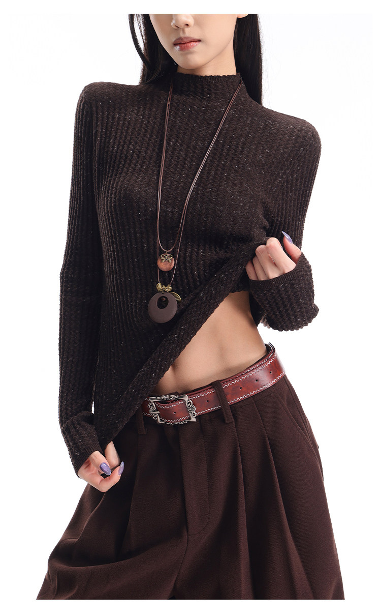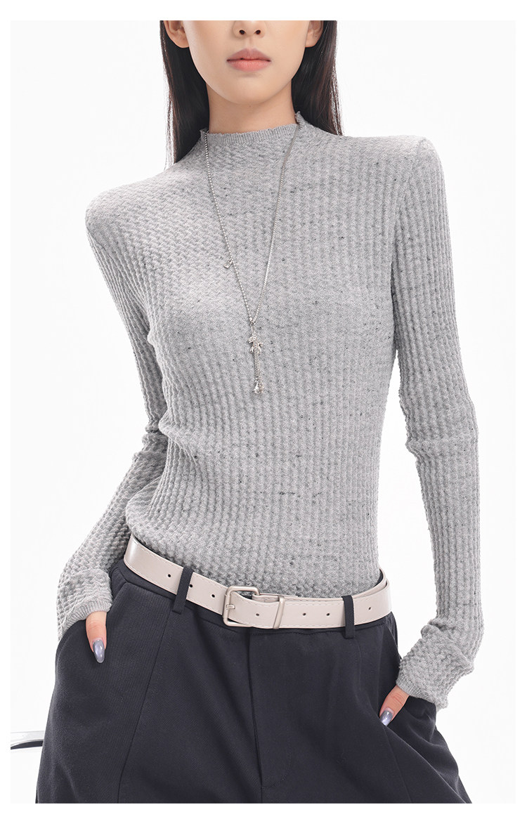Ken Studio New Autumn and Winter Black Long-Sleeved Sweater for Women with Textured Half-High Collar and Slim Fit Inner Knitted Top