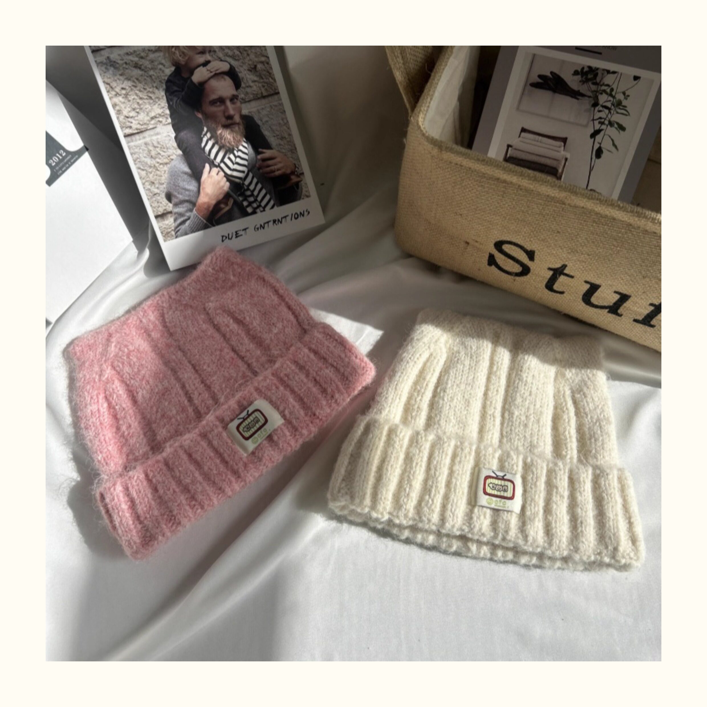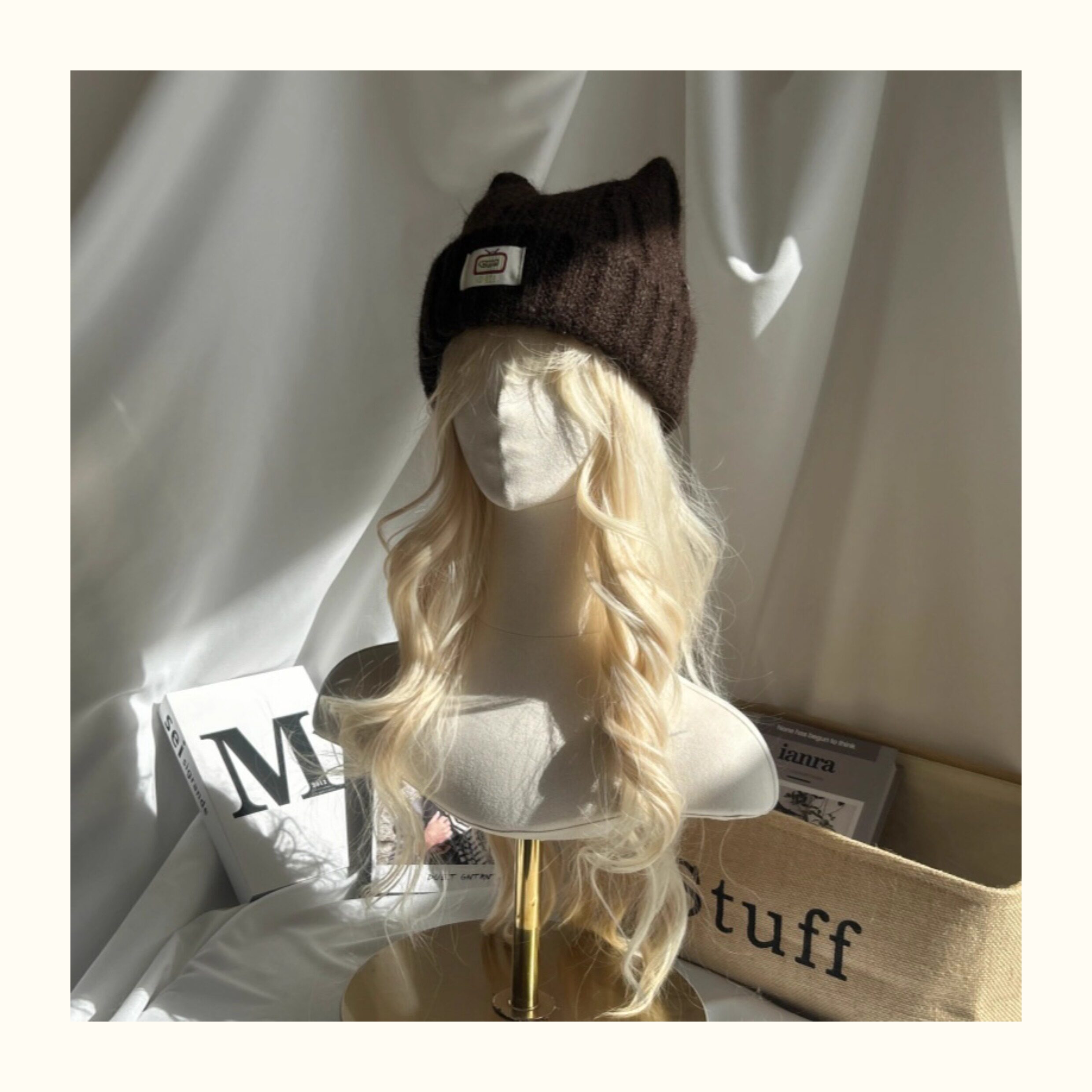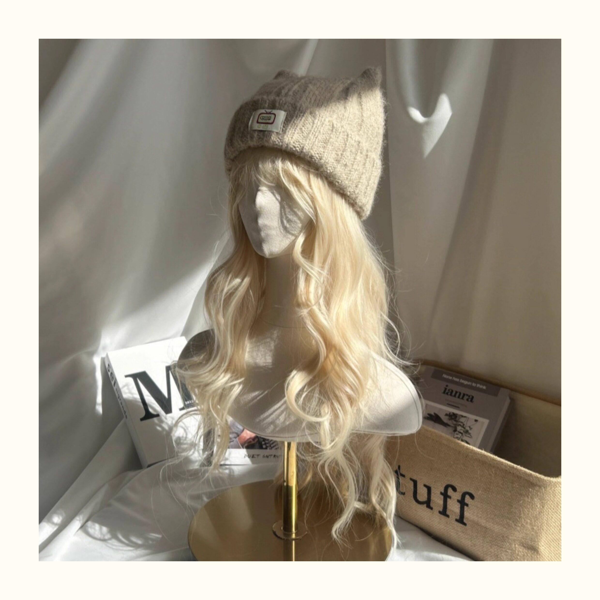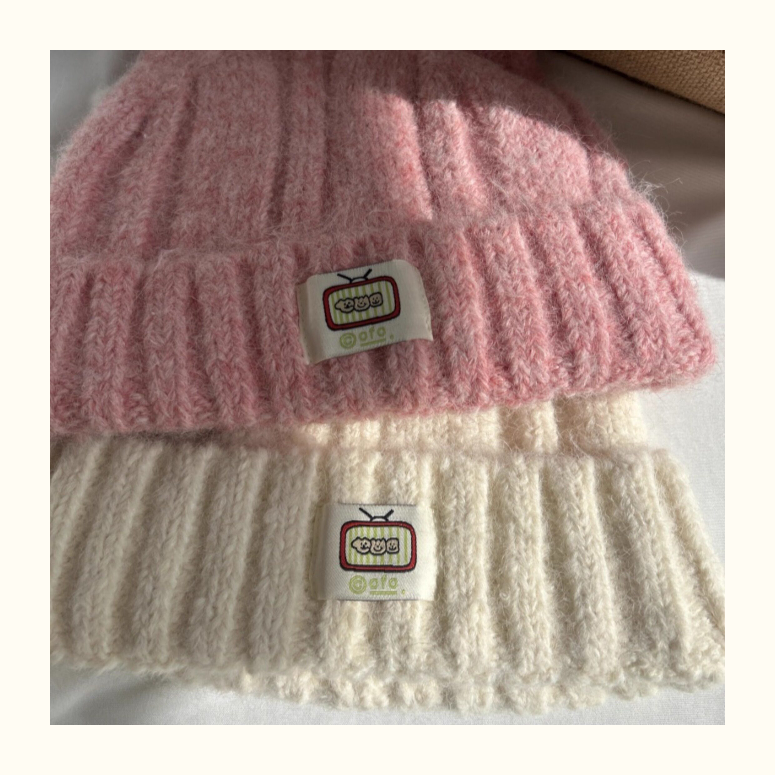 Japanese-Style Simple and Cute Cat Ear Fabric Label Ofo Cartoon Small Tv/Wool Hat Colorful Knitted Hat for Men and Women