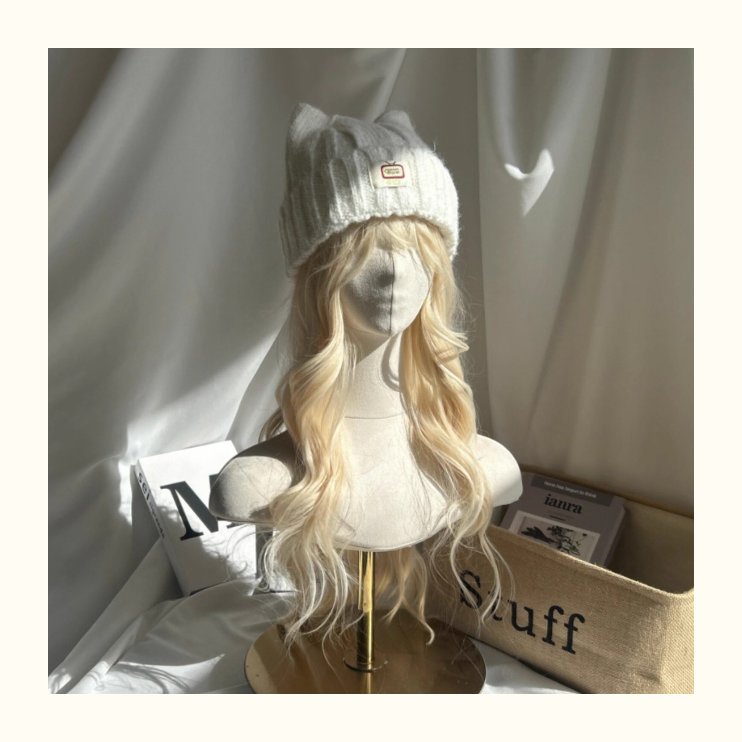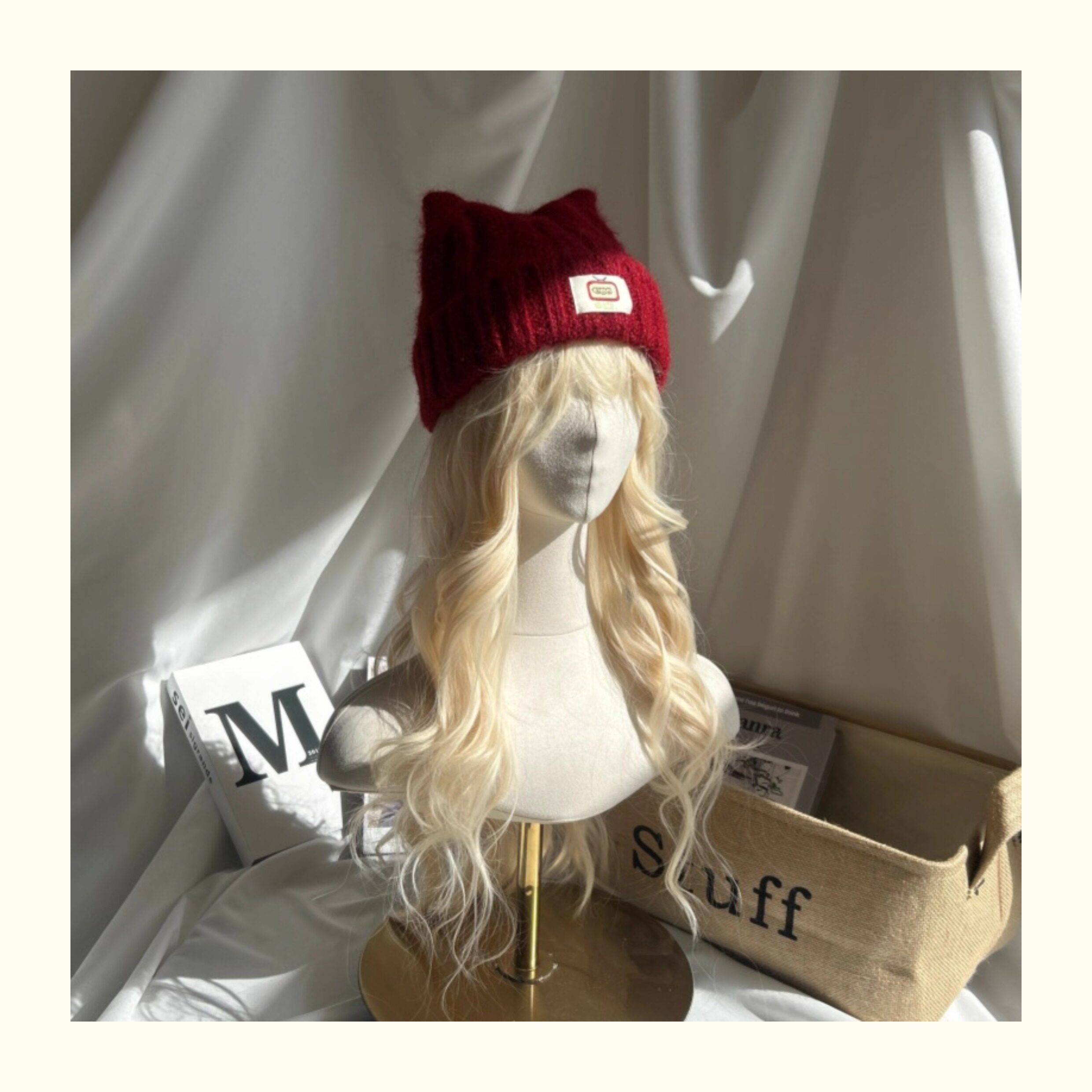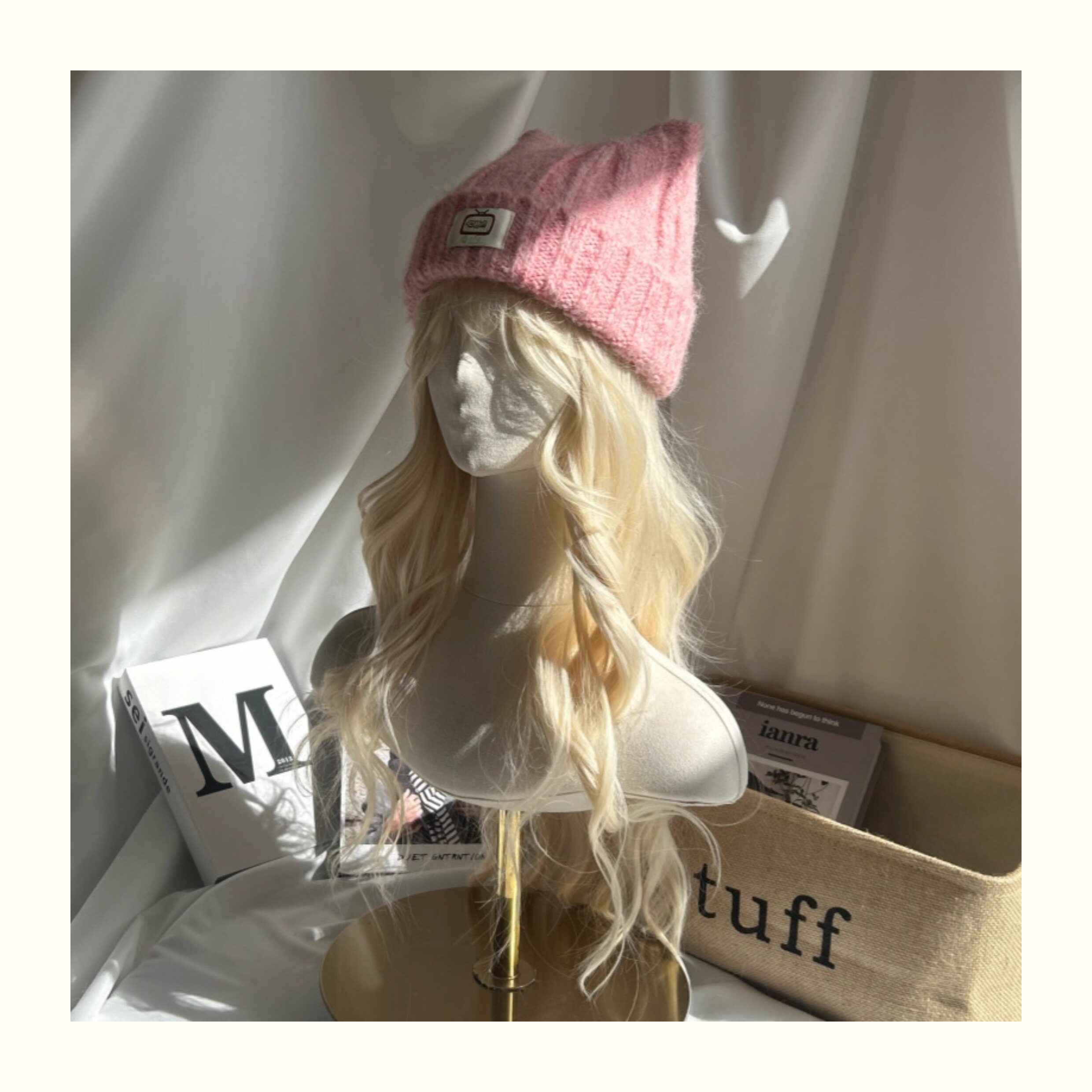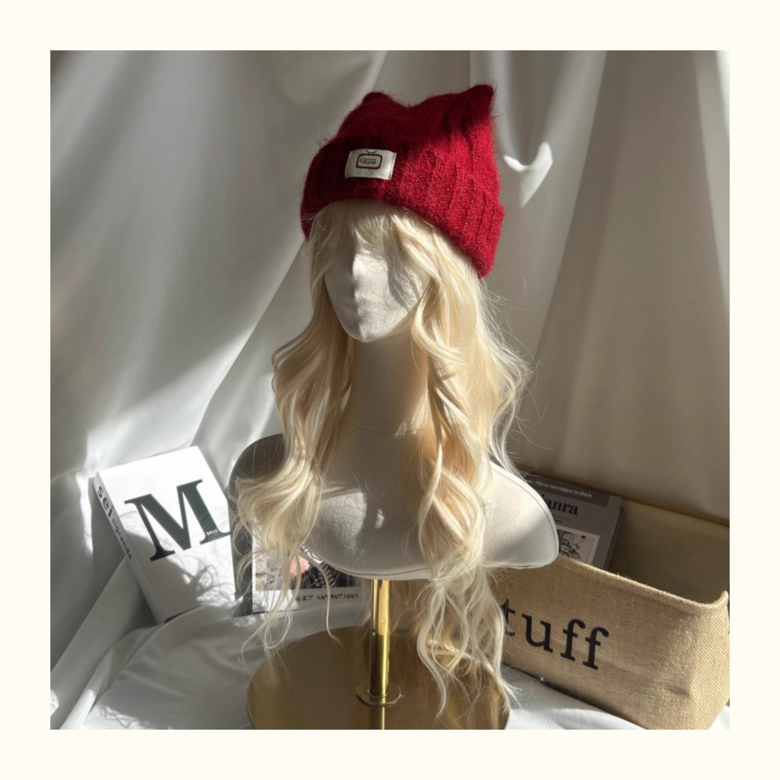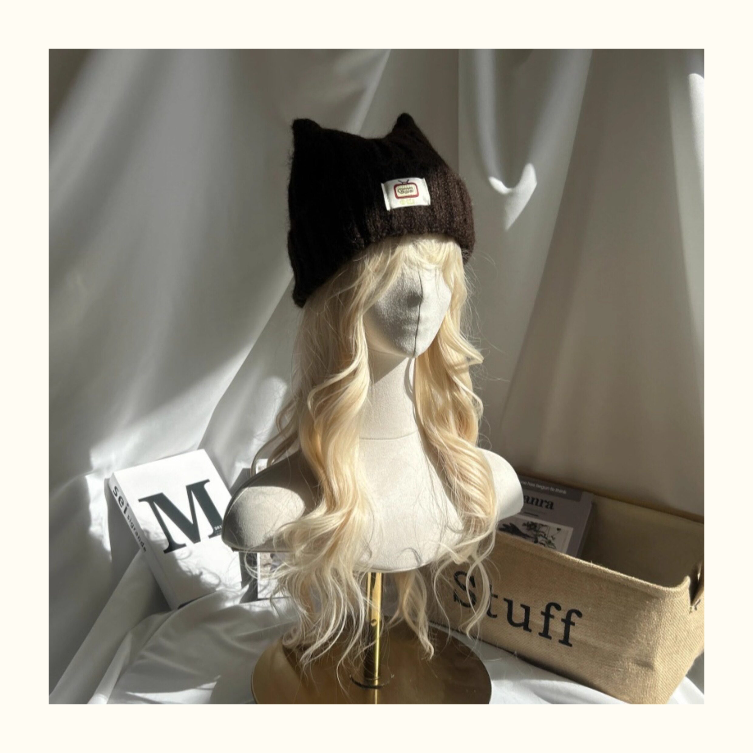 Japanese-Style Simple and Cute Cat Ear Fabric Label Ofo Cartoon Small Tv/Wool Hat Colorful Knitted Hat for Men and Women
