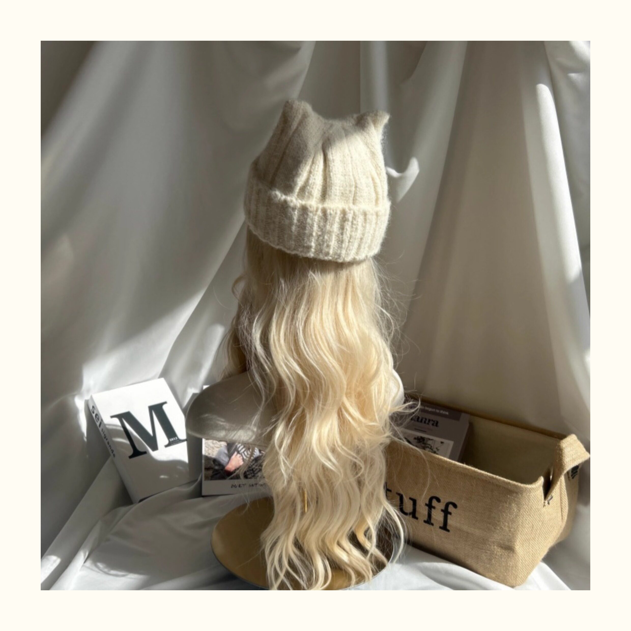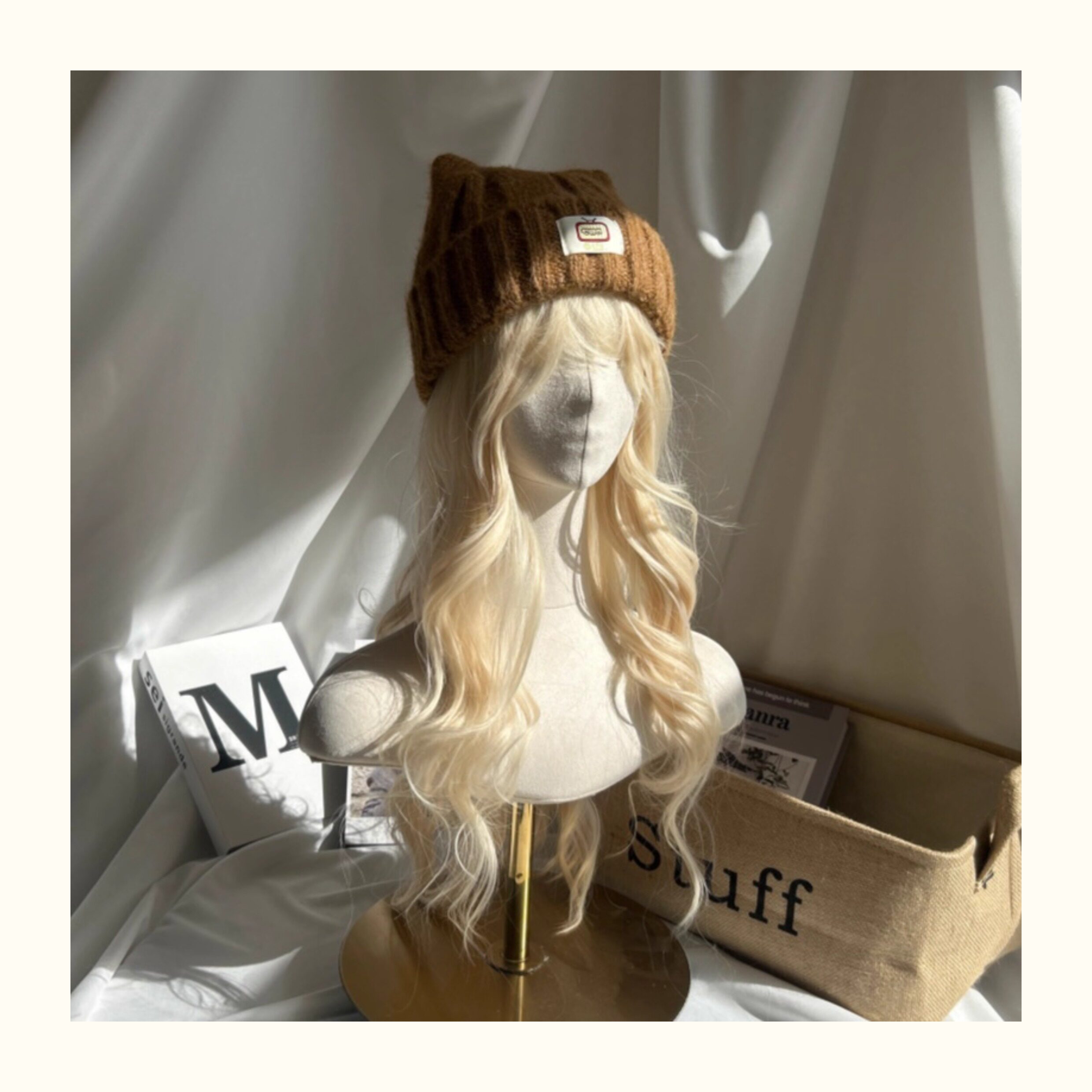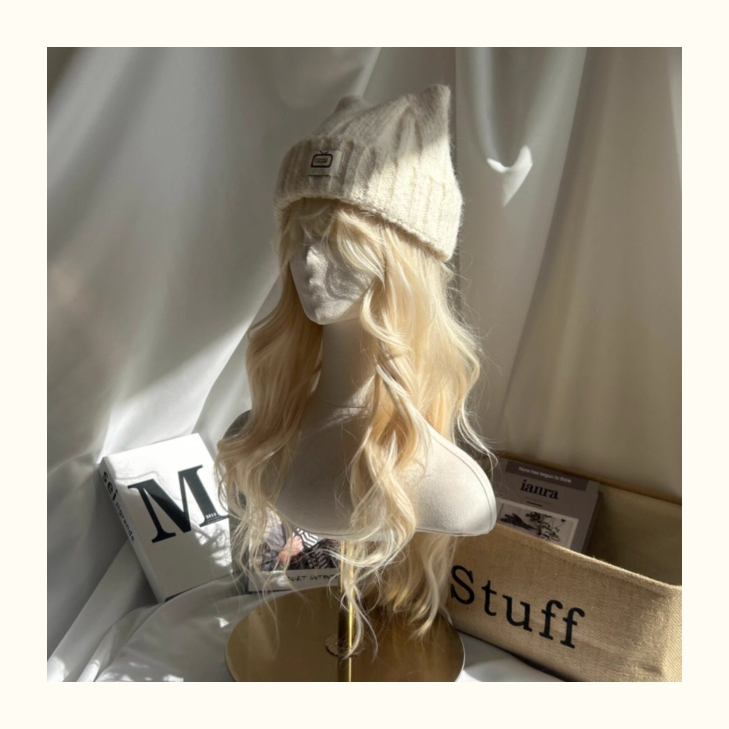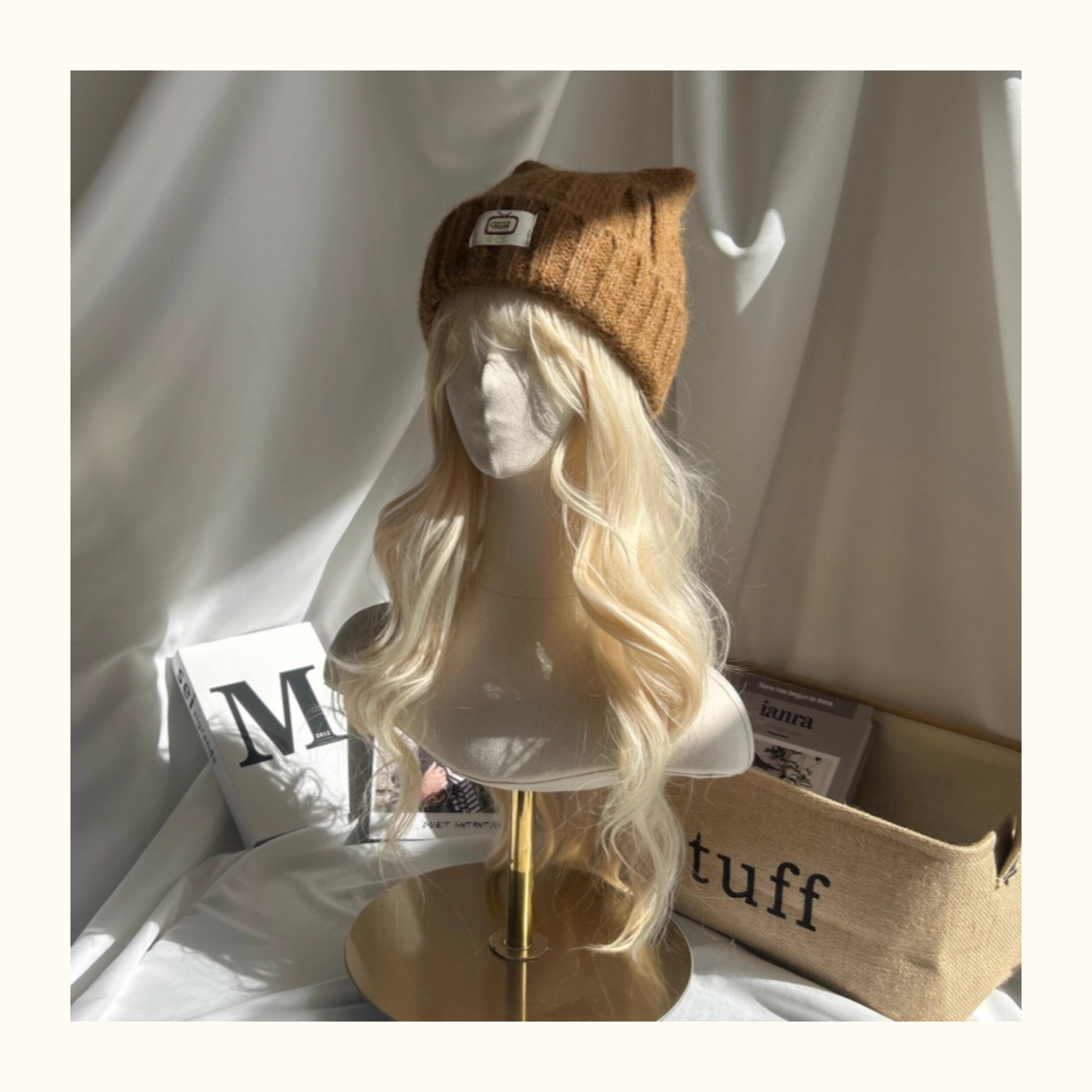 Japanese-Style Simple and Cute Cat Ear Fabric Label Ofo Cartoon Small Tv/Wool Hat Colorful Knitted Hat for Men and Women