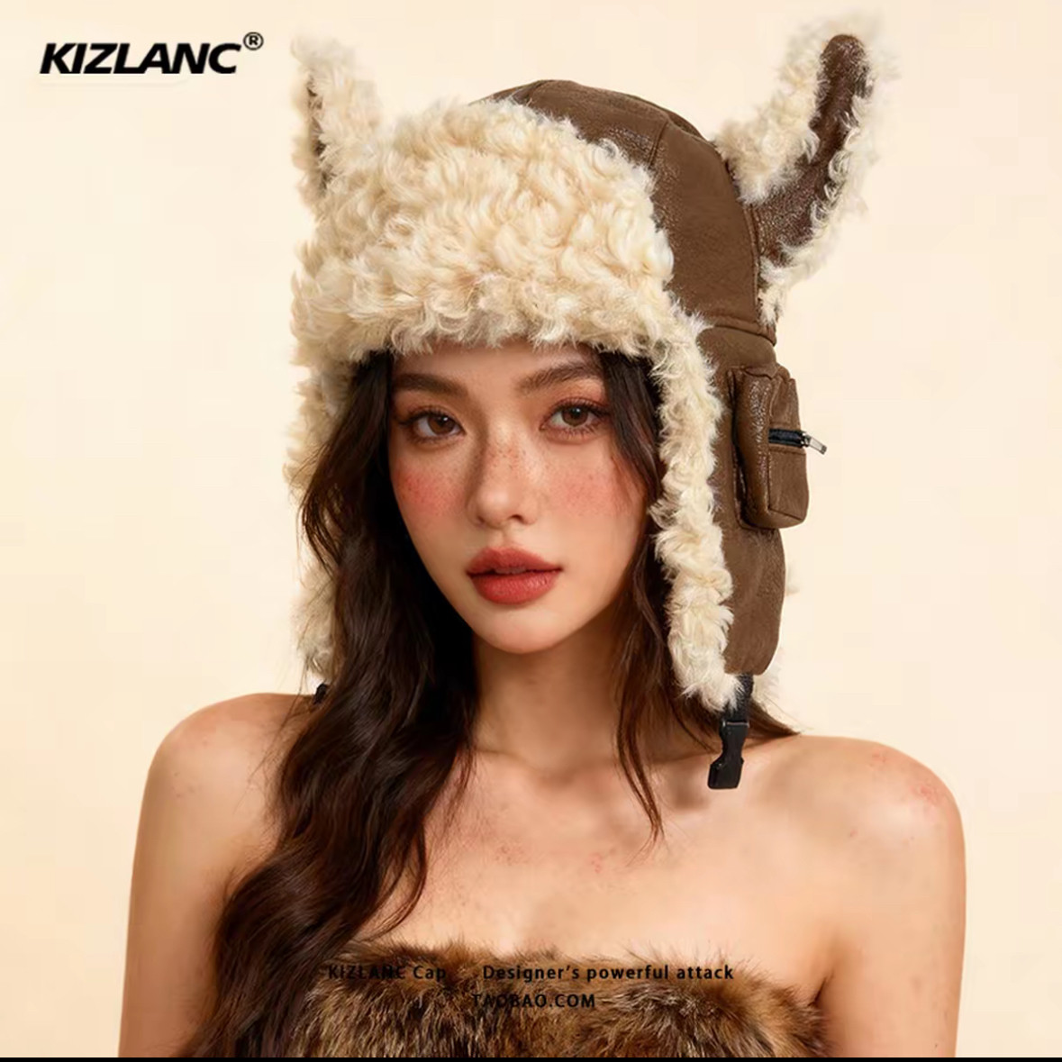Winter forest style lei feng hat knitted hat for women autumn and winter hat internet celebrity winter thickened sweet warm hat for cold cycling