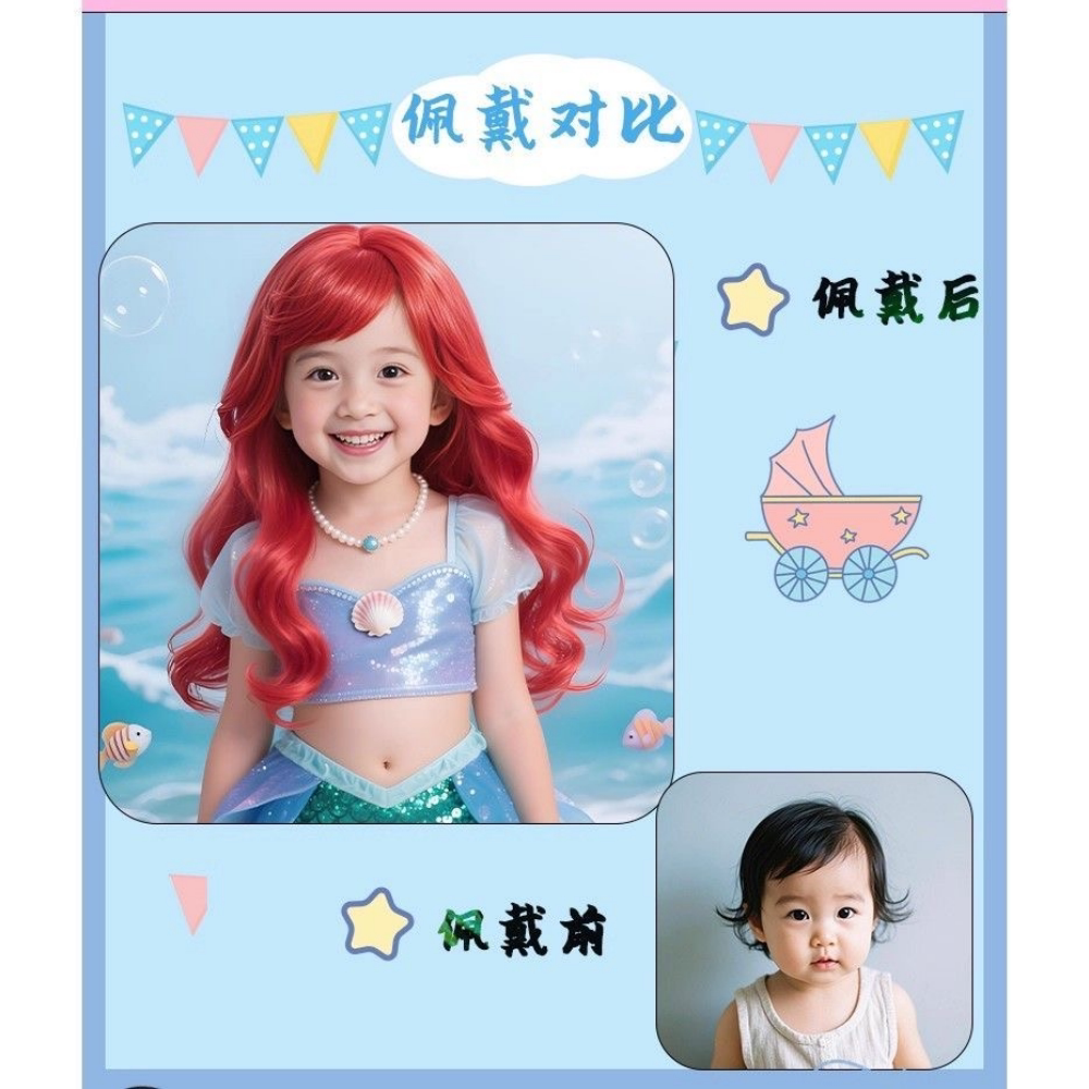 Mermaid Alice Princess Cosplay Children's Wig Red Long Wavy Hair for Daily Performance and Photo Shoot Full Head Wig