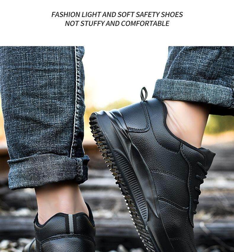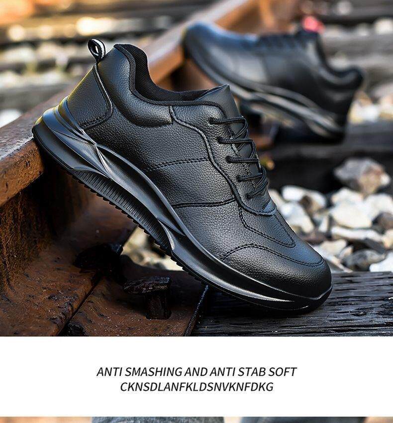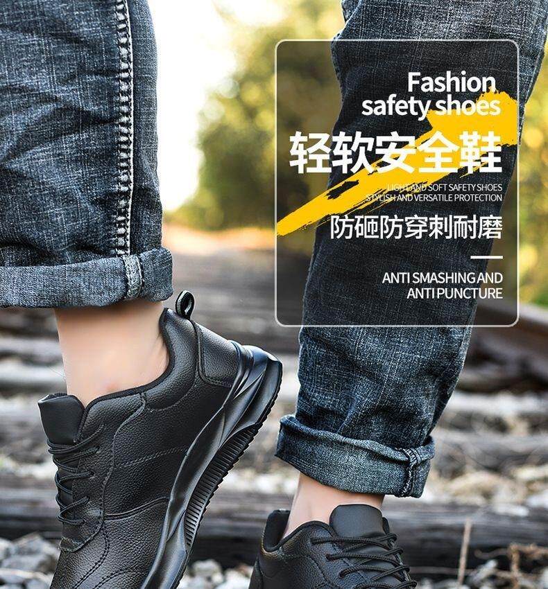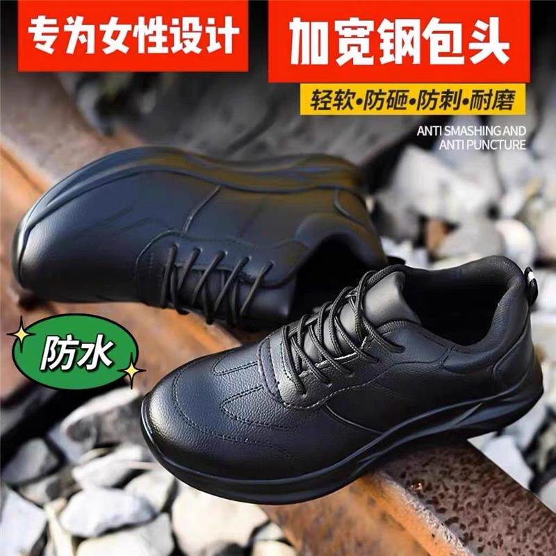 Ultra-light women's steel plate shoes, labor protection shoes, women's casual soft-soled anti-smash steel toe caps, anti-stab factory work waterproof leather shoes