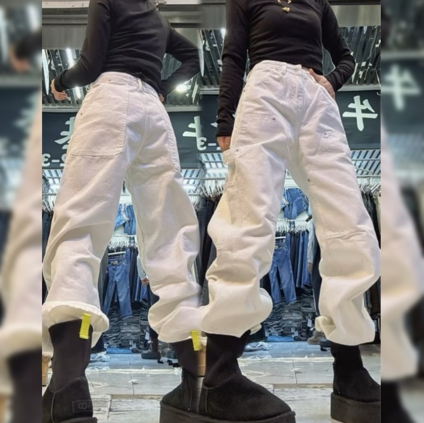 2025 Autumn/Winter New High Street Cool Workwear Style Jeans Plus Size High Waist Loose Slimming Age-Reducing Scimitar Pants
