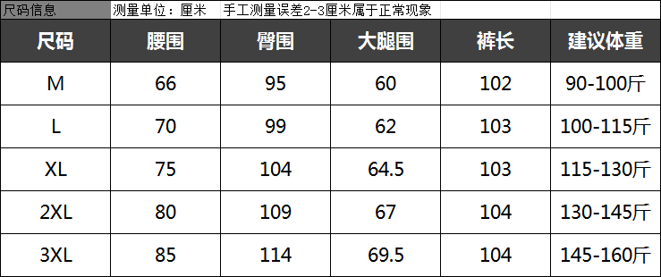 Outseam (cm) 99 cm 101.5 cm 104 cm 106.5 cm 109 cm